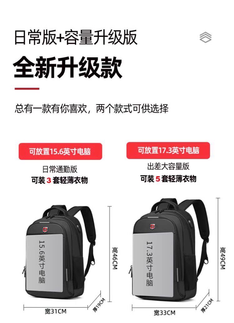 瑞士軍士刀雙肩包男輕便大容量初中生書包女旅行商務出差電腦後後背包
