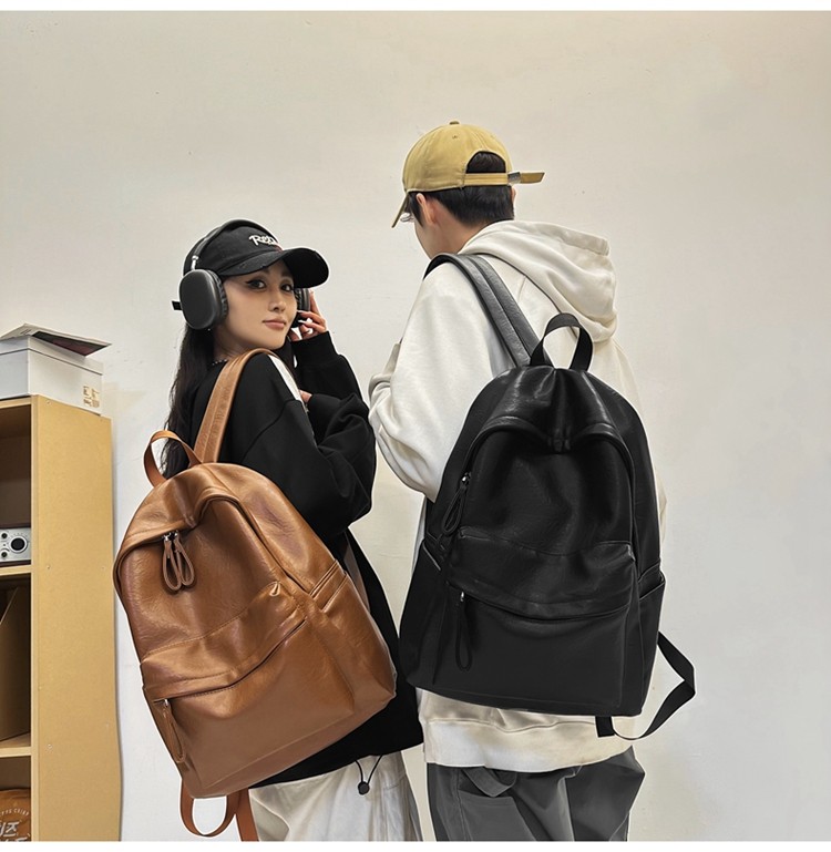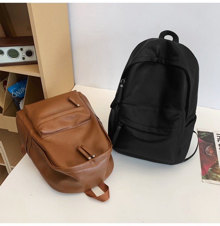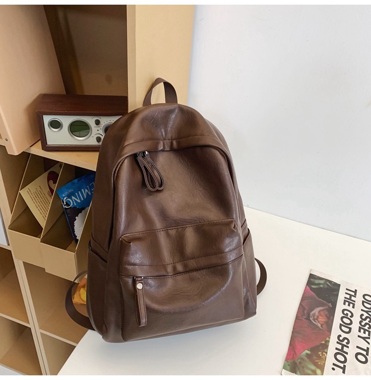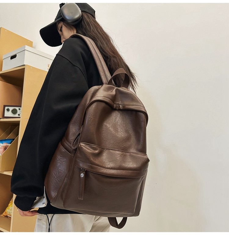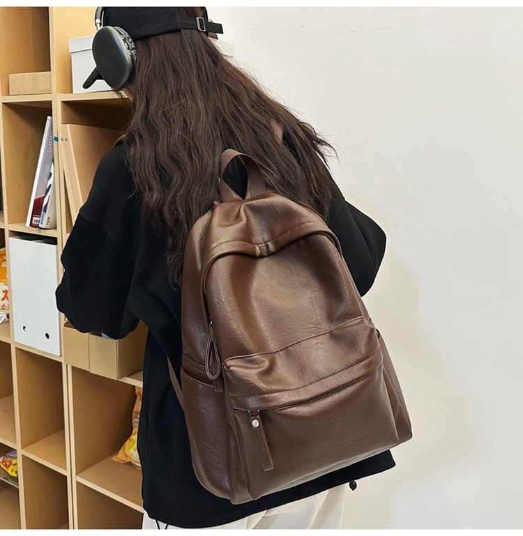 書包女大學生高中初中生簡約大容量電腦後後背包皮質通勤雙肩包高級感