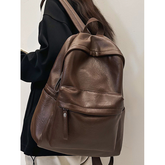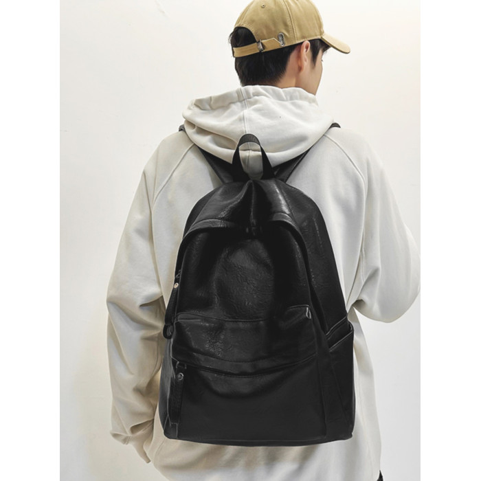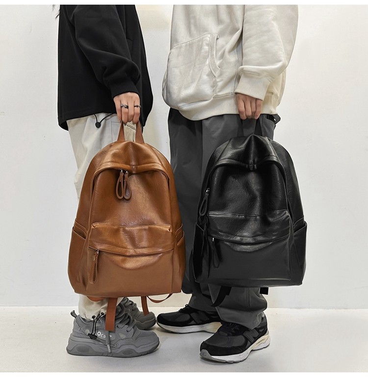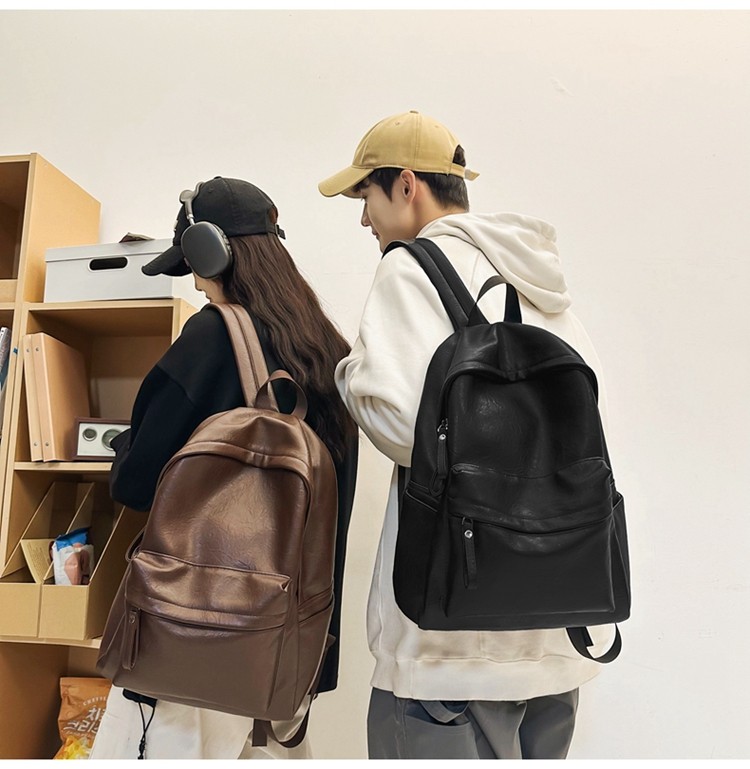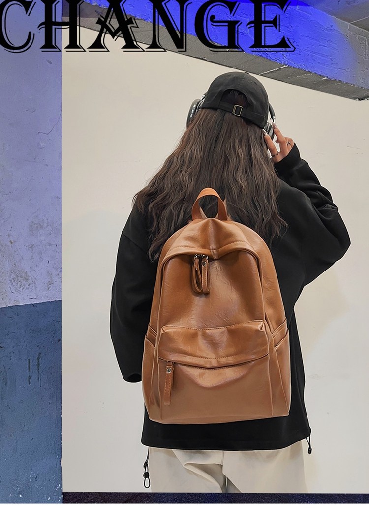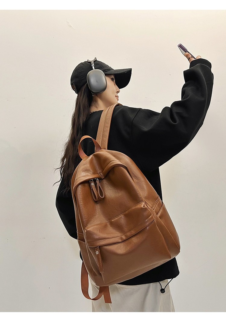 書包女大學生高中初中生簡約大容量電腦後後背包皮質通勤雙肩包高級感