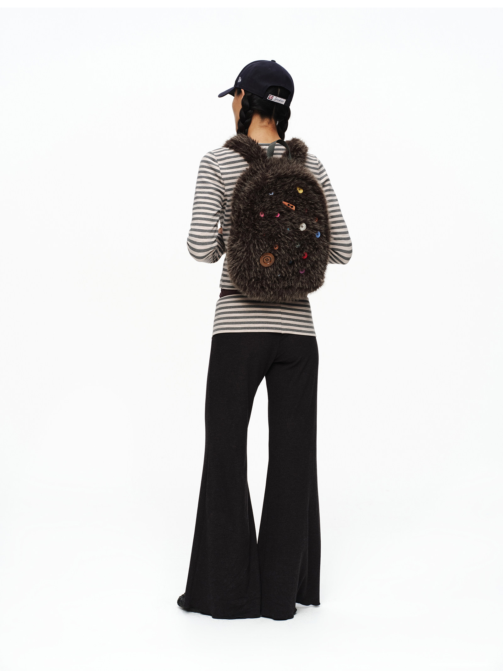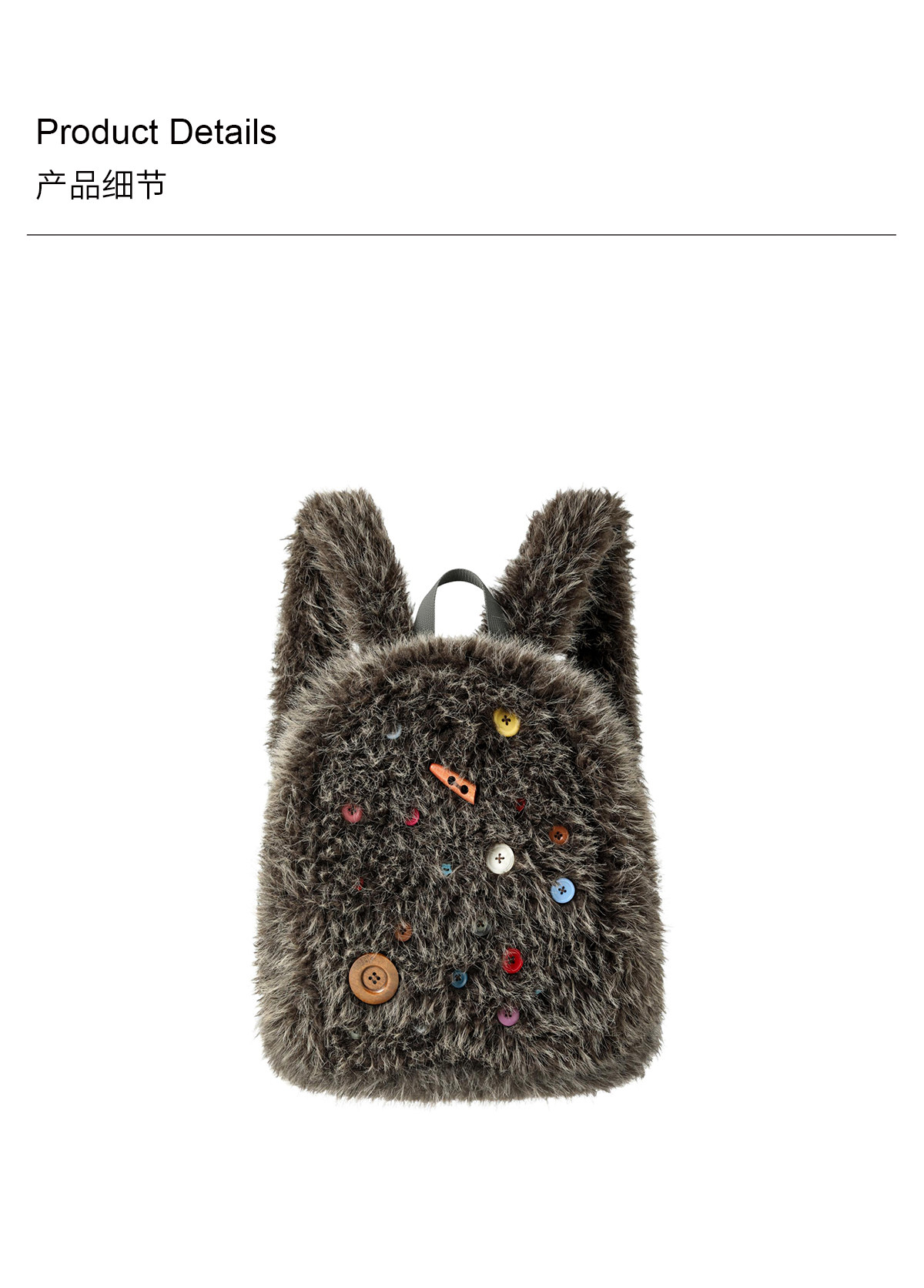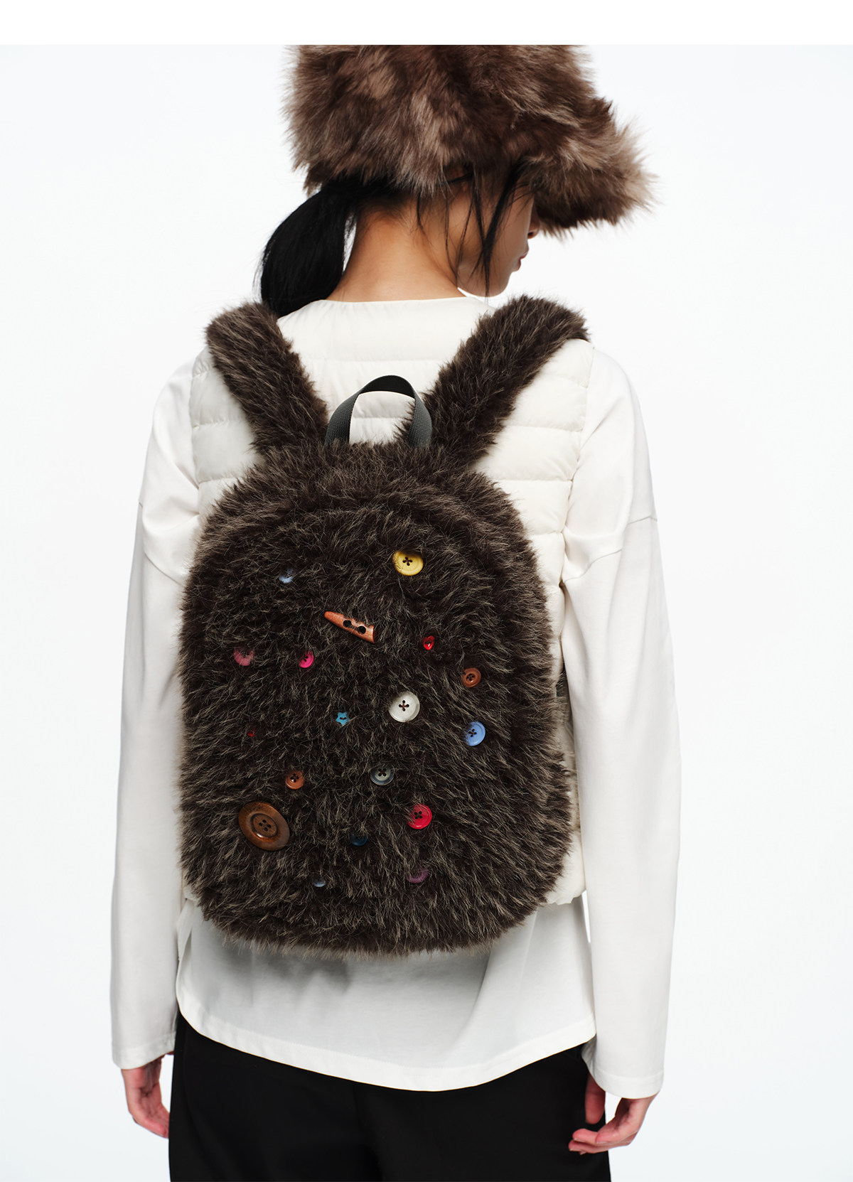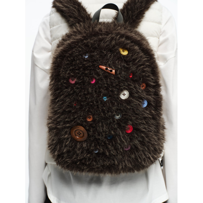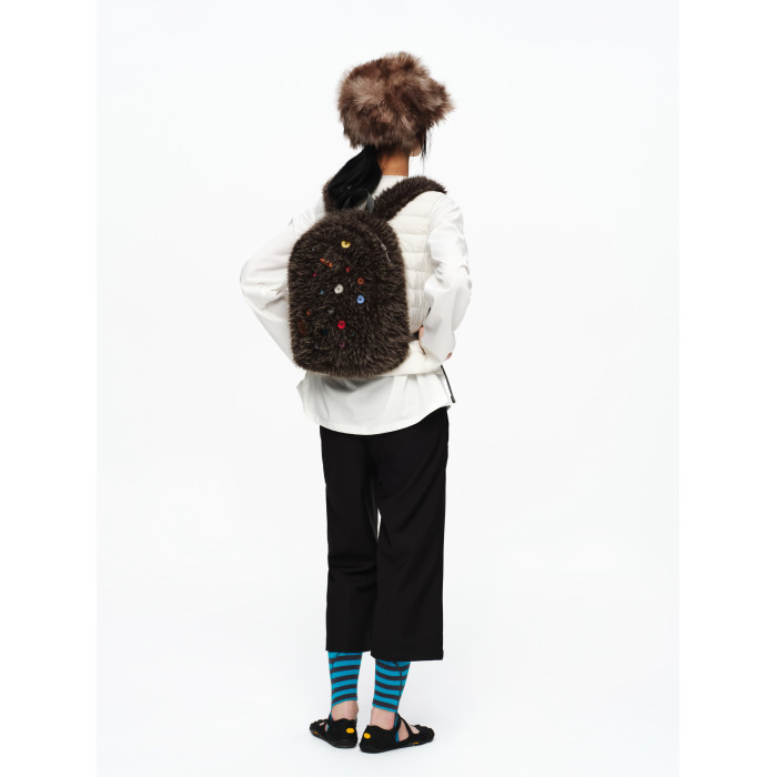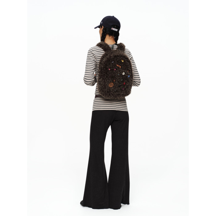 oinimi 趣味彩虹紐釦棕熊毛絨絨雙肩包 萌系造型感
