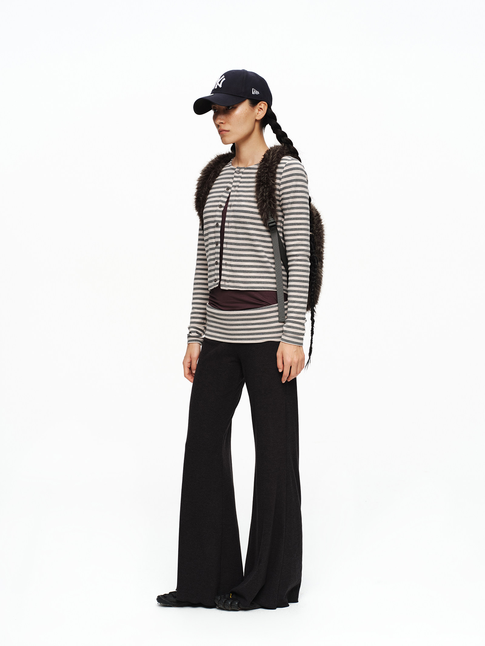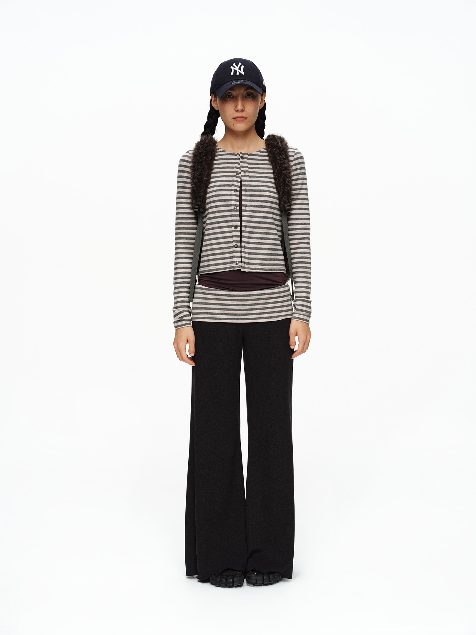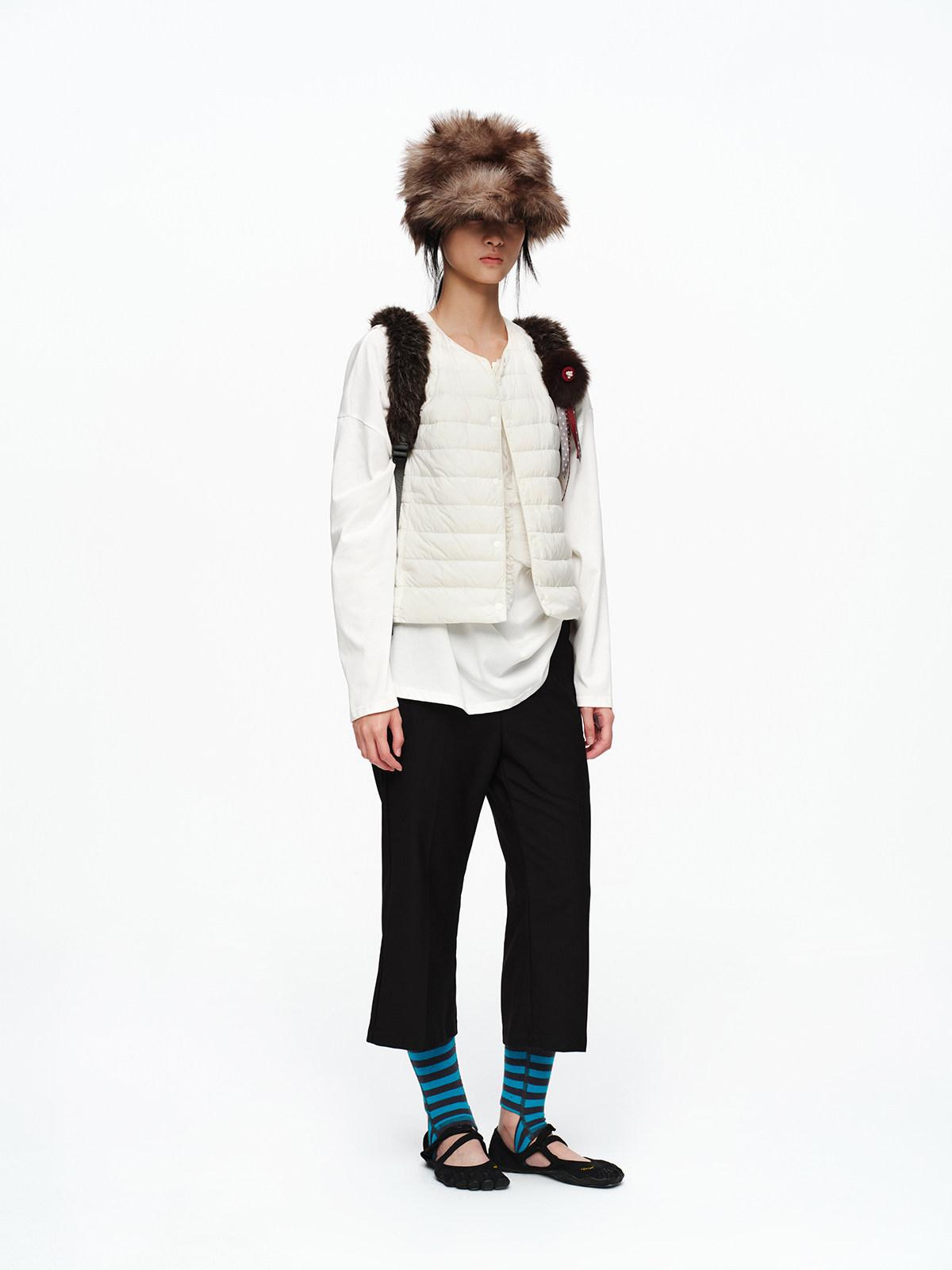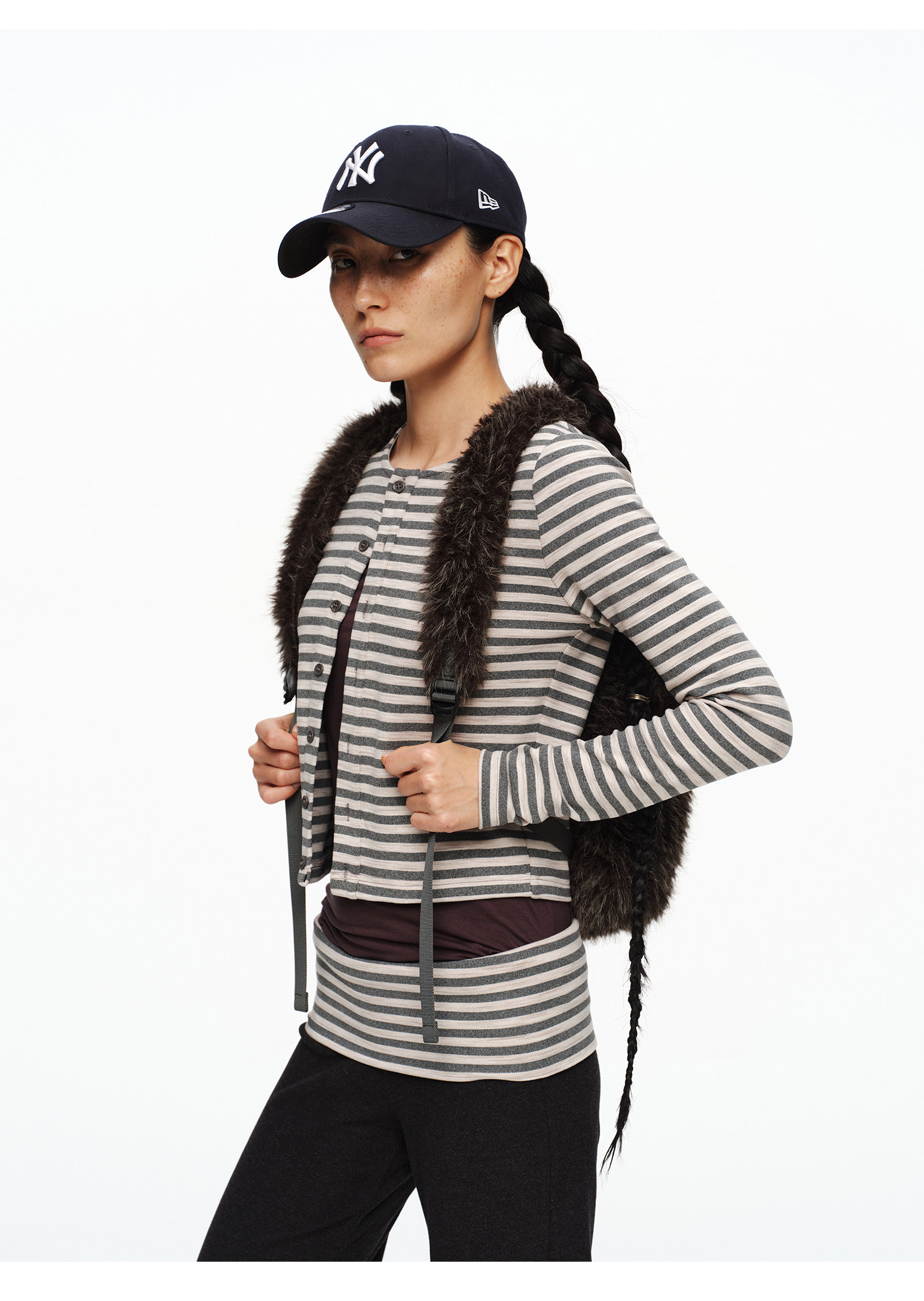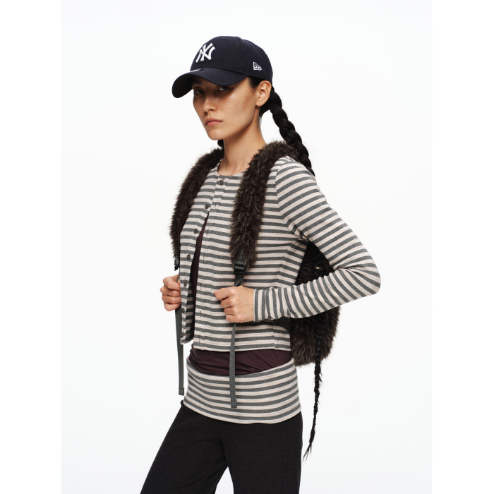 oinimi 趣味彩虹紐釦棕熊毛絨絨雙肩包 萌系造型感