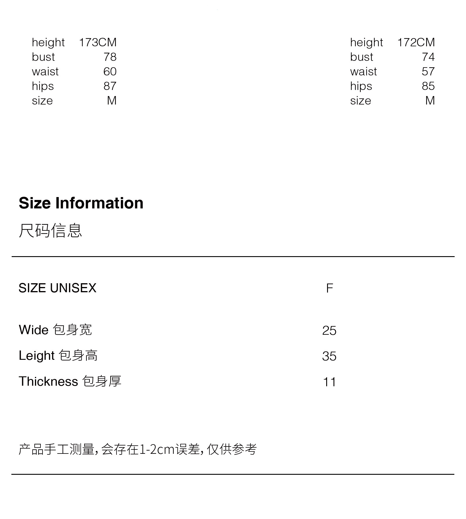 款式及尺寸: