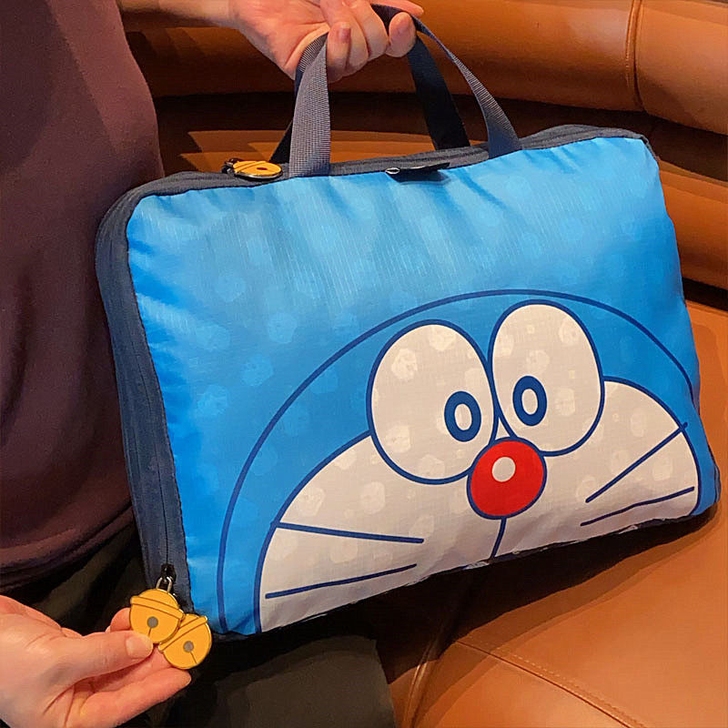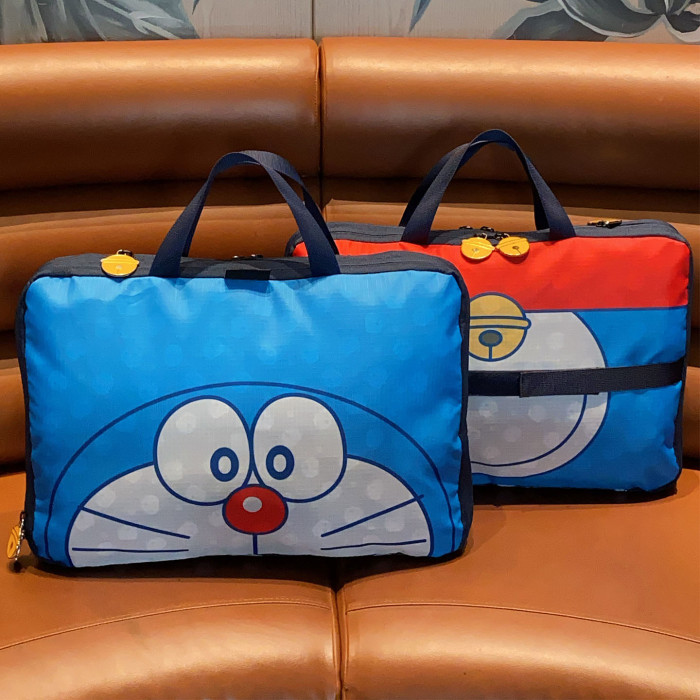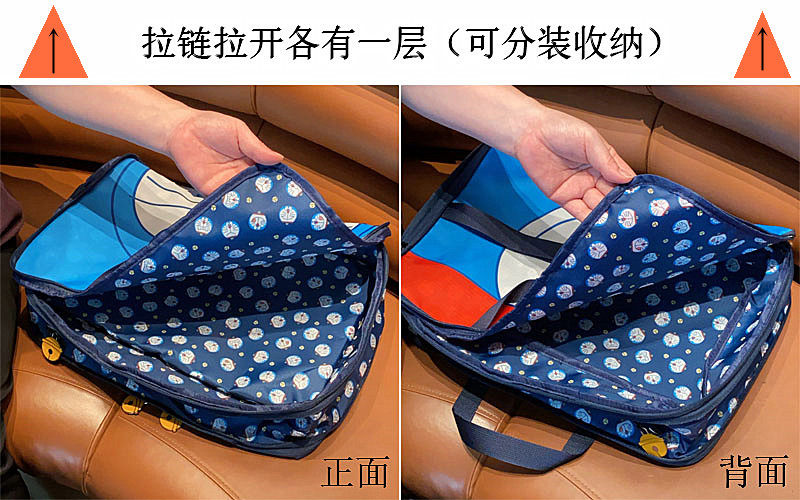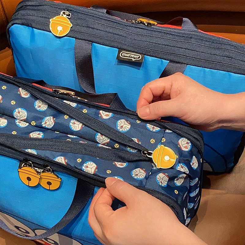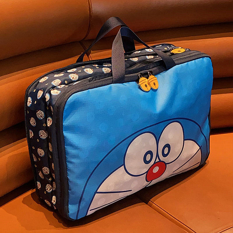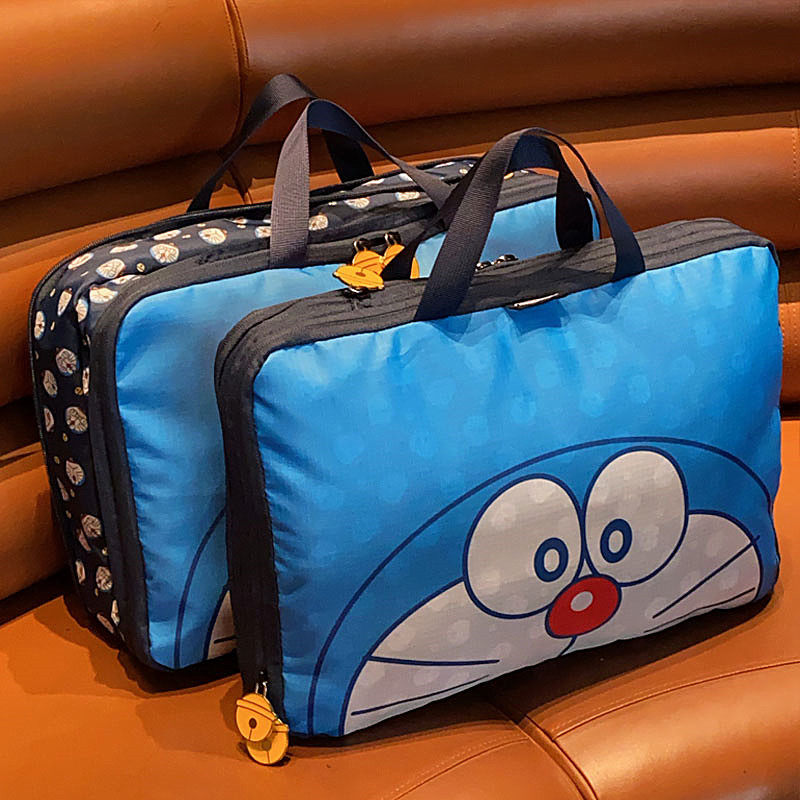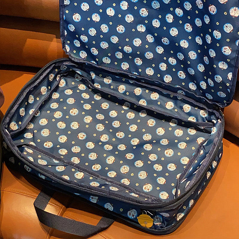 日系可愛藍胖子卡通旅行袋大容量分裝行李袋多功能衣物收納整理袋