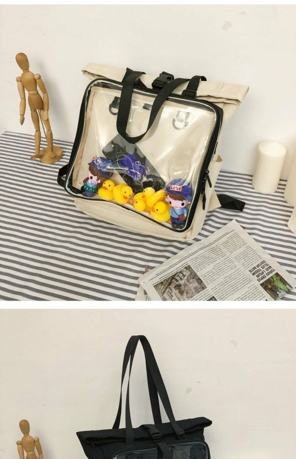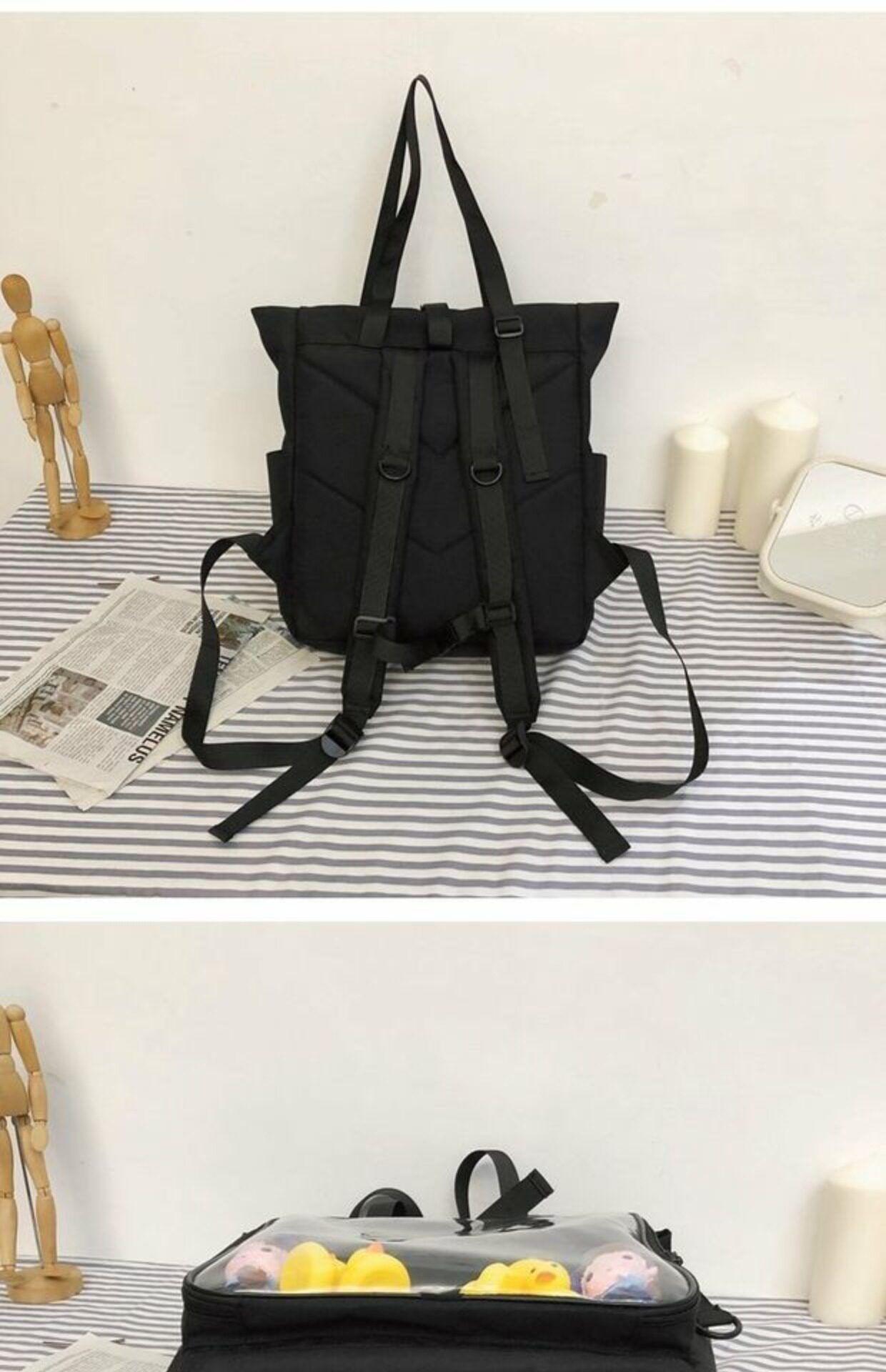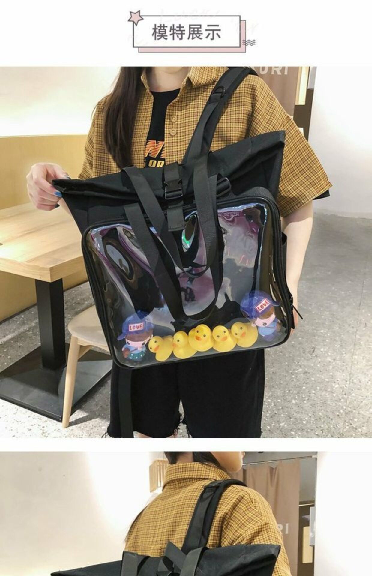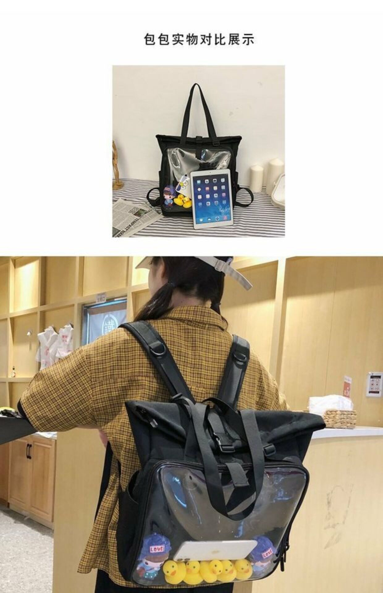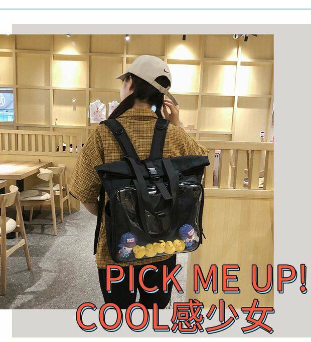 書包雙肩包大容量透明後後背包男女學生新款潮日系手提痛包外出遛娃包
