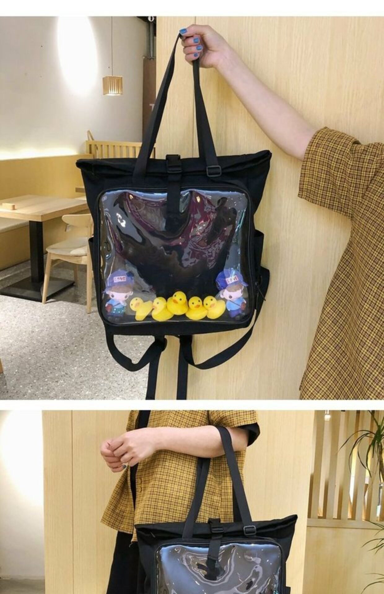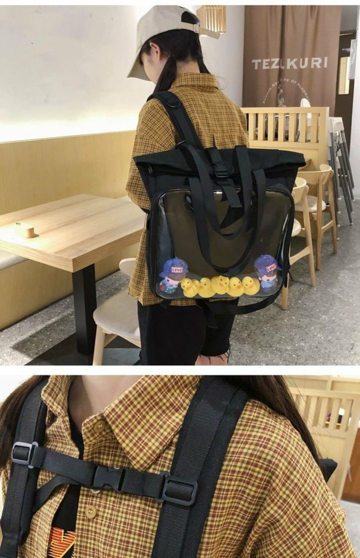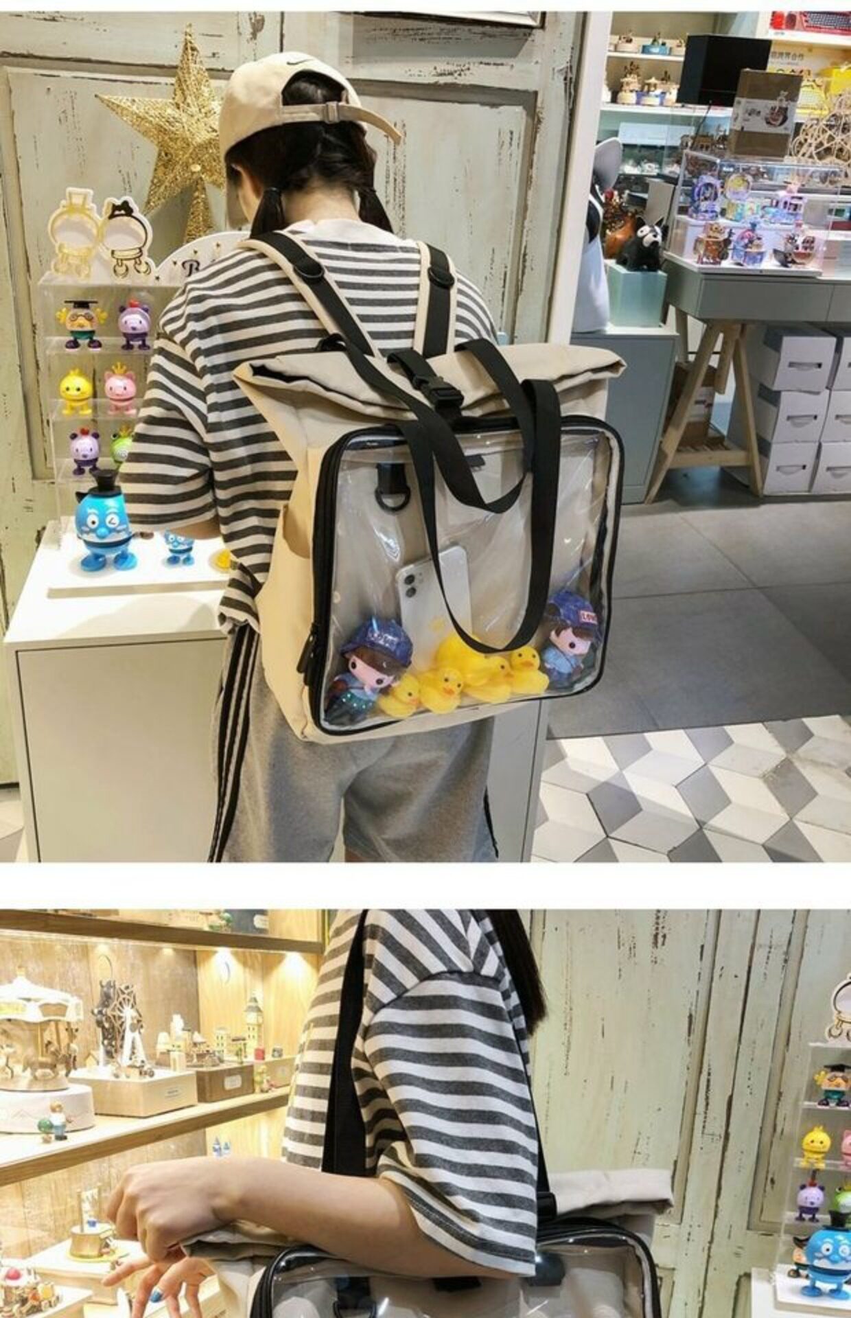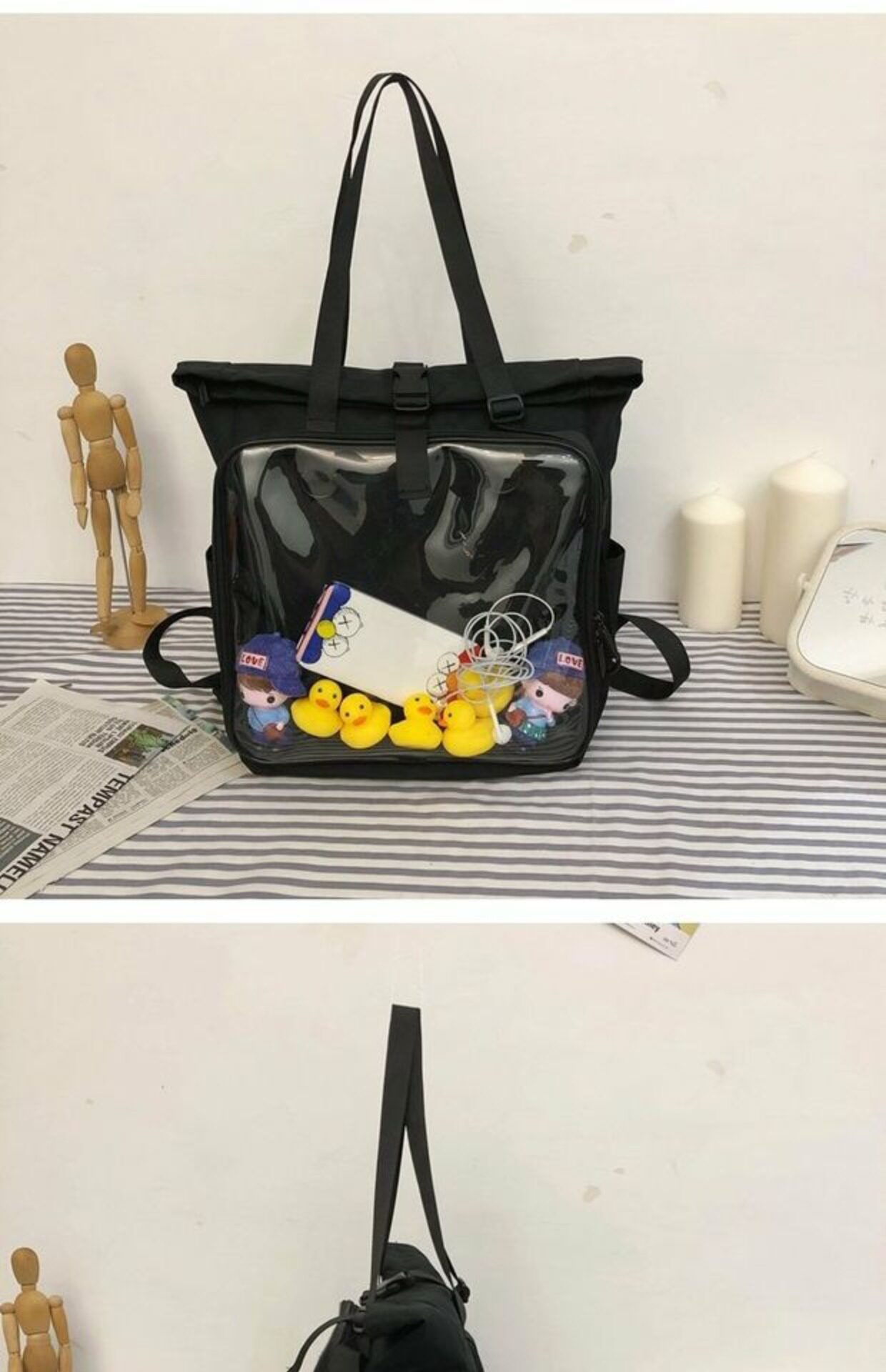 書包雙肩包大容量透明後後背包男女學生新款潮日系手提痛包外出遛娃包
