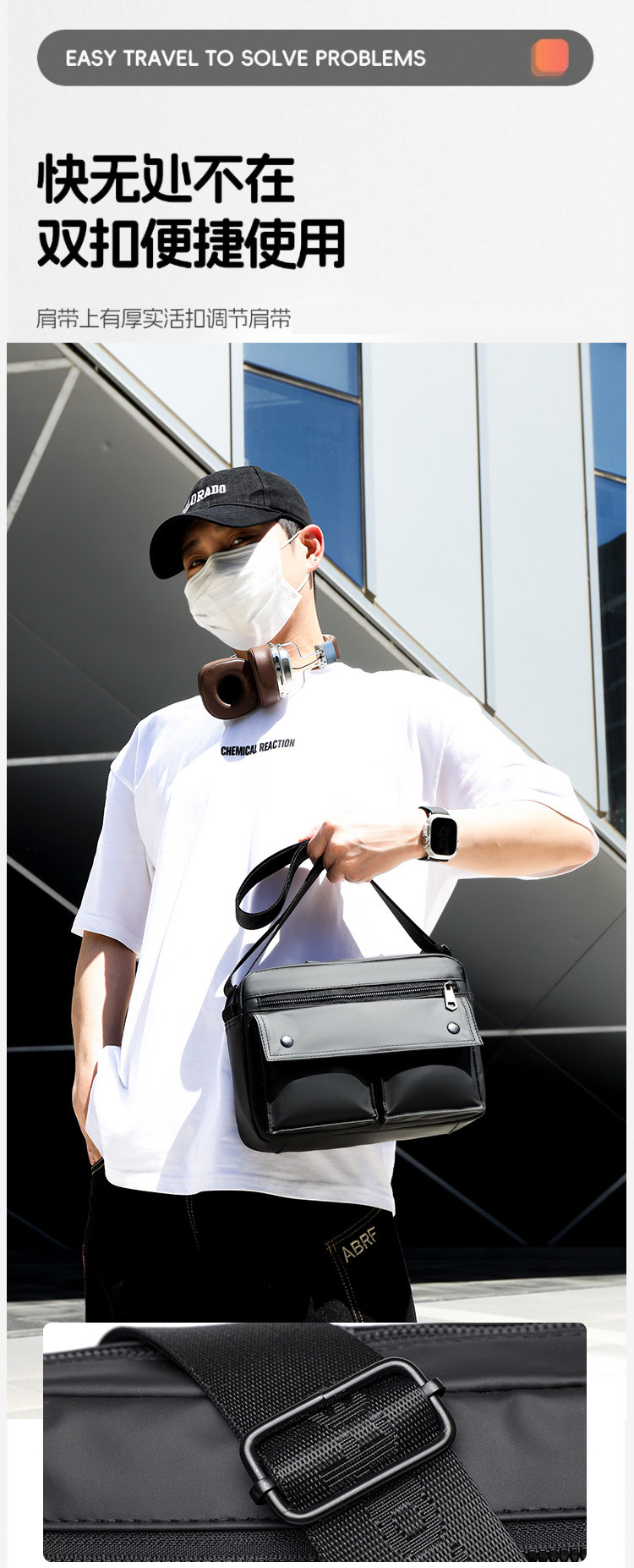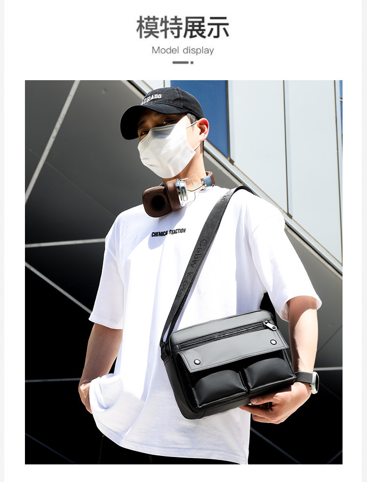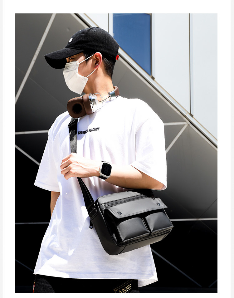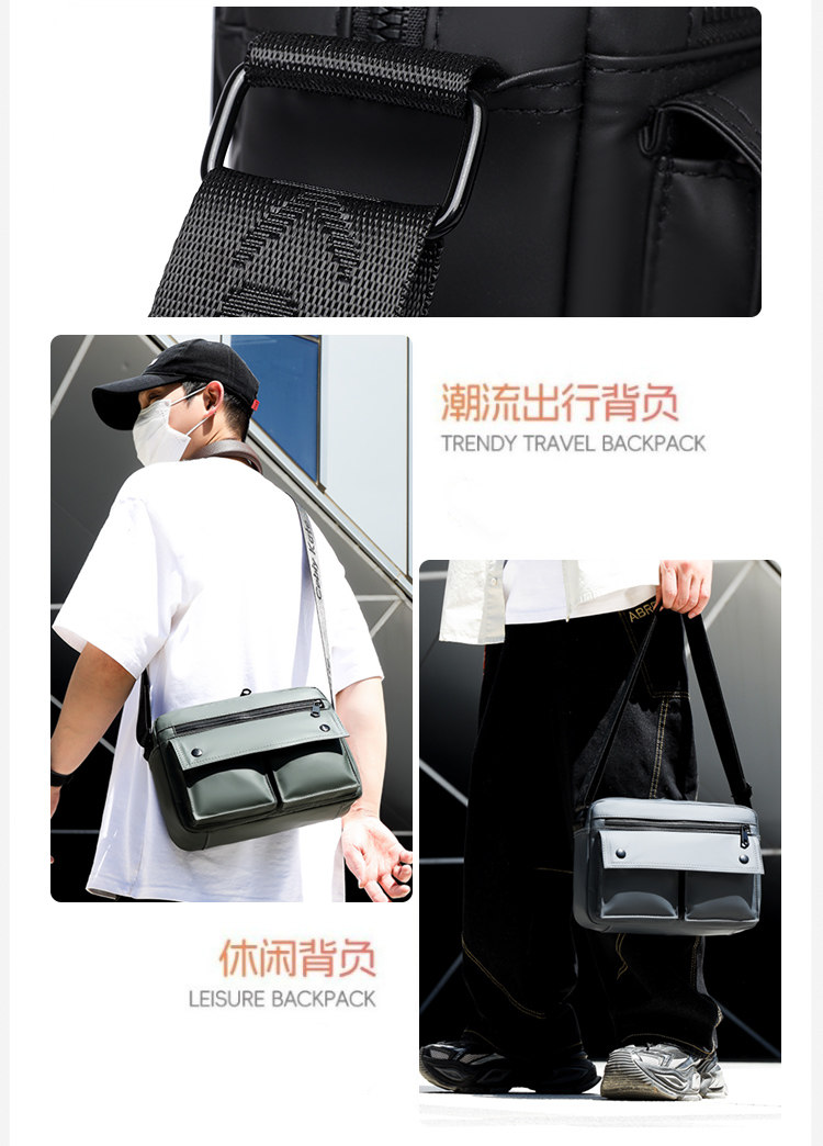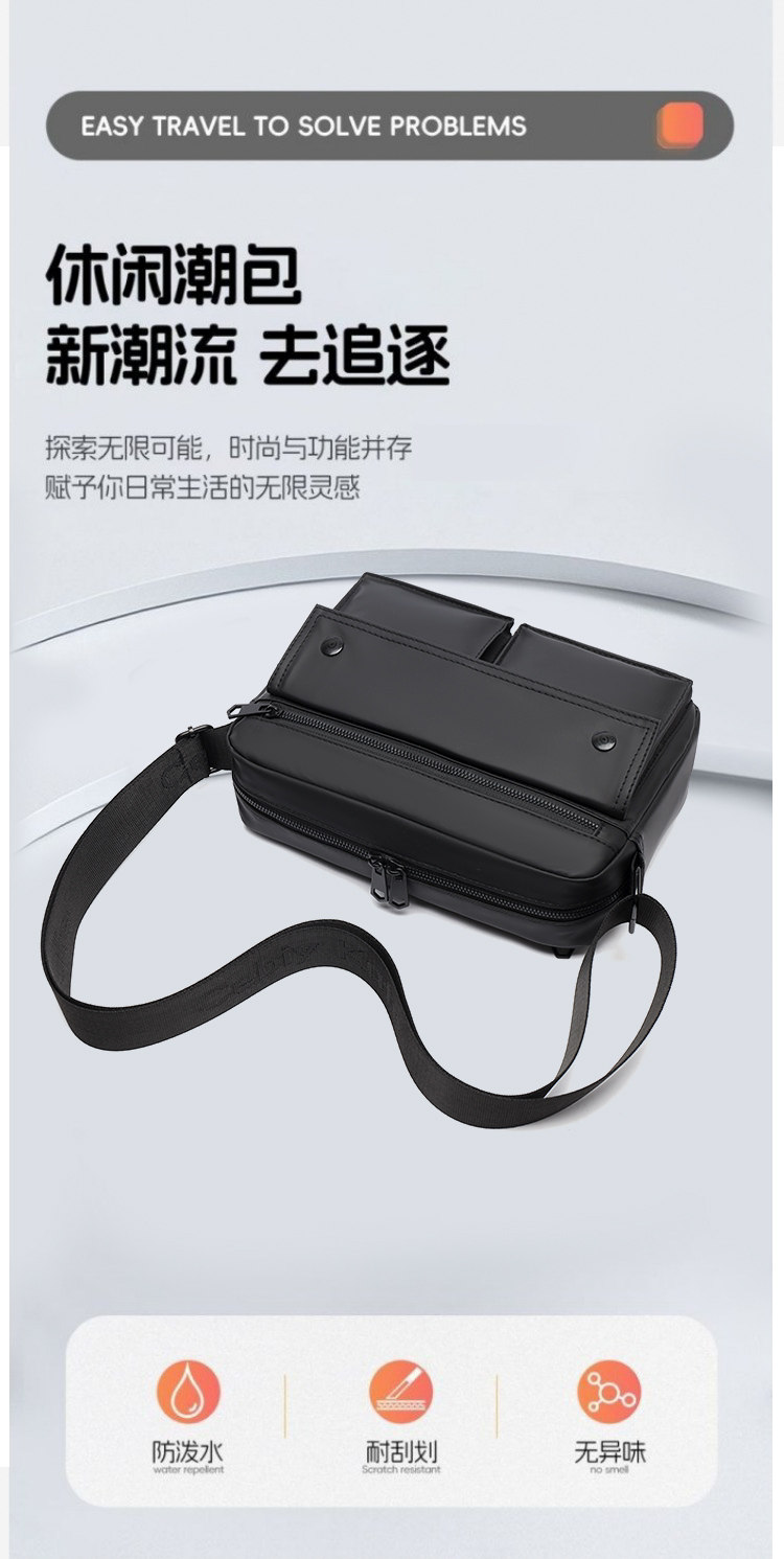 斜後後背包男皮膜時尚單肩包多功能休閒潮款挎包多層輕便通勤男包百搭