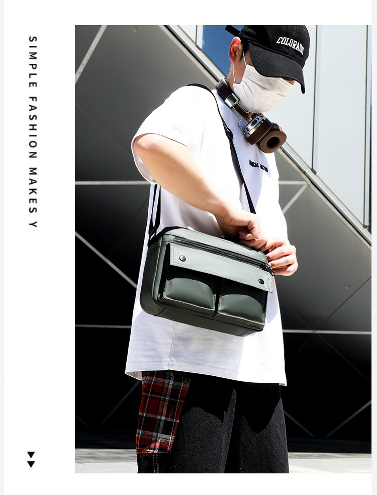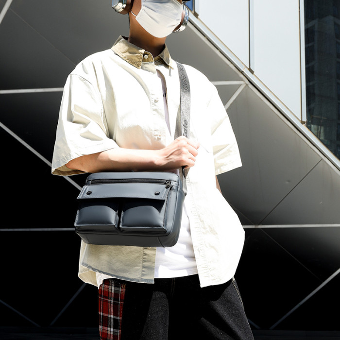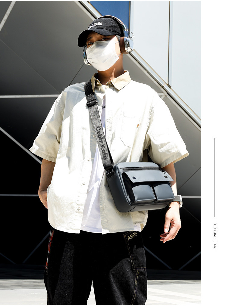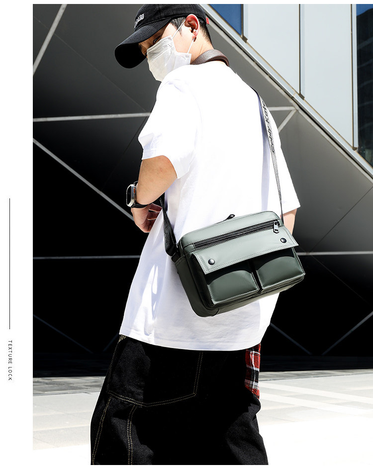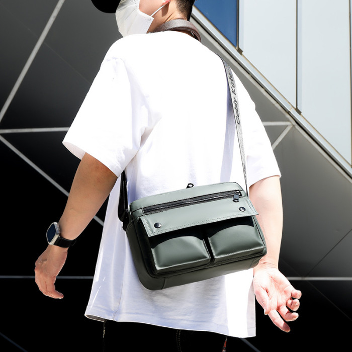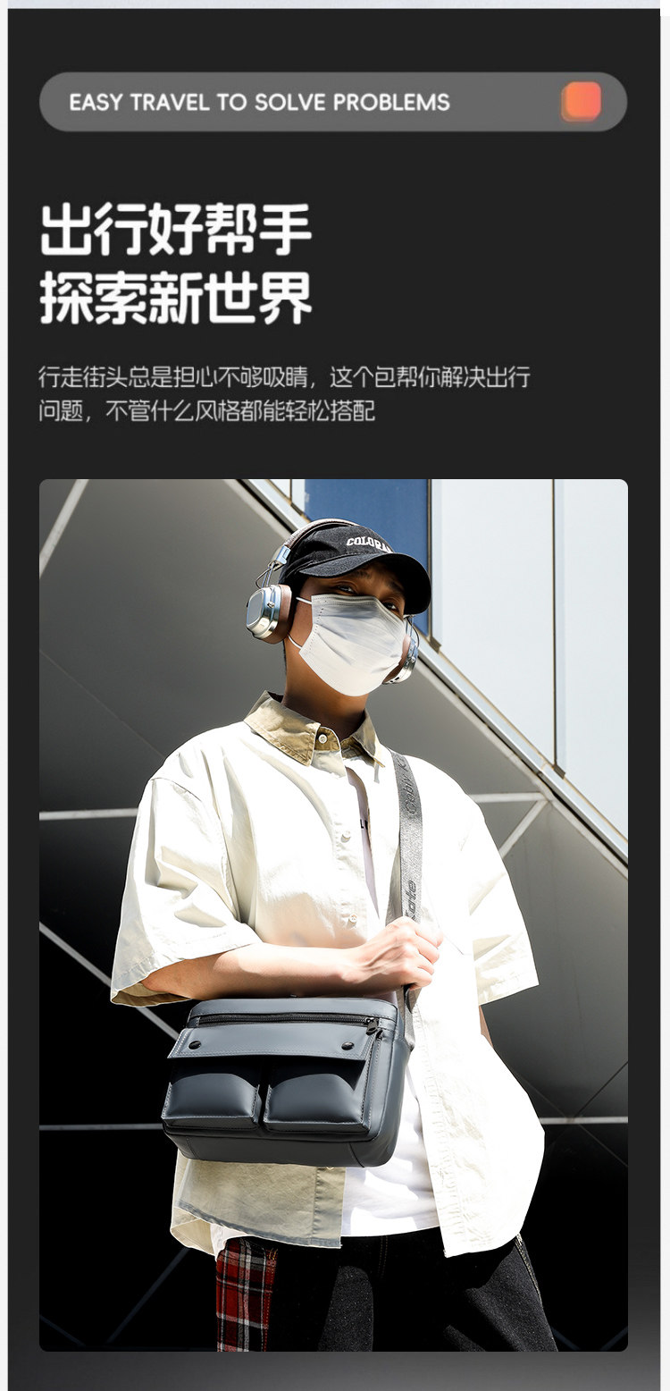 斜後後背包男皮膜時尚單肩包多功能休閒潮款挎包多層輕便通勤男包百搭