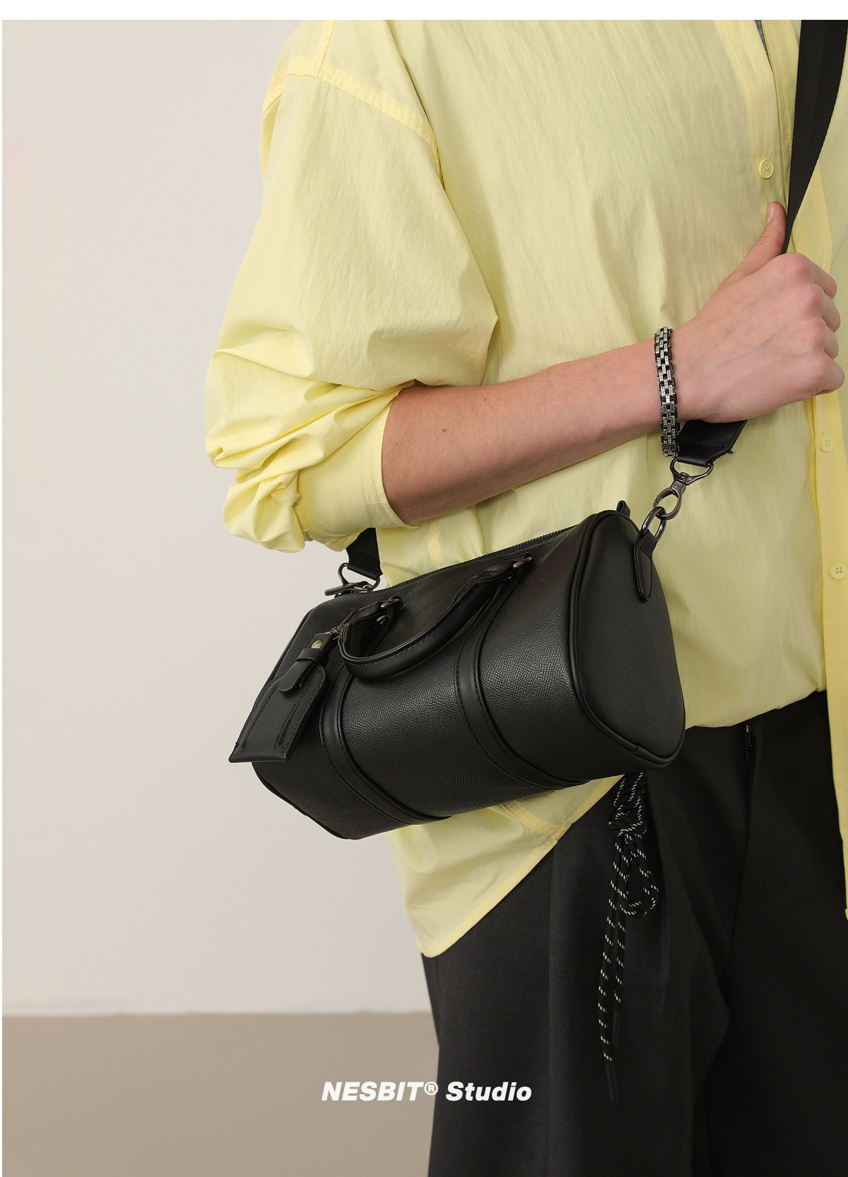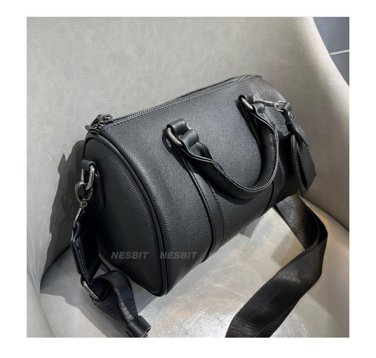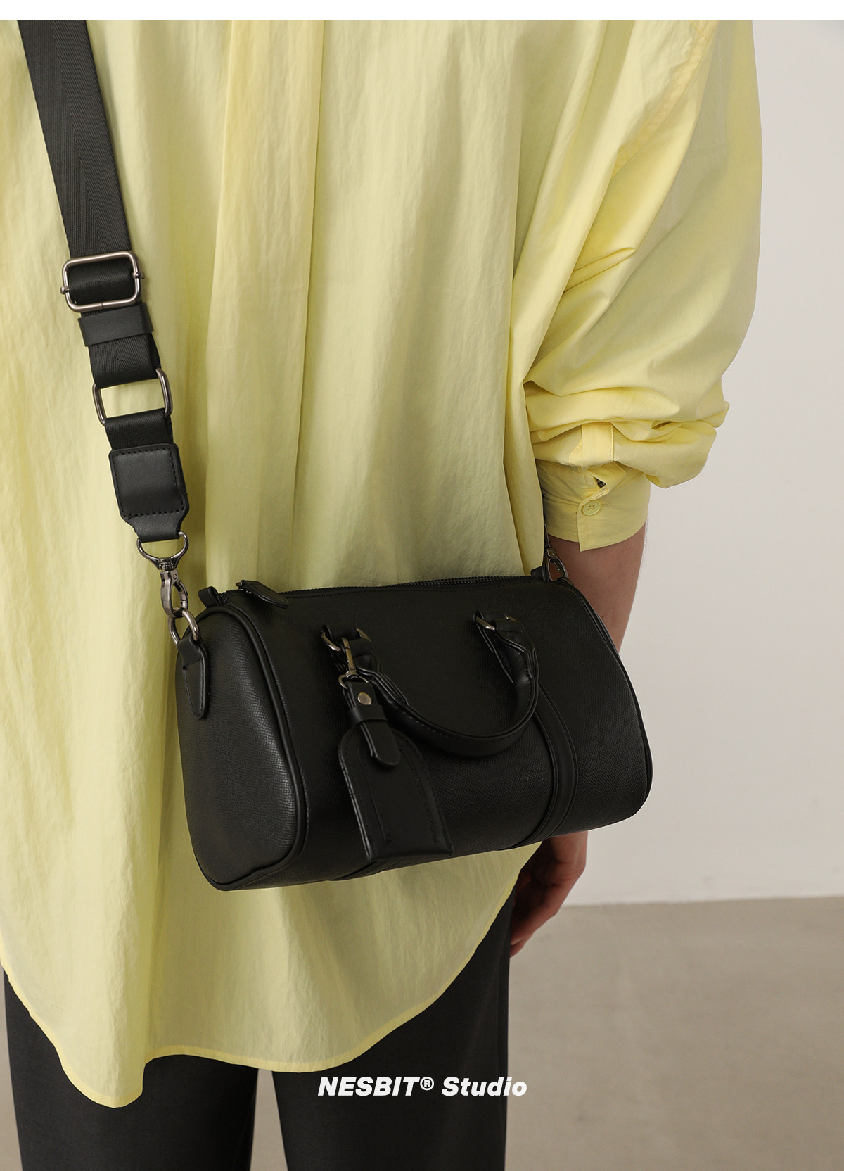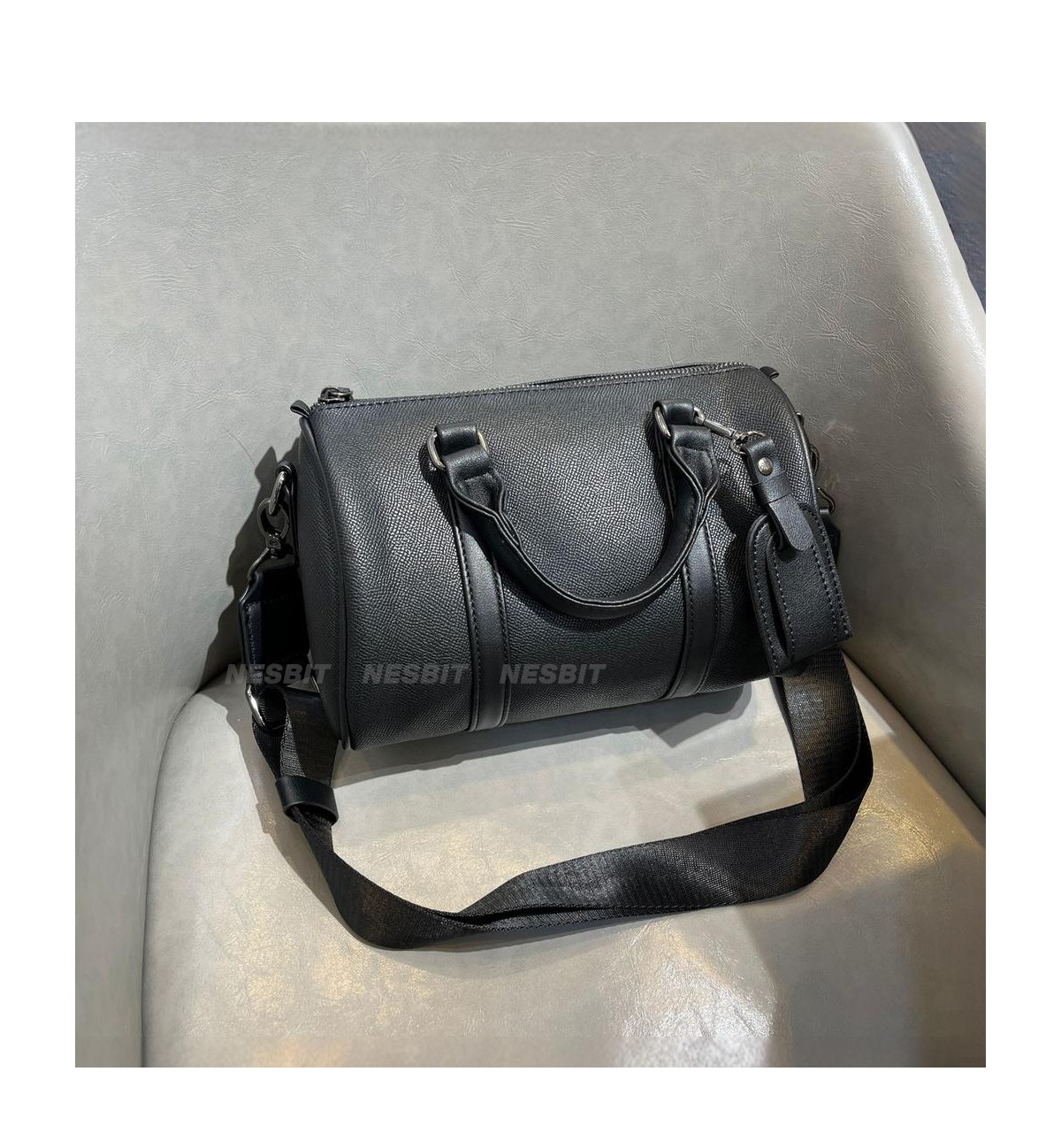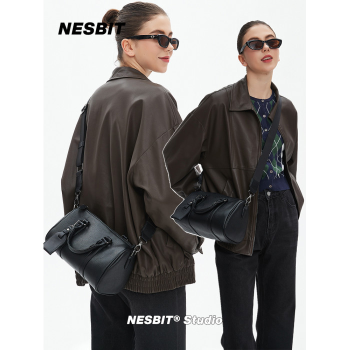 NESBIT黑武士男包歐美潮牌斜後後背包波士頓包輕奢枕頭包單肩圓筒包男
