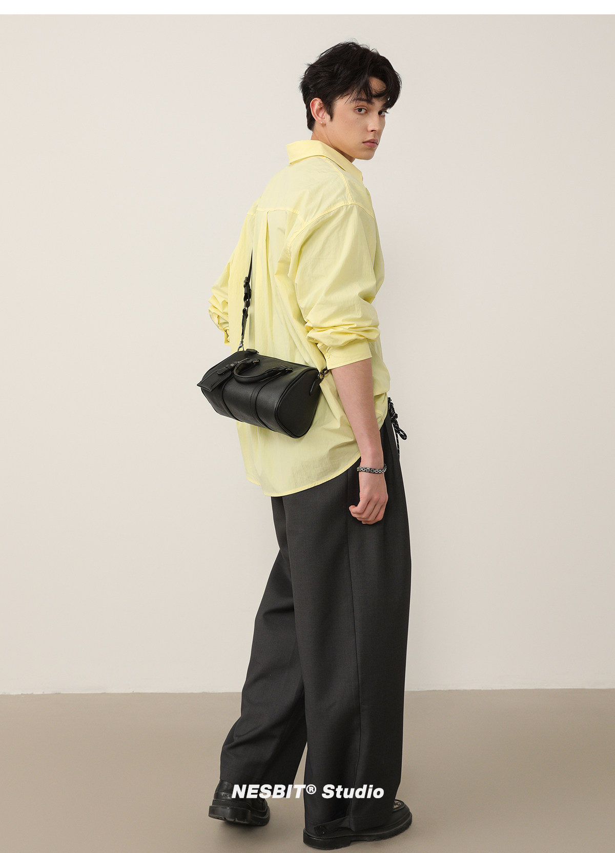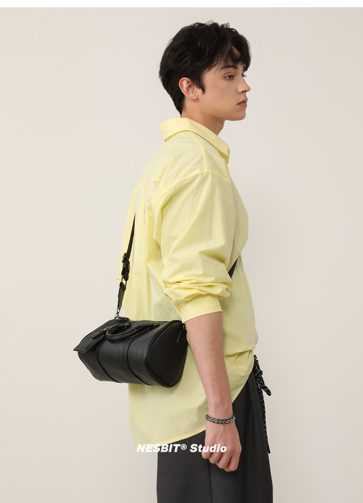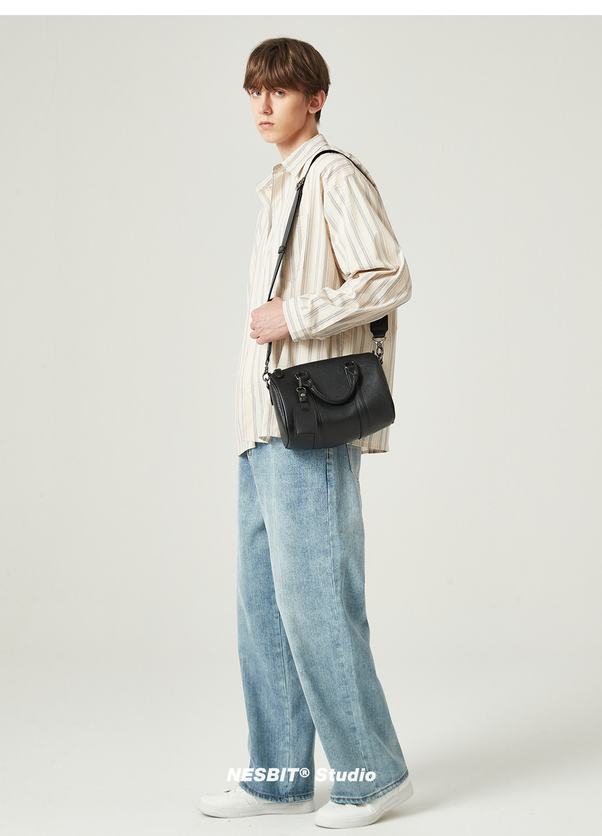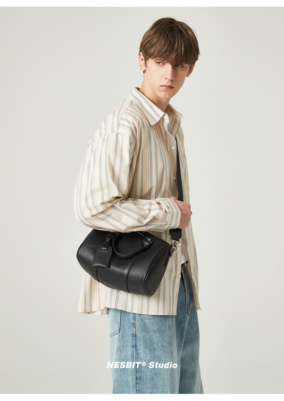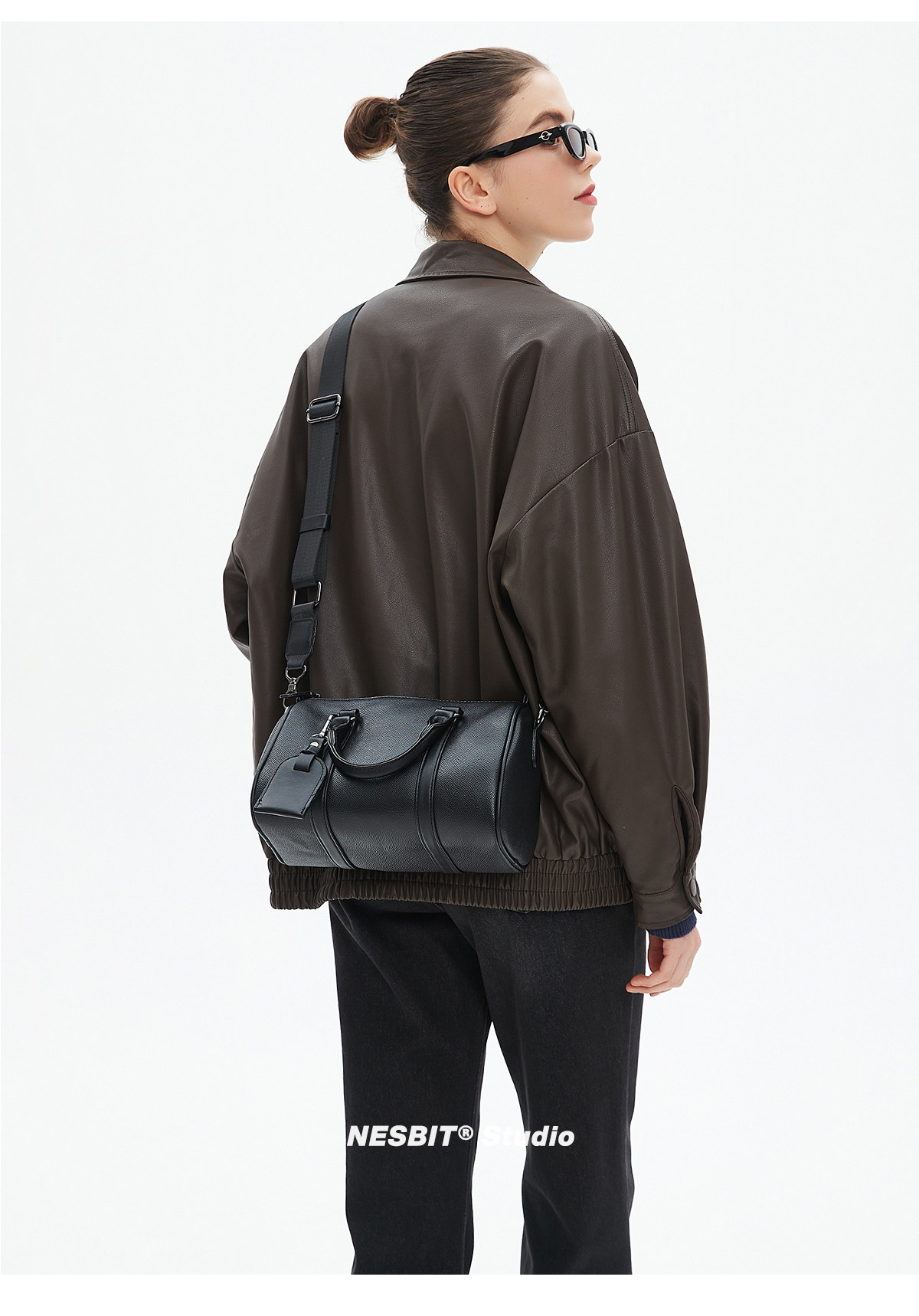 NESBIT黑武士男包歐美潮牌斜後後背包波士頓包輕奢枕頭包單肩圓筒包男