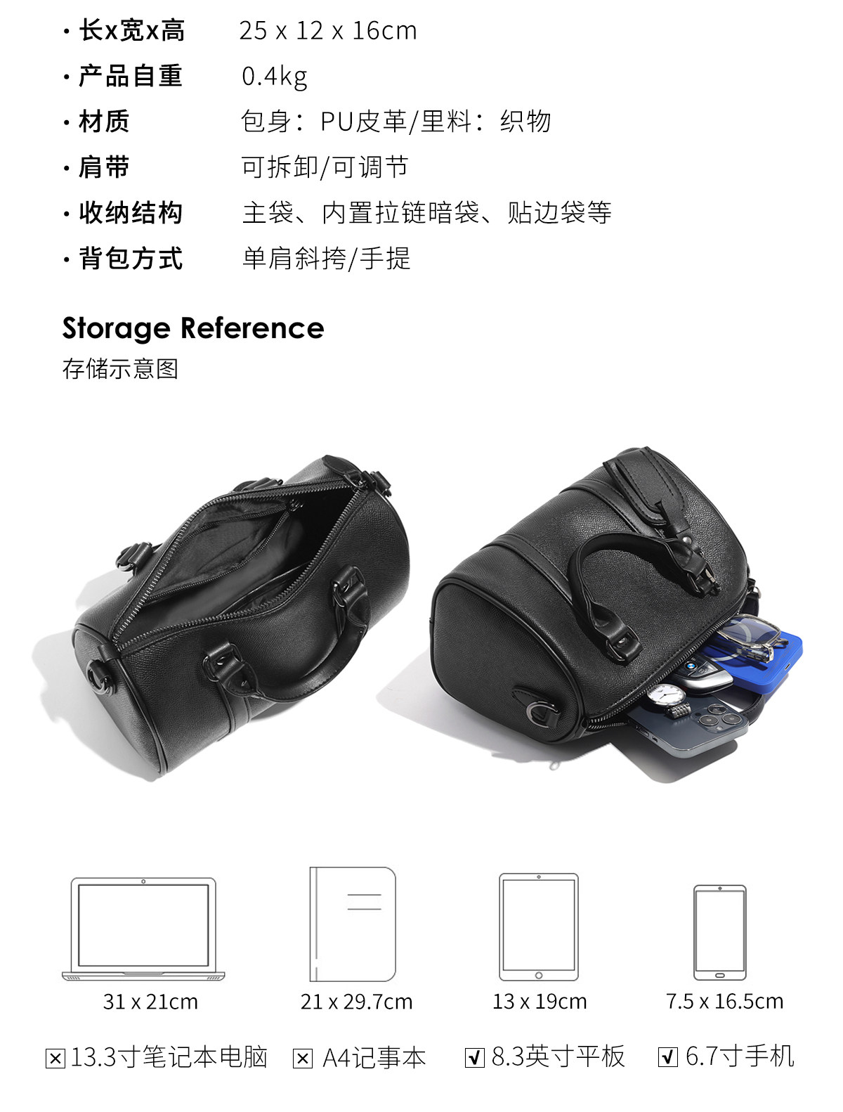 | 箱包硬度 | 軟 |