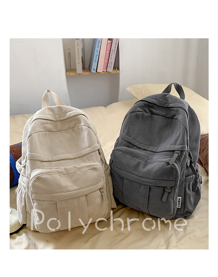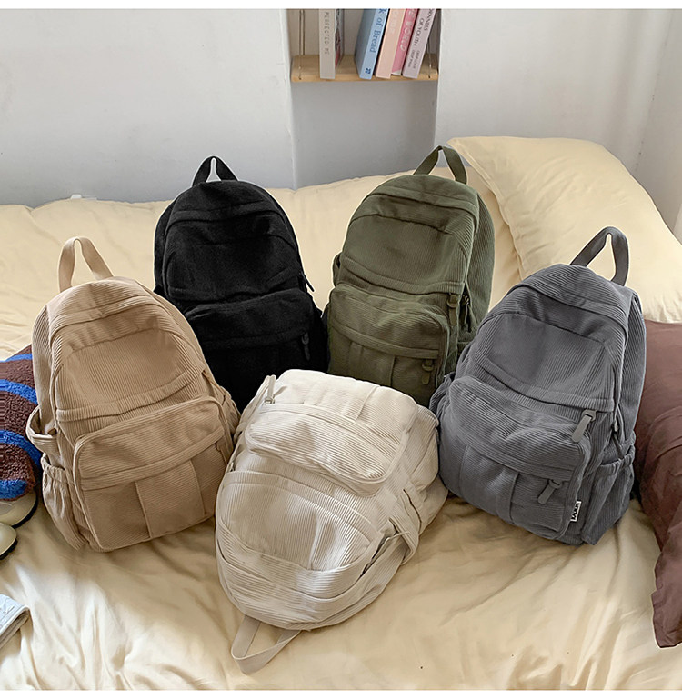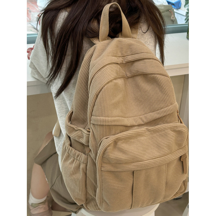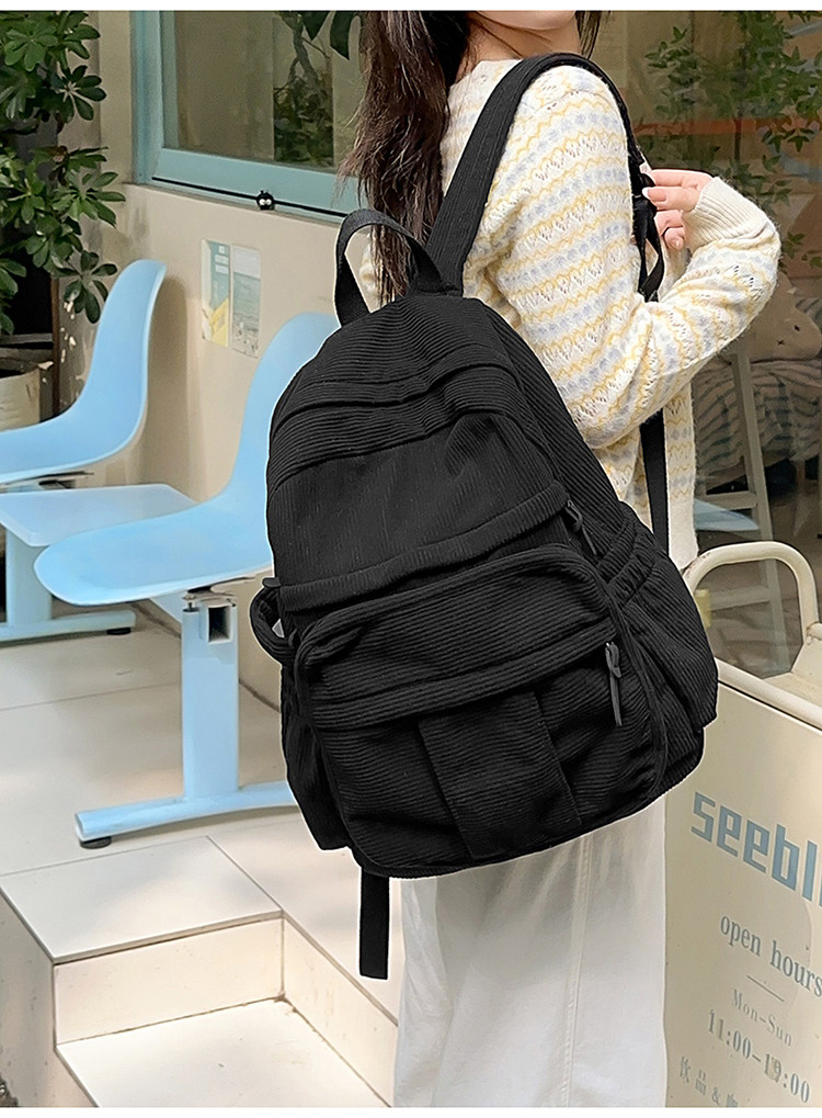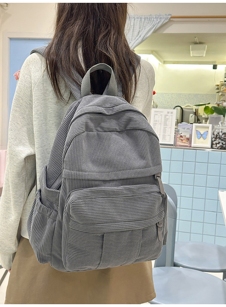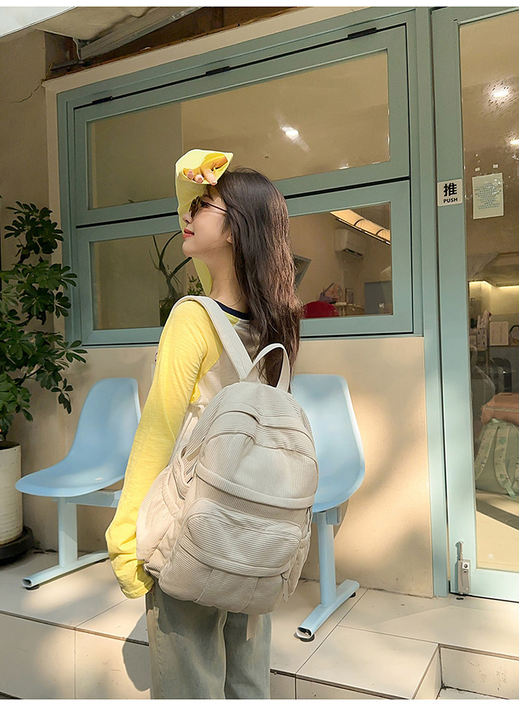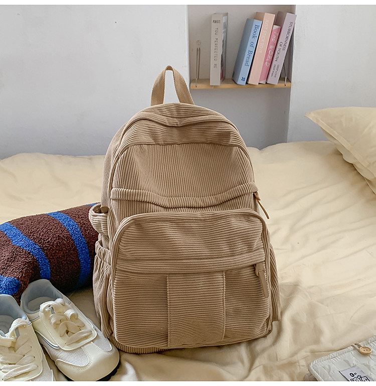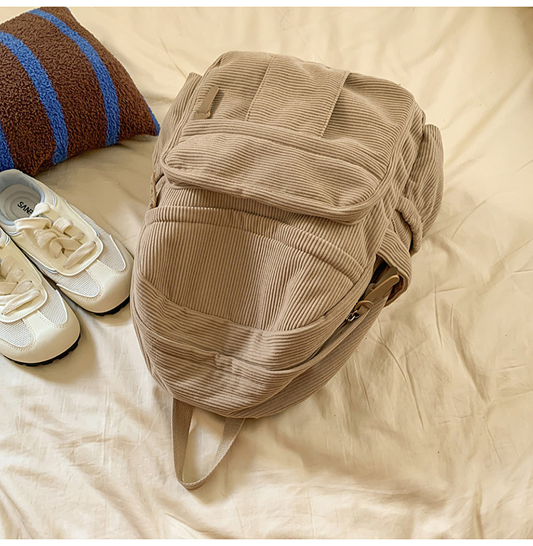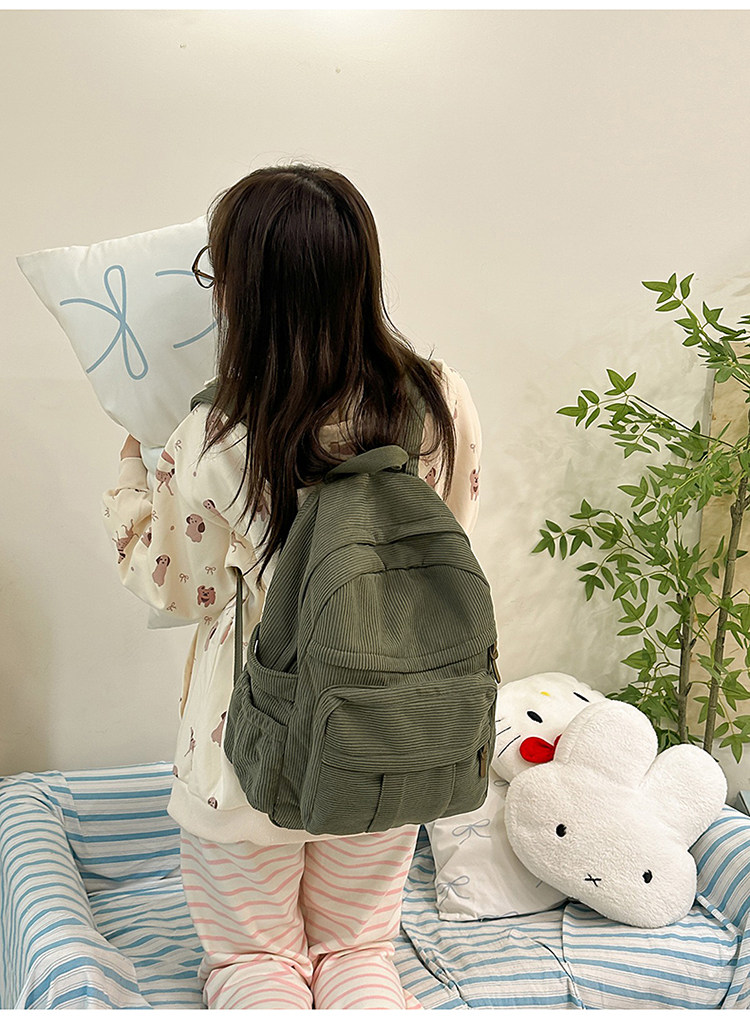 秋冬新款簡約大容量多口袋純色燈芯絨休閒日系大書包雙肩包後後背包