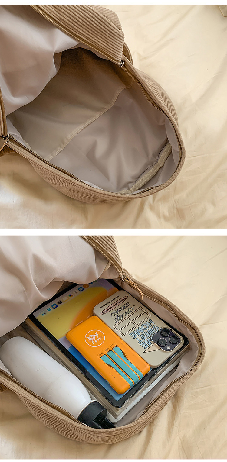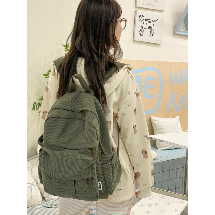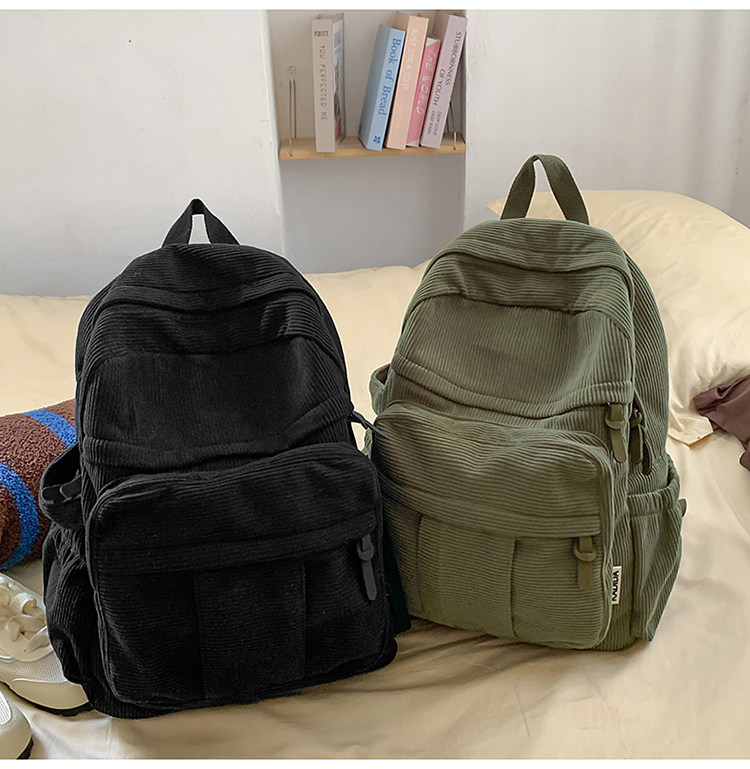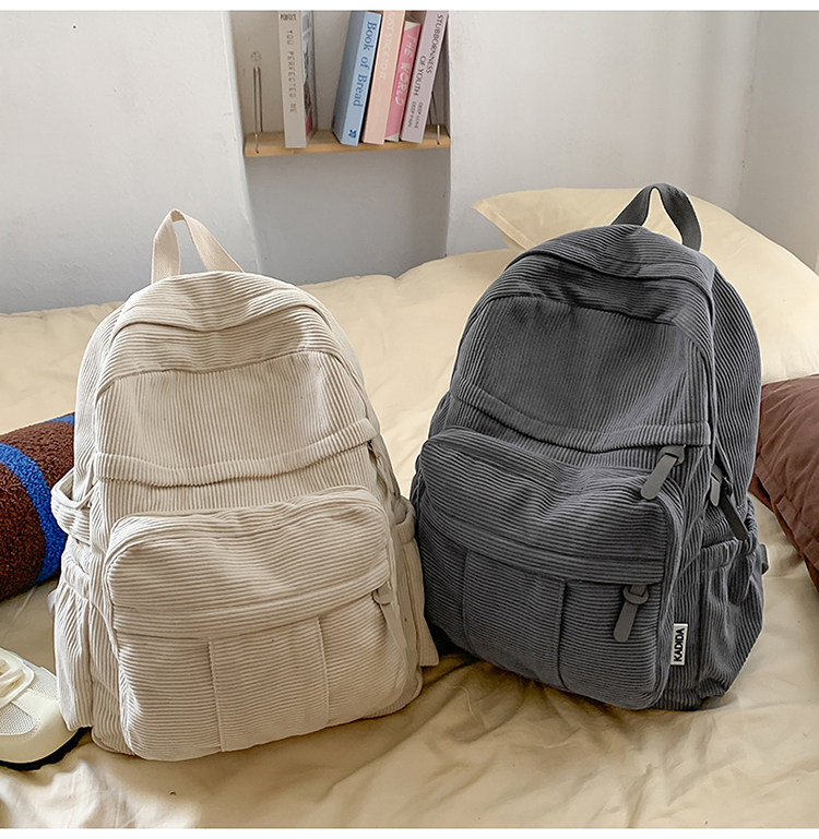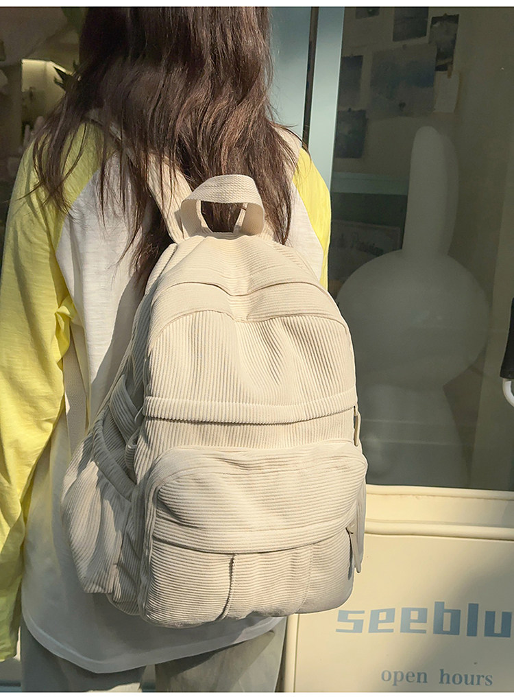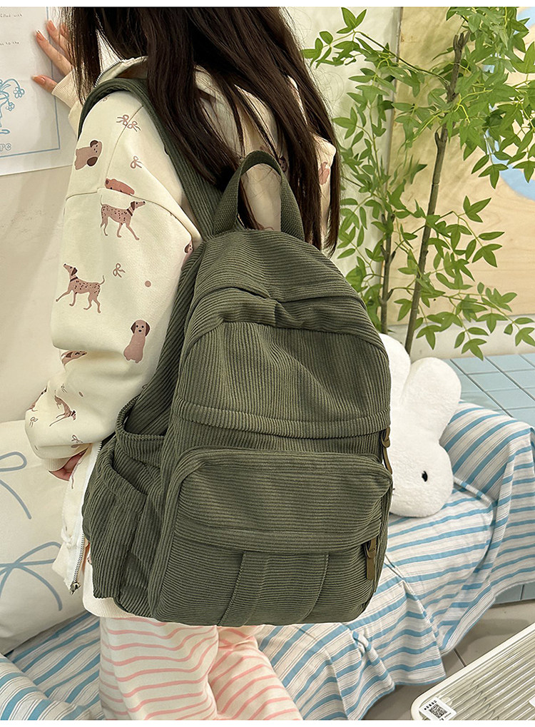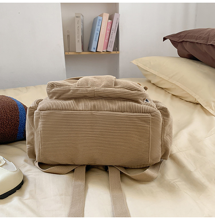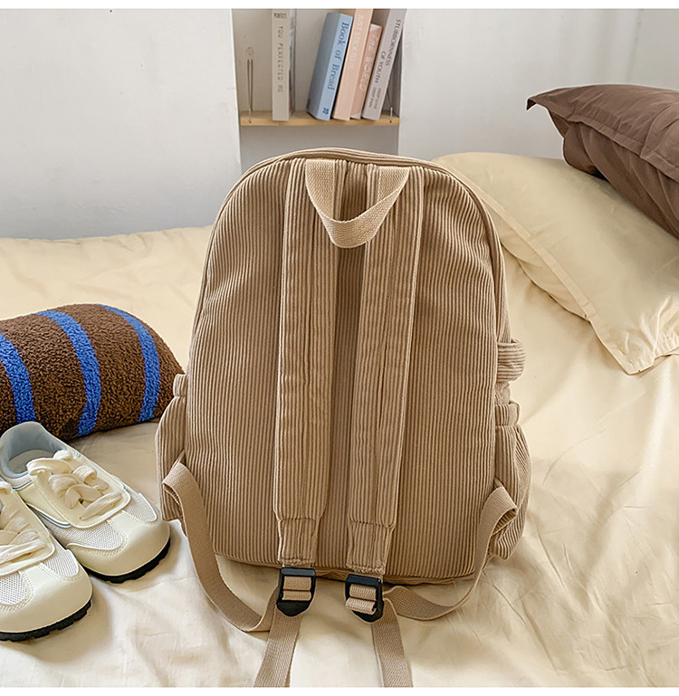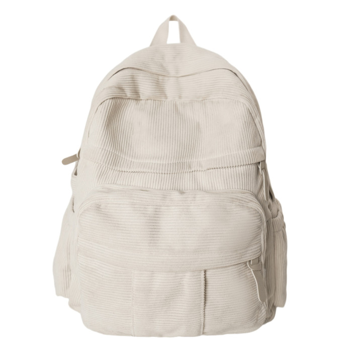 秋冬新款簡約大容量多口袋純色燈芯絨休閒日系大書包雙肩包後後背包