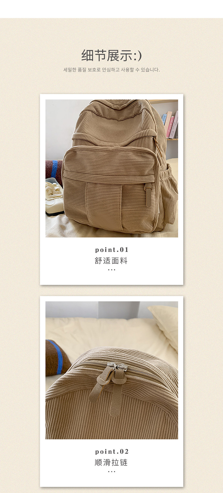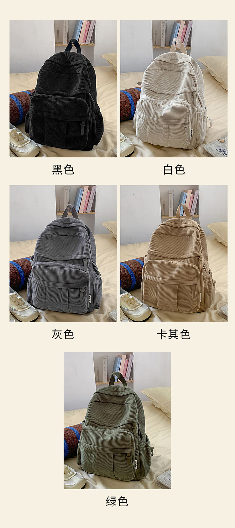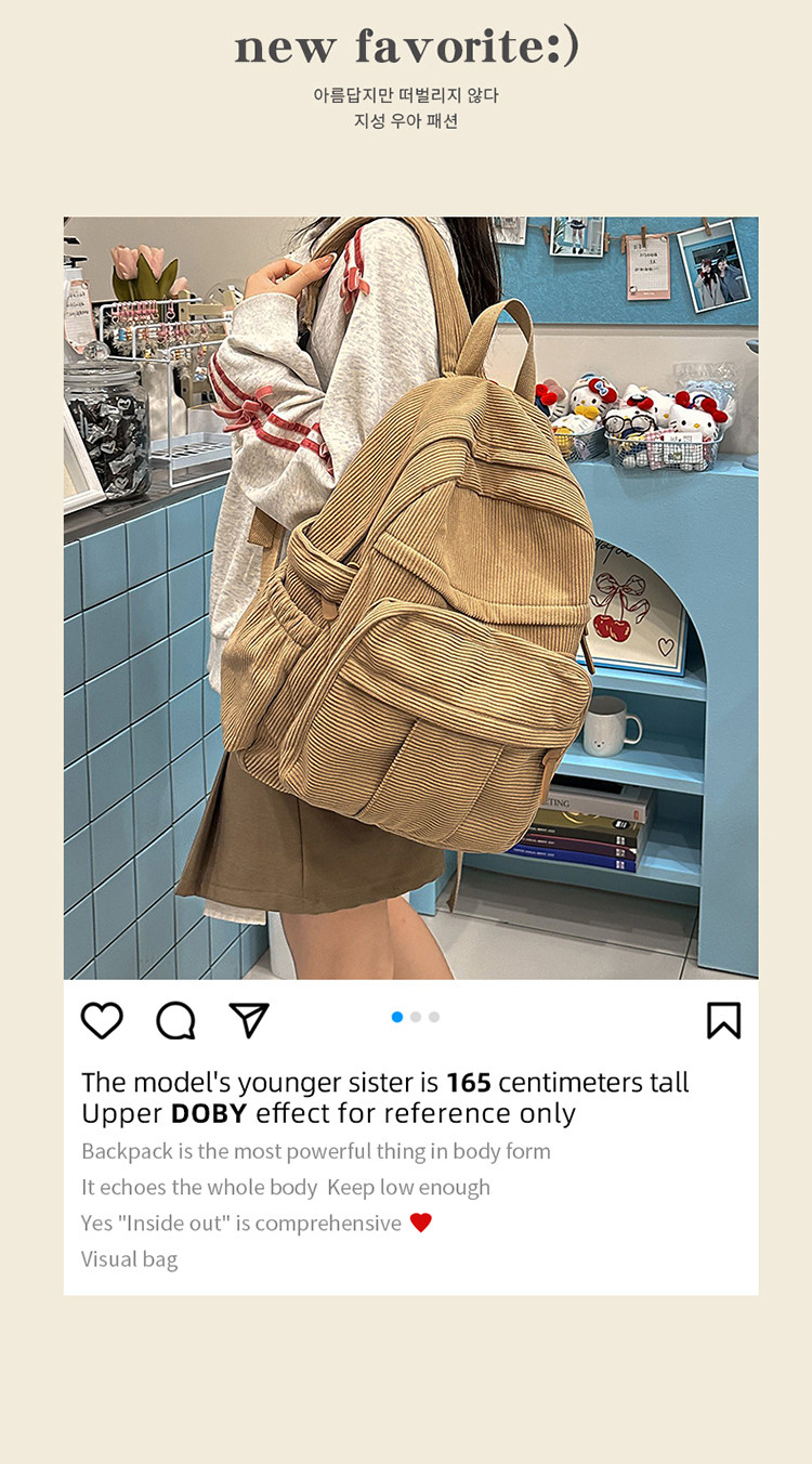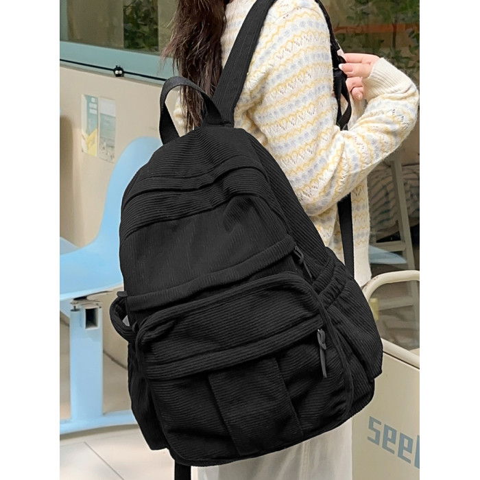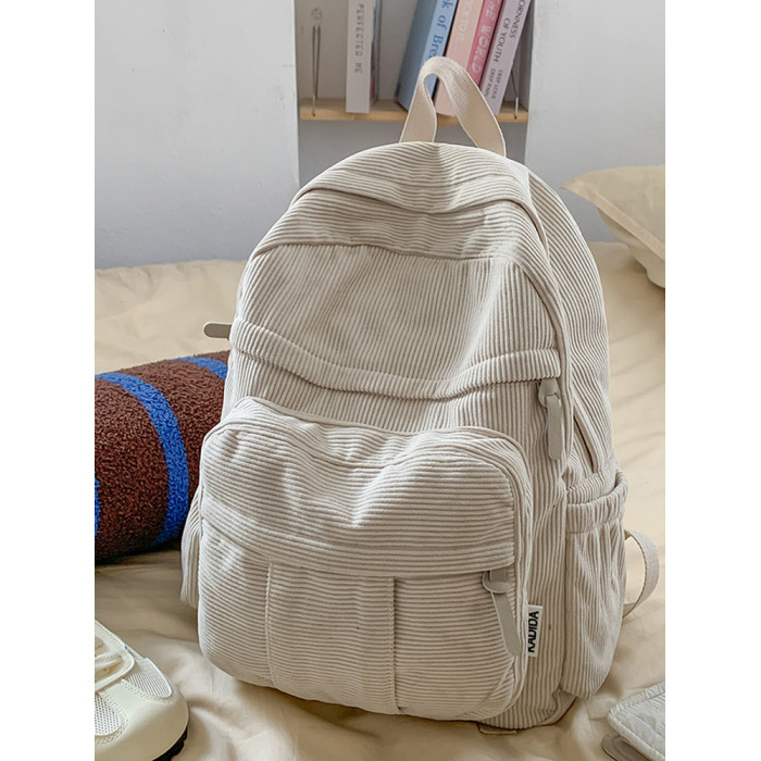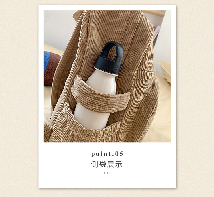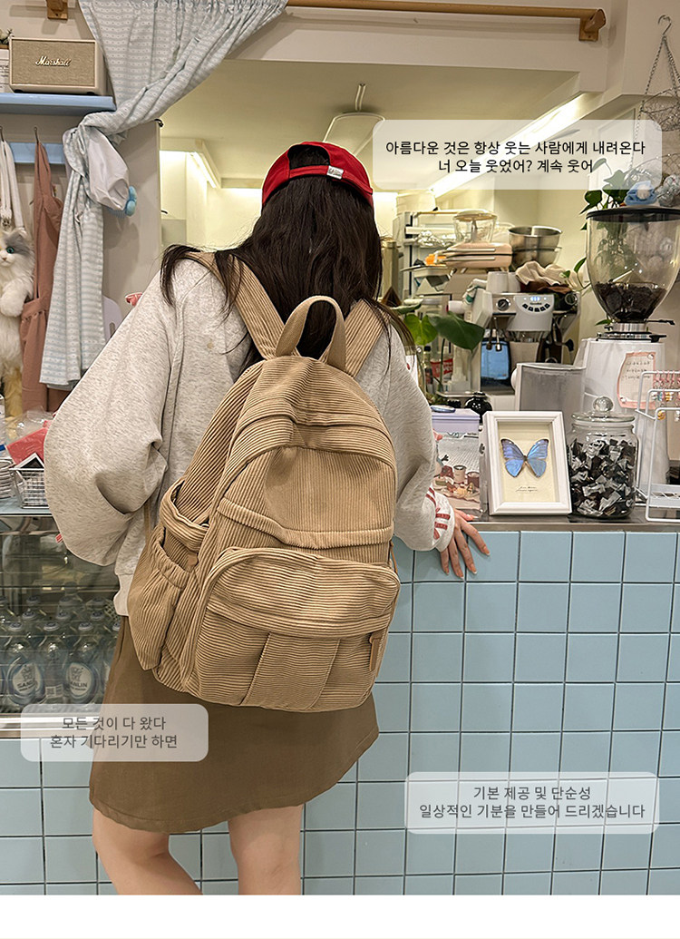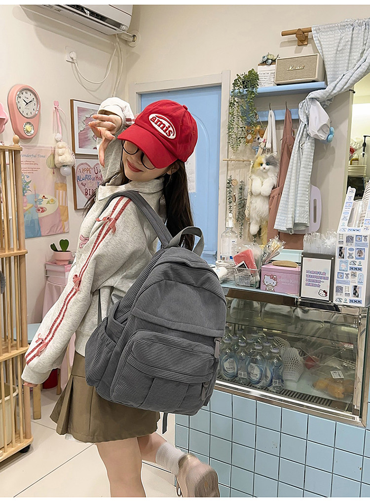 秋冬新款簡約大容量多口袋純色燈芯絨休閒日系大書包雙肩包後後背包
