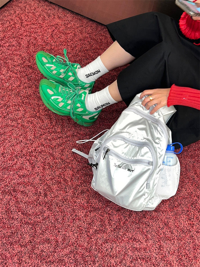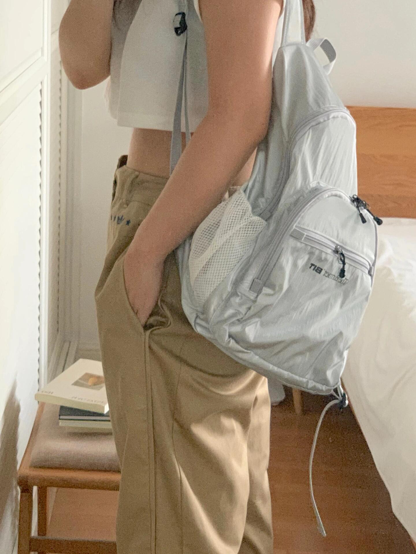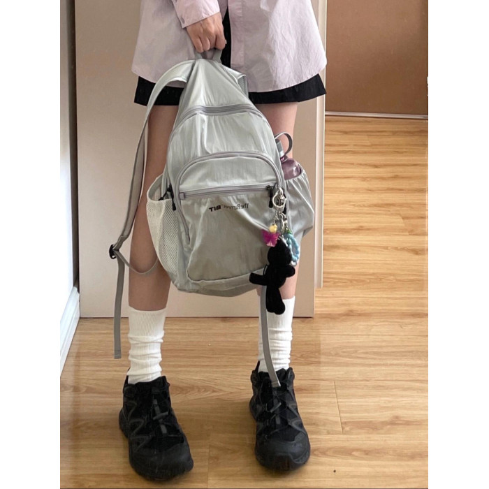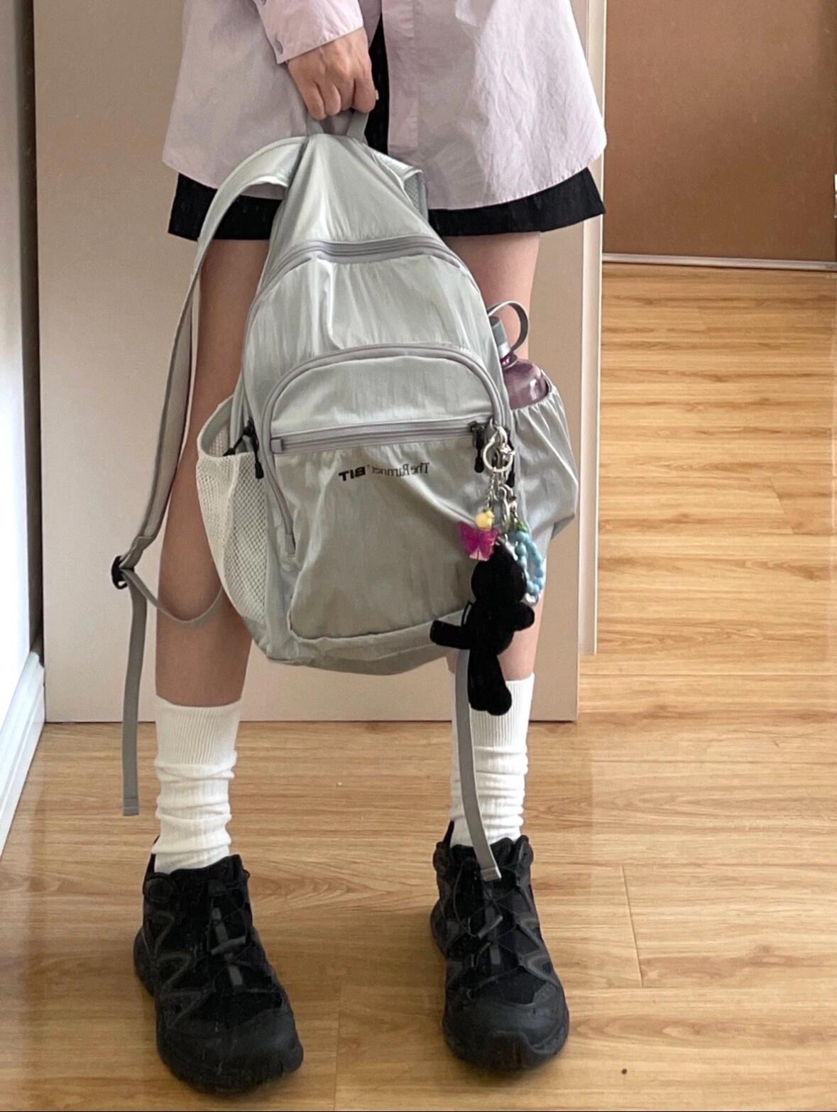 韓系八奶銀色尼龍雙肩包秋冬學生旅行書包防水輕便通勤大容量戶外