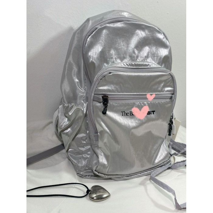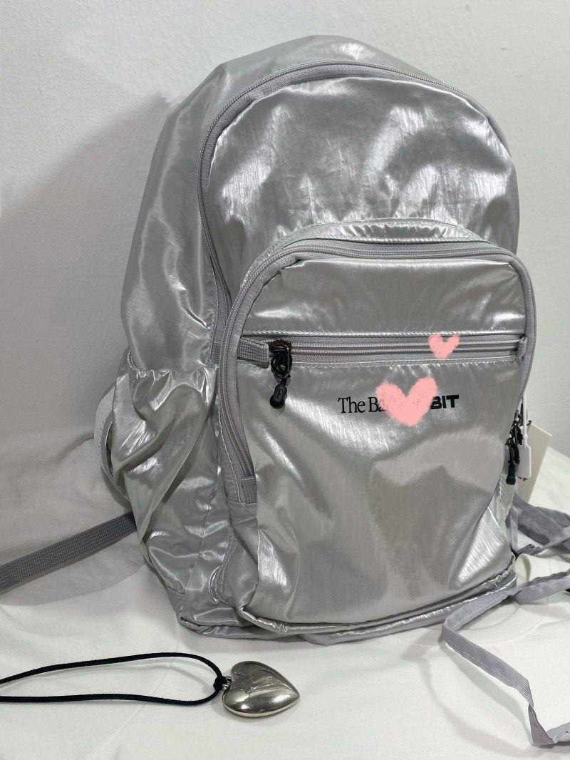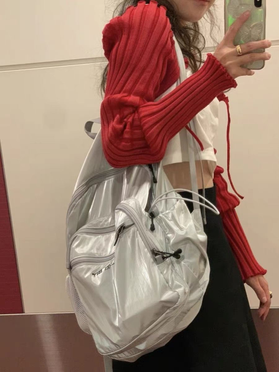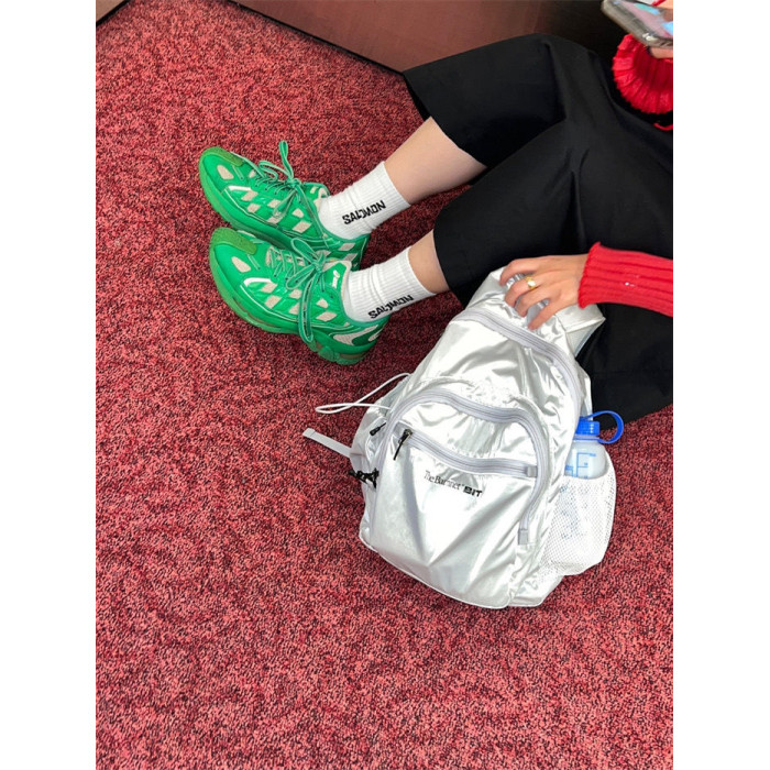 韓系八奶銀色尼龍雙肩包秋冬學生旅行書包防水輕便通勤大容量戶外