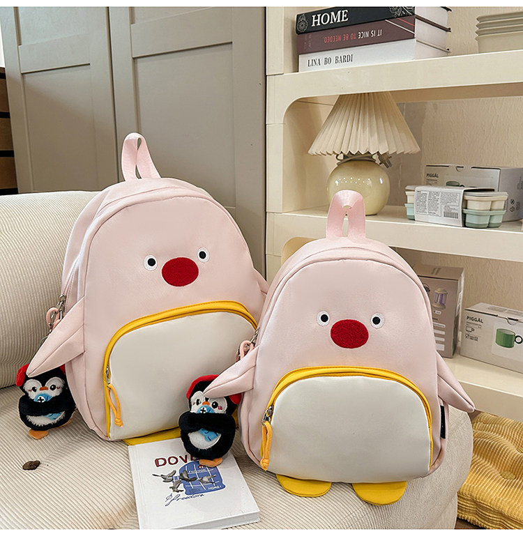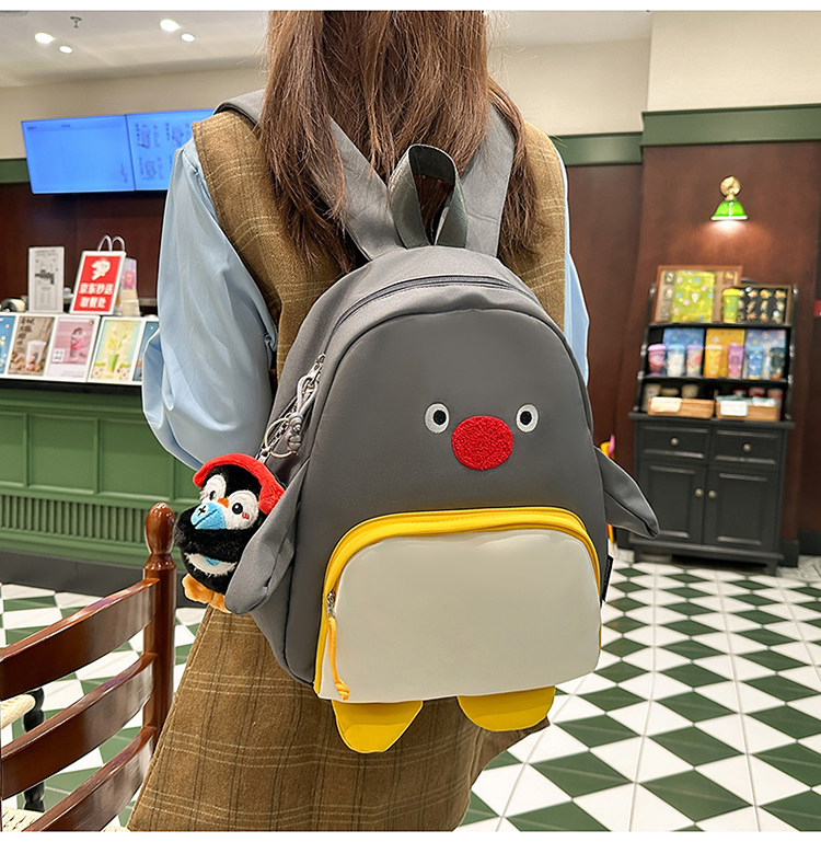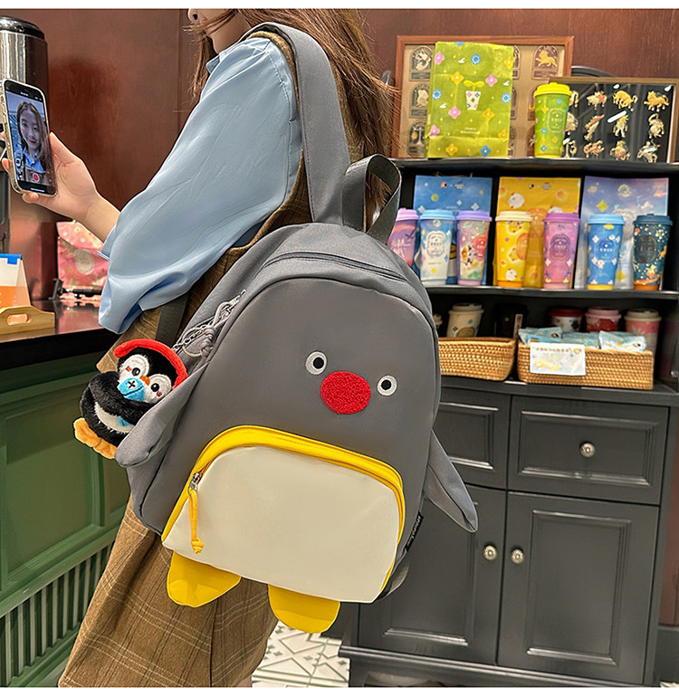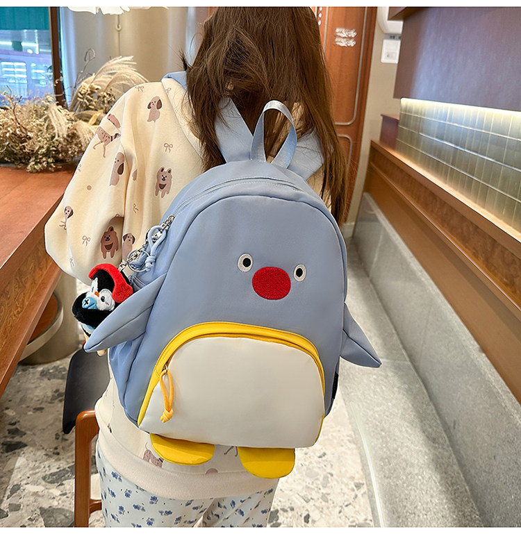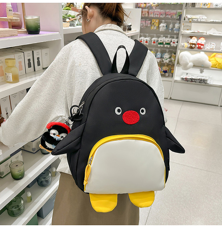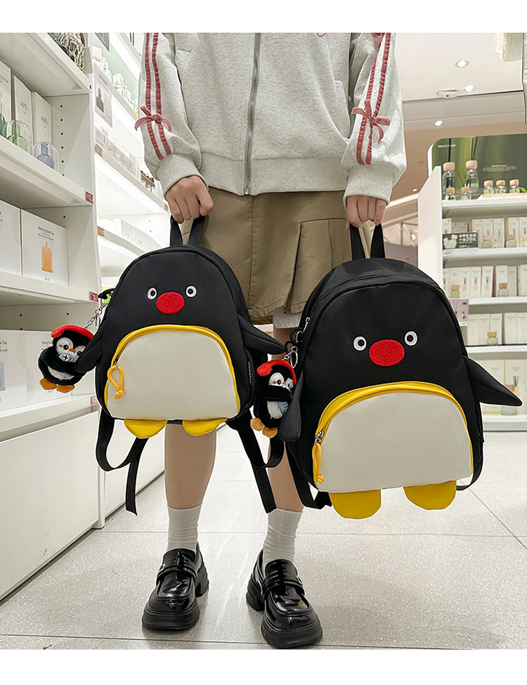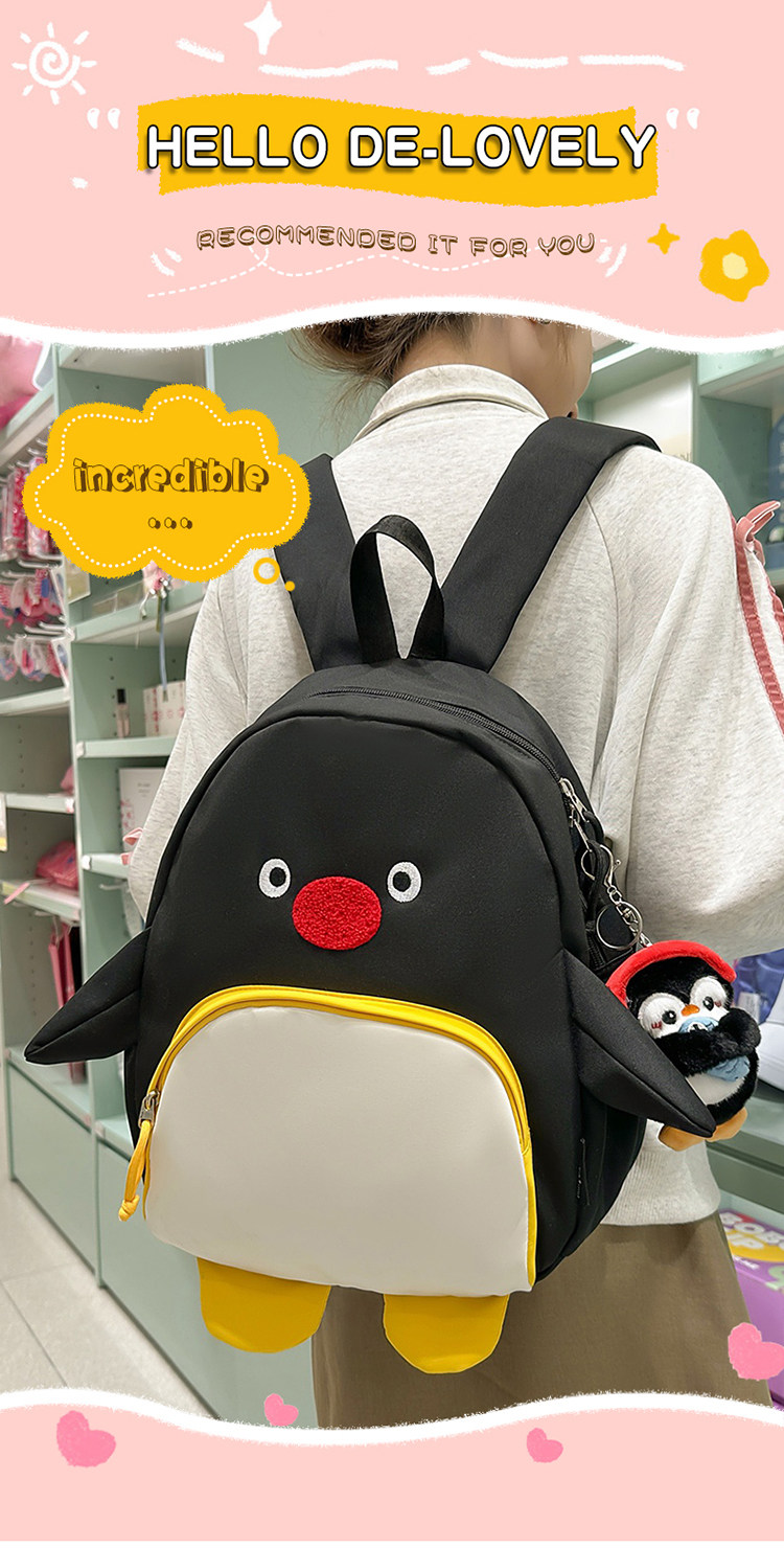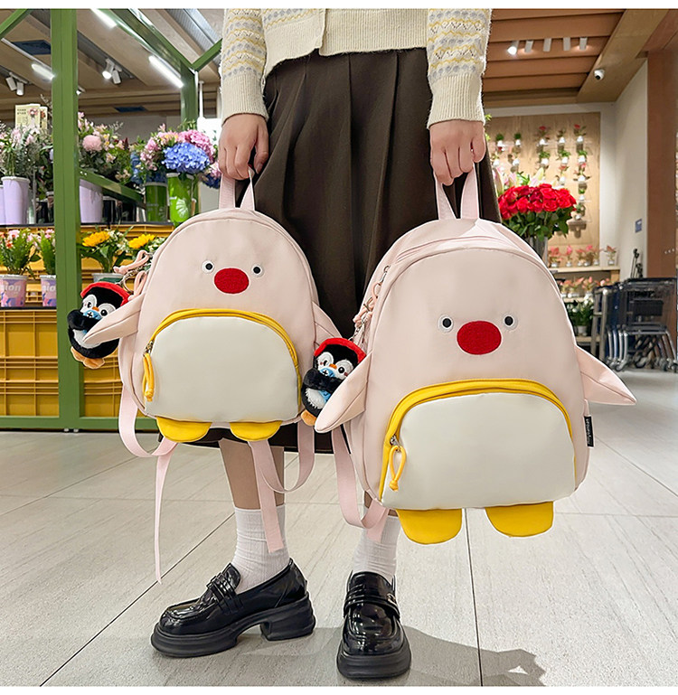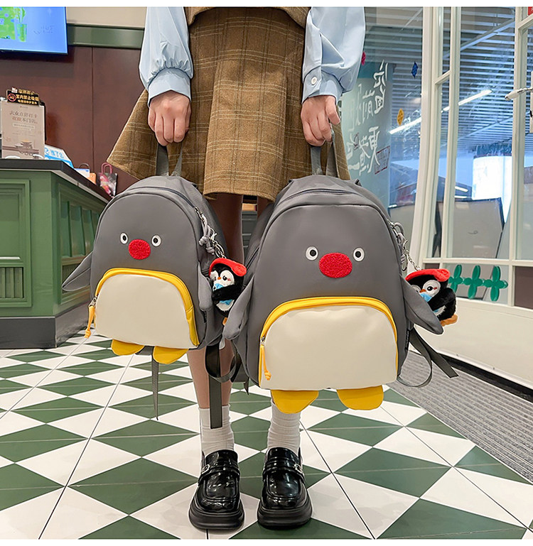 可愛卡通搞怪企鵞後後背包學生上課研學出遊書包高顔值ins兒童雙肩包