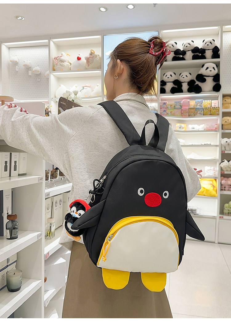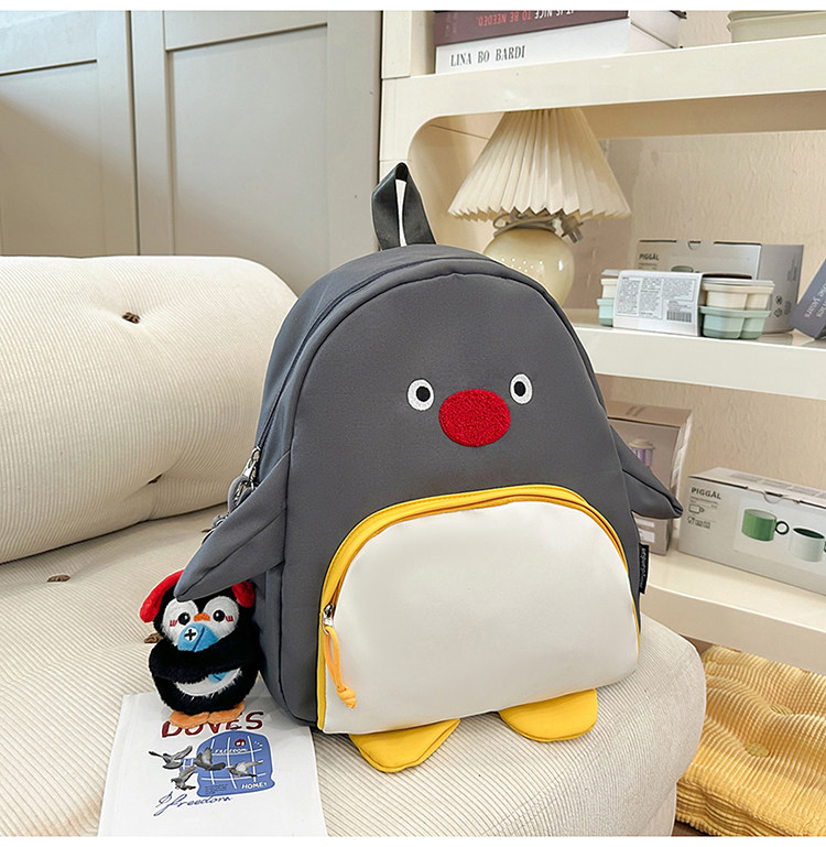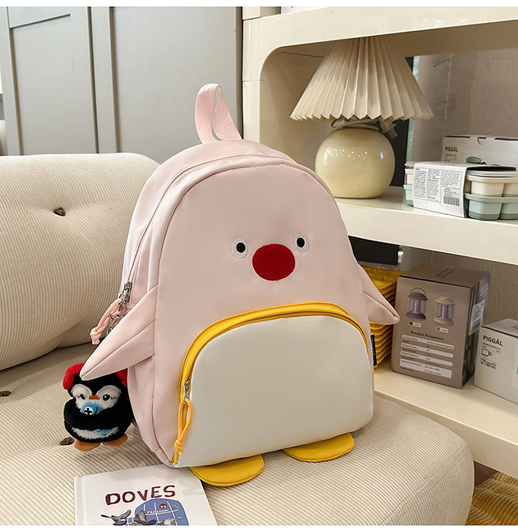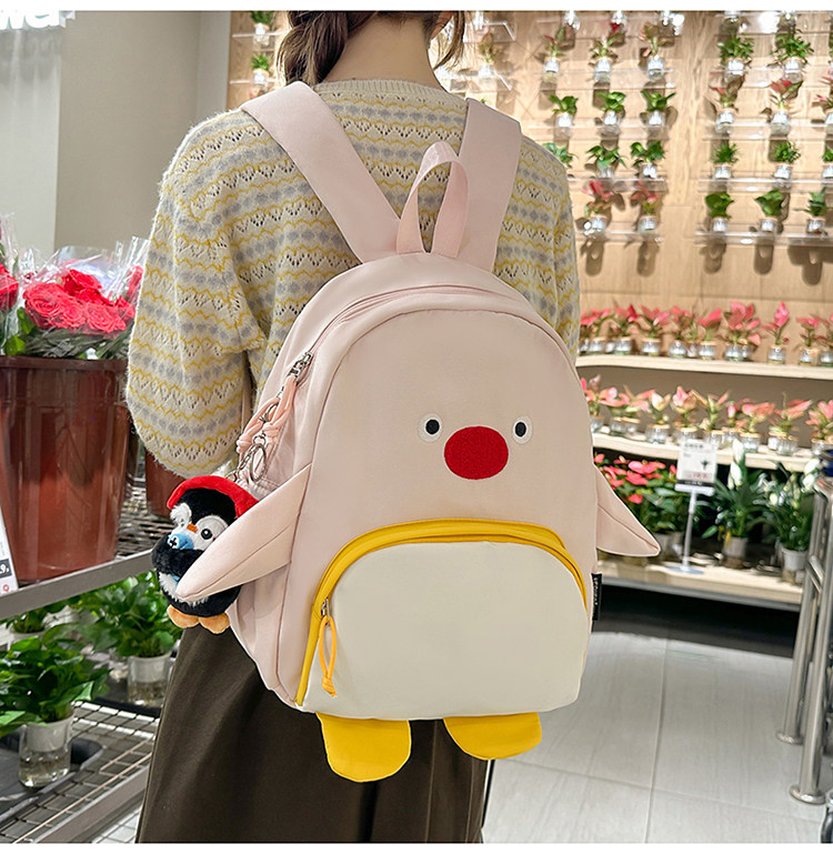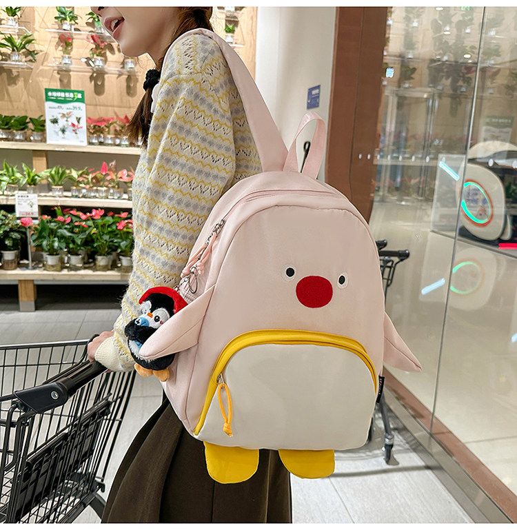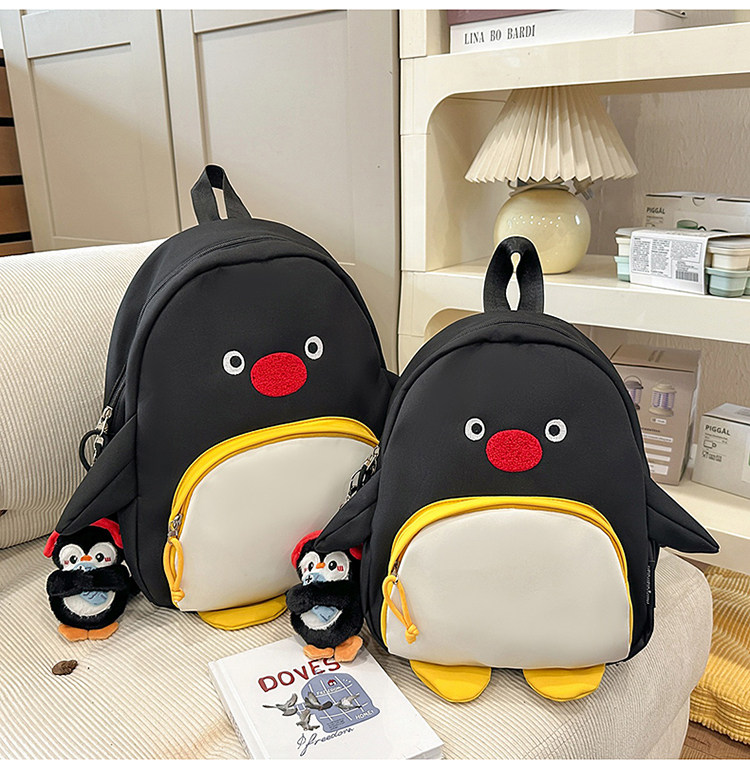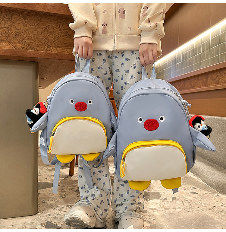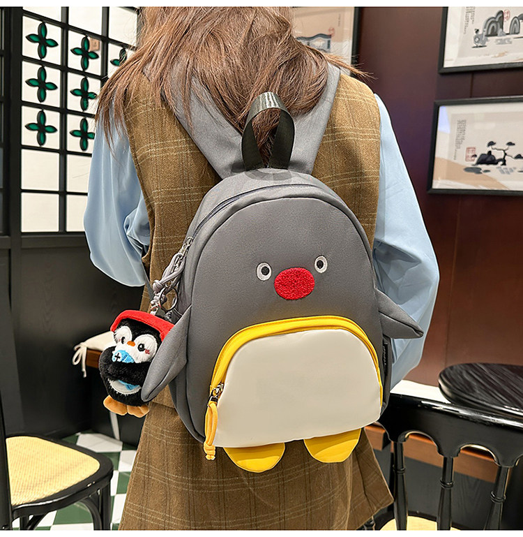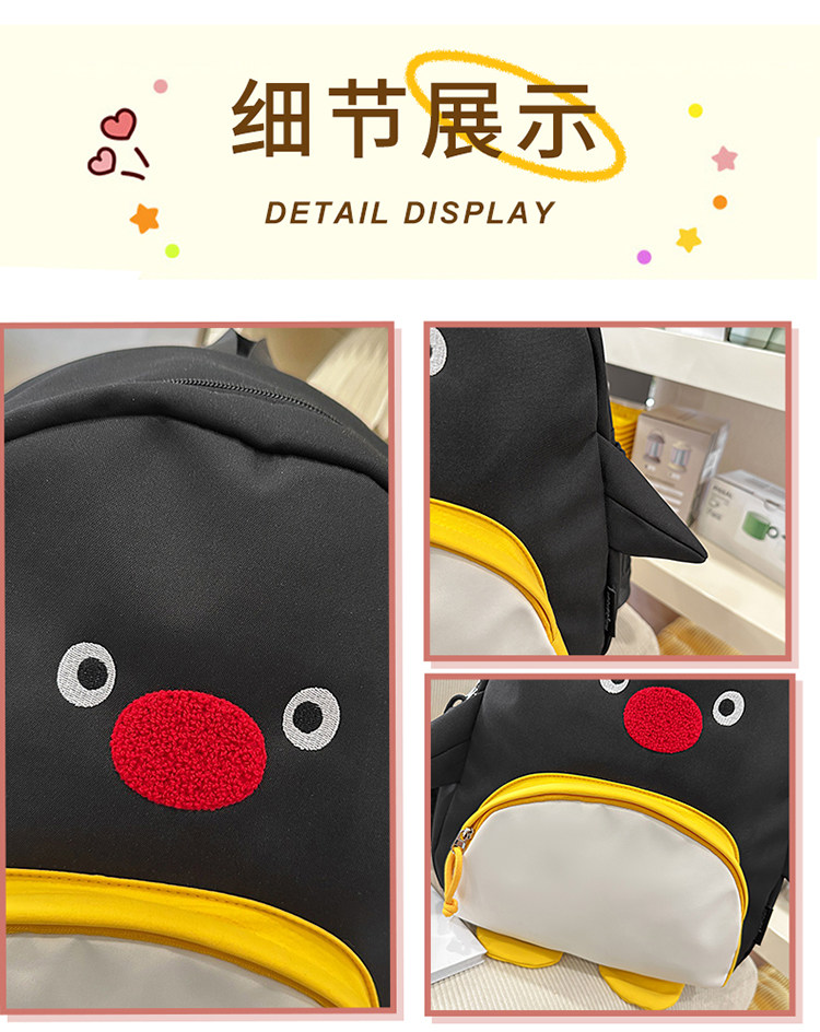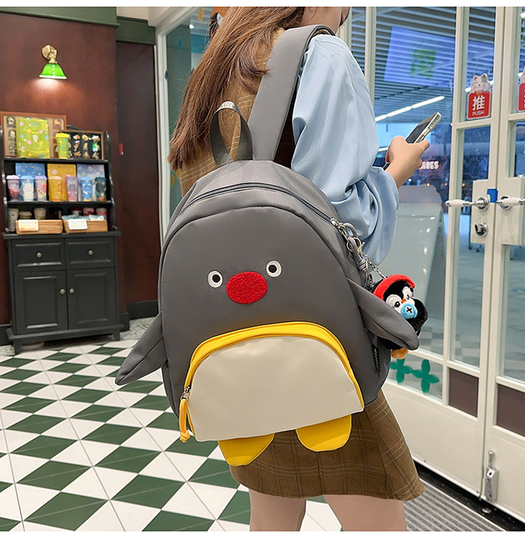 可愛卡通搞怪企鵞後後背包學生上課研學出遊書包高顔值ins兒童雙肩包