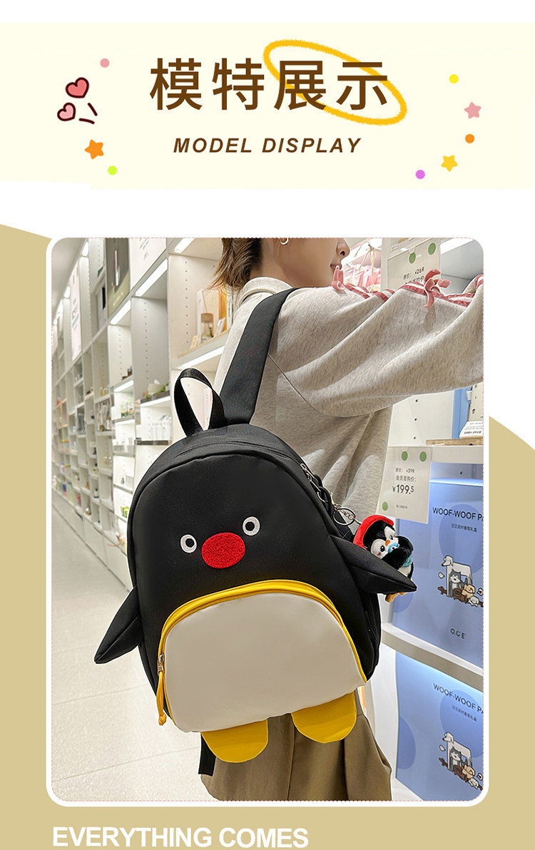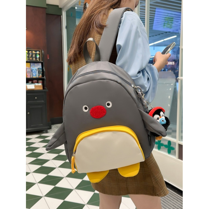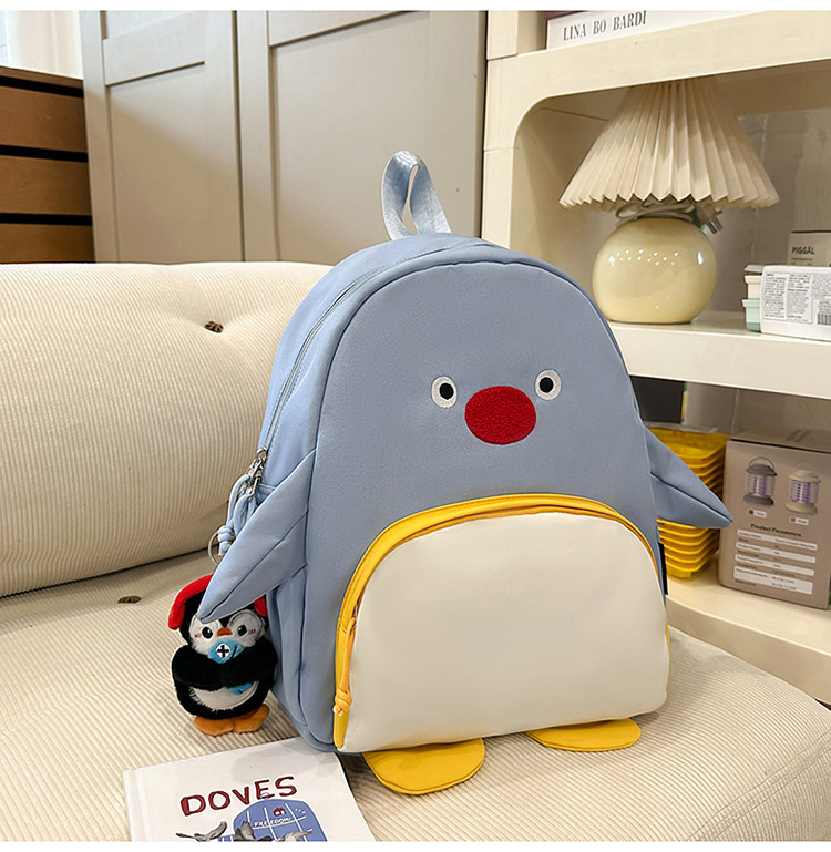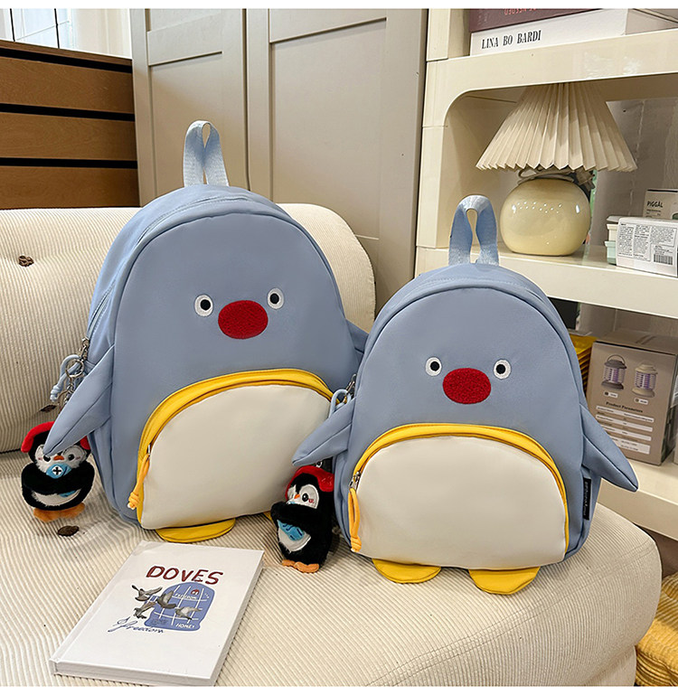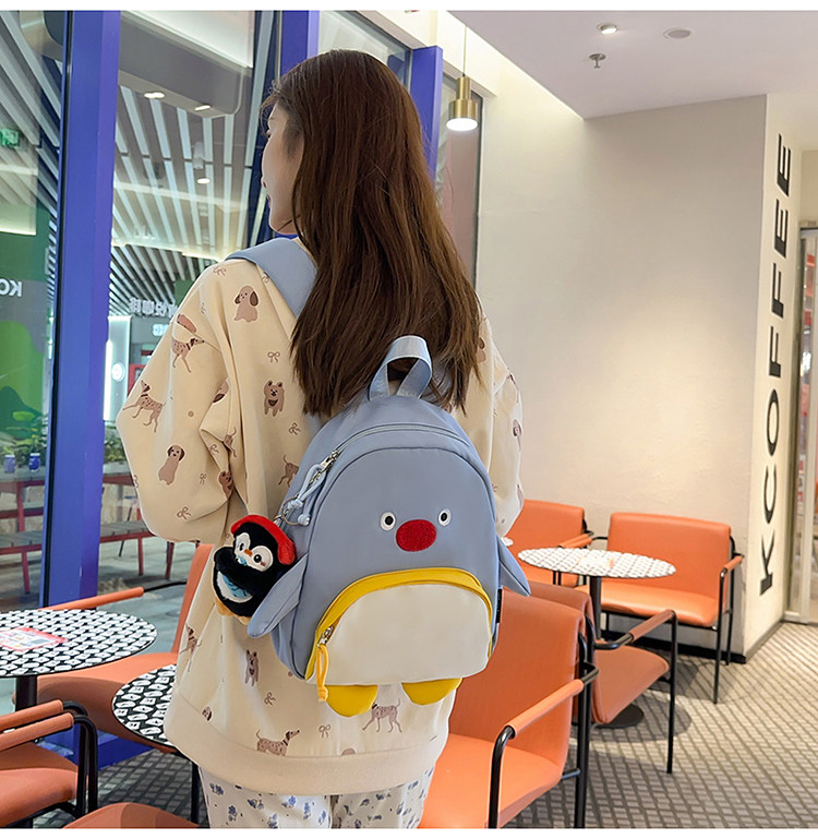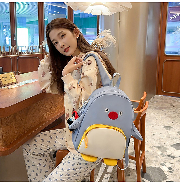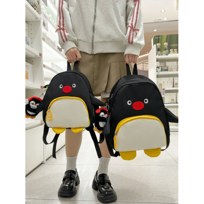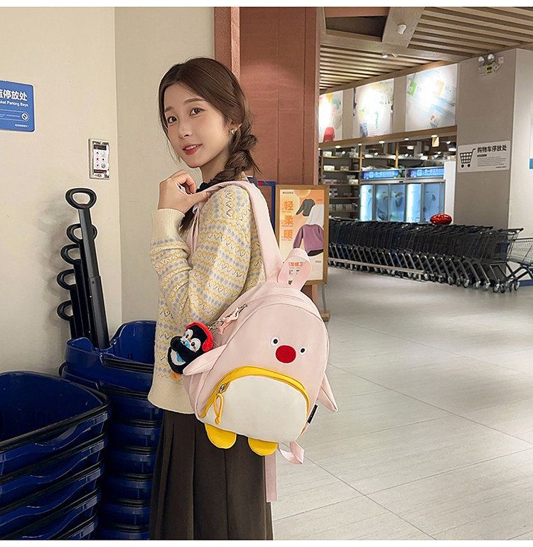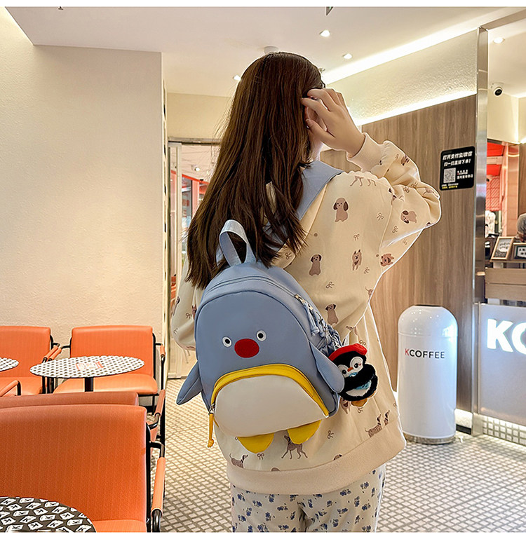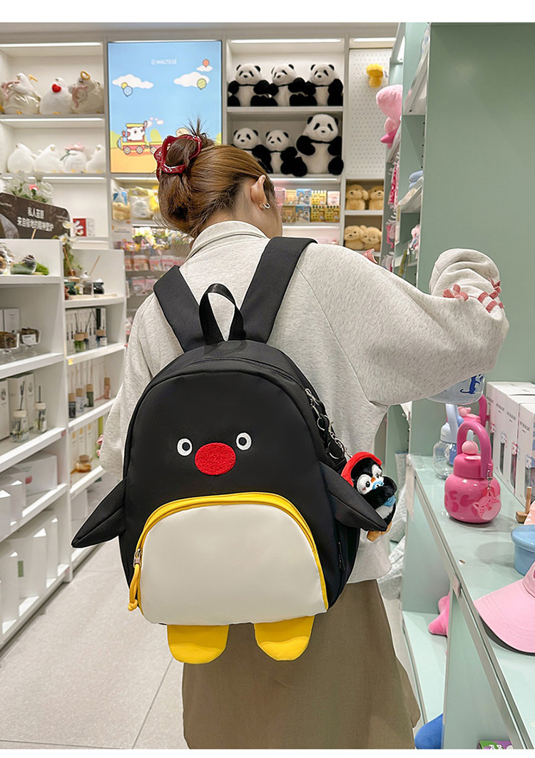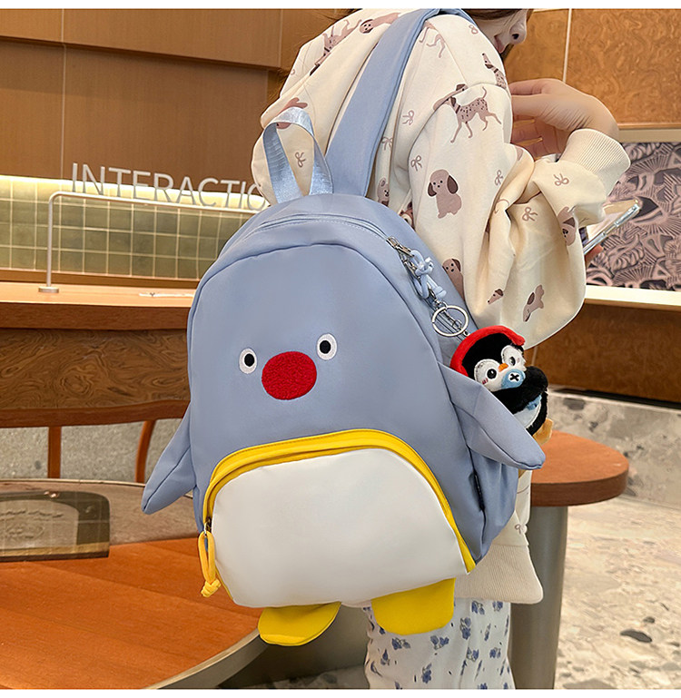 可愛卡通搞怪企鵞後後背包學生上課研學出遊書包高顔值ins兒童雙肩包