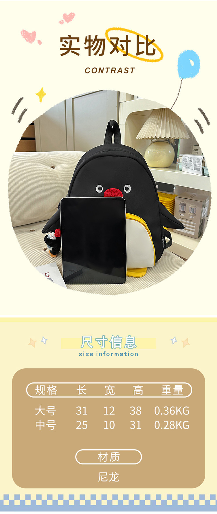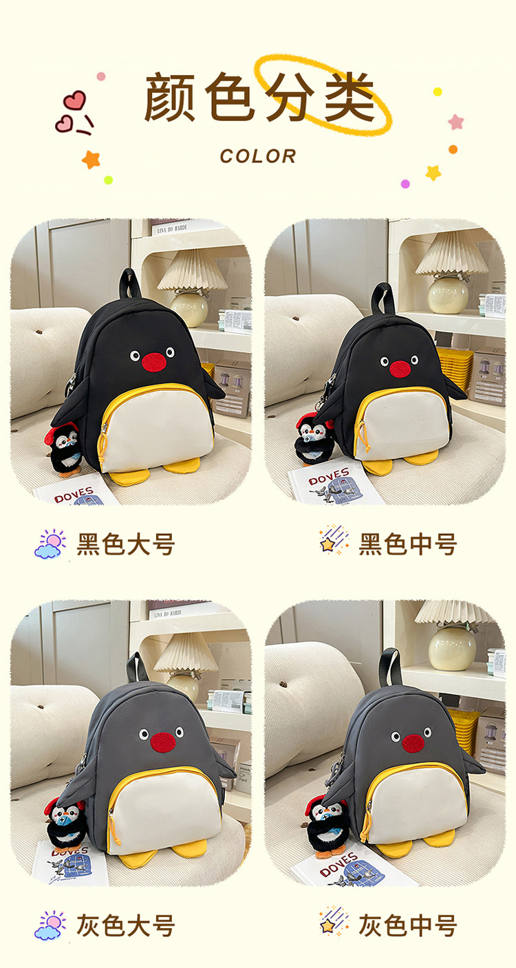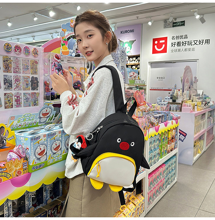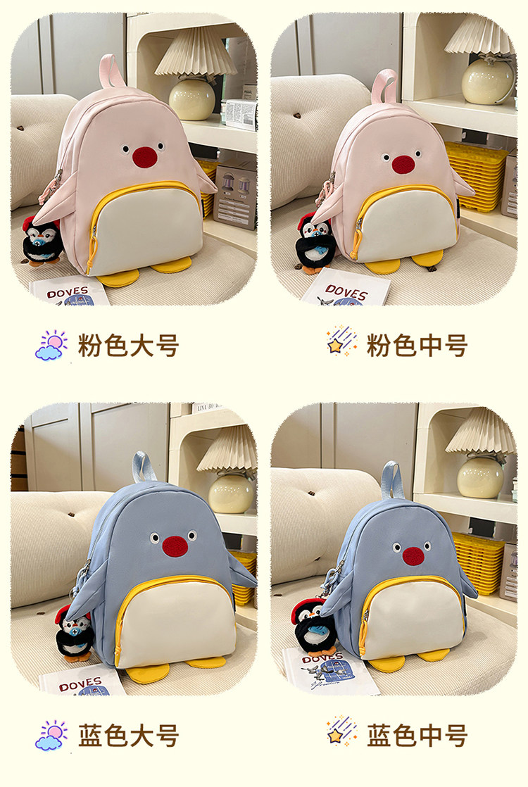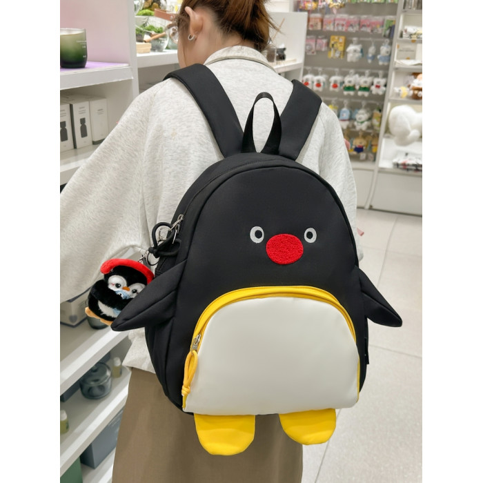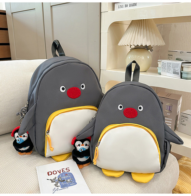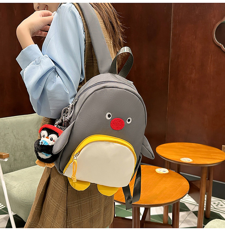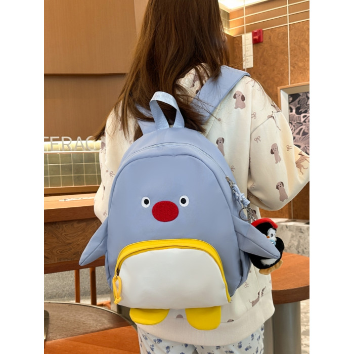 可愛卡通搞怪企鵞後後背包學生上課研學出遊書包高顔值ins兒童雙肩包