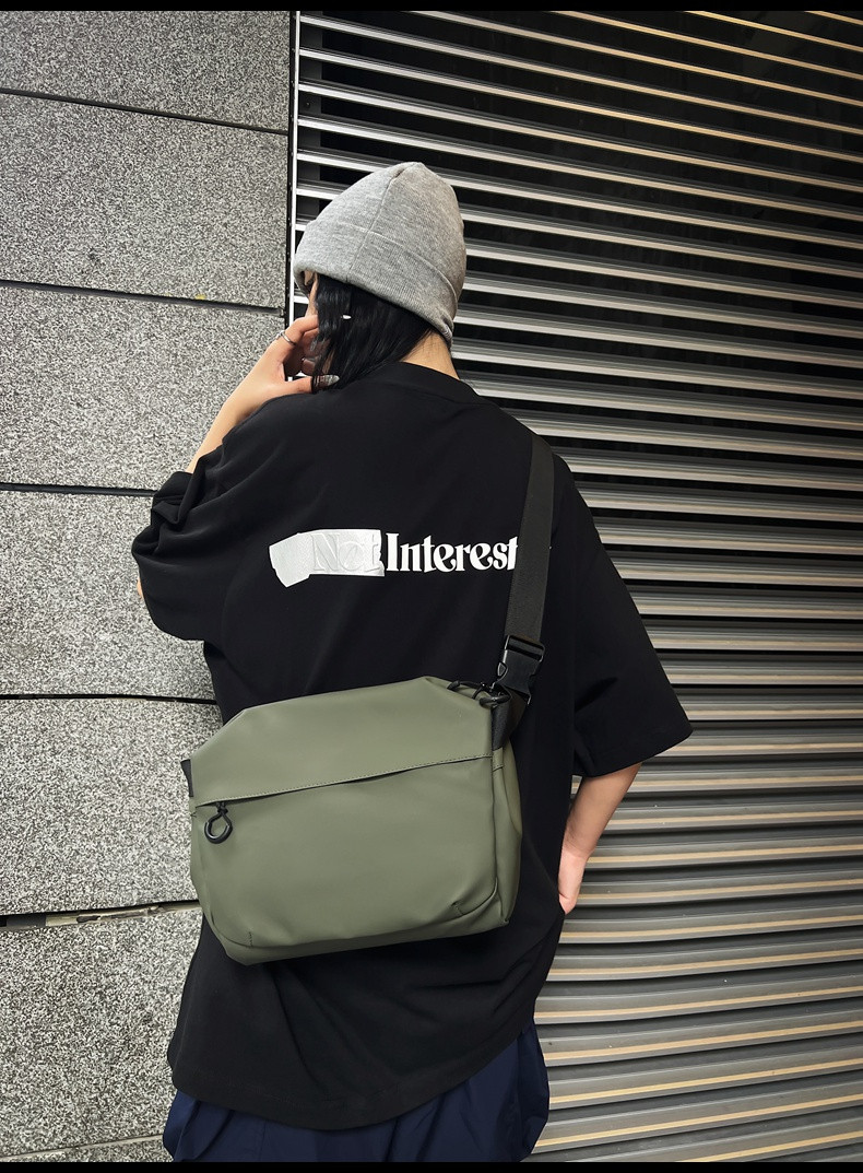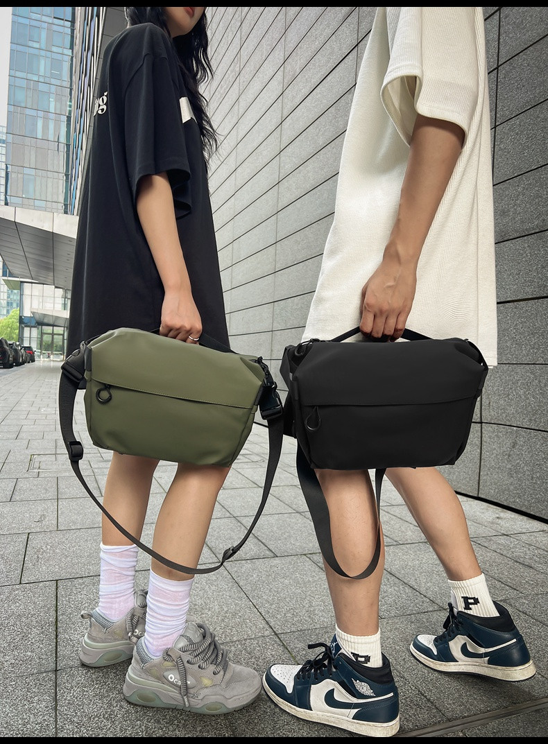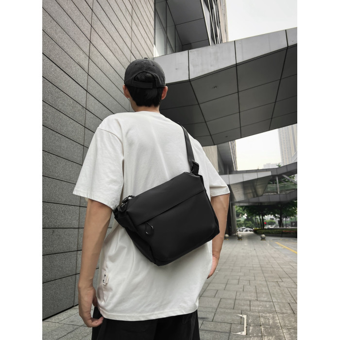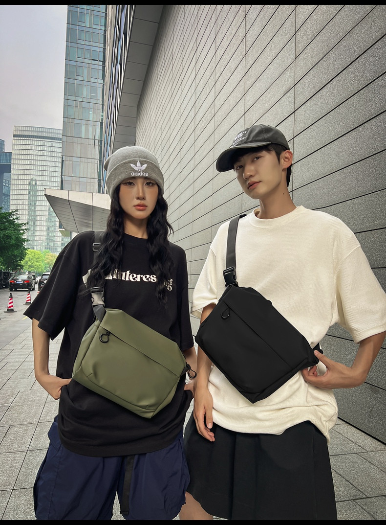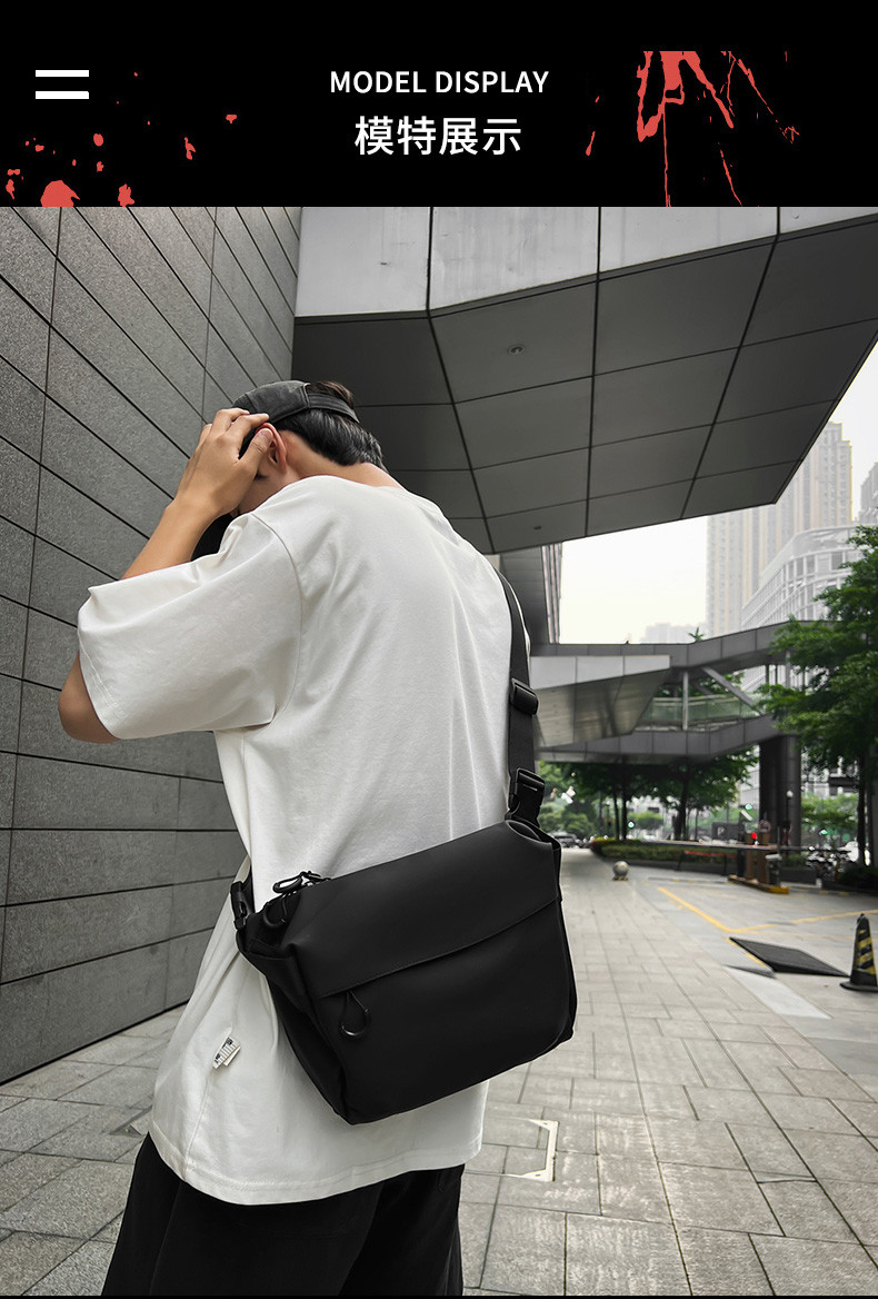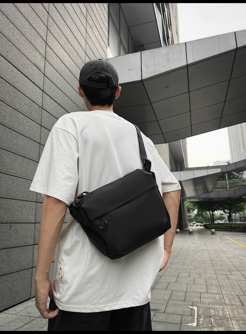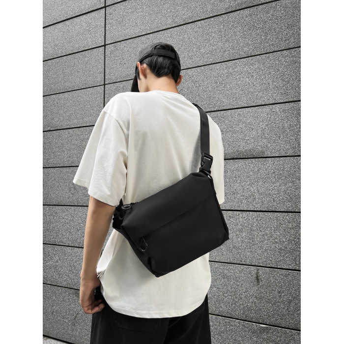 日系港風純色無印斜後後背包男簡約郵差包運動輕便防水胸包工裝單肩包