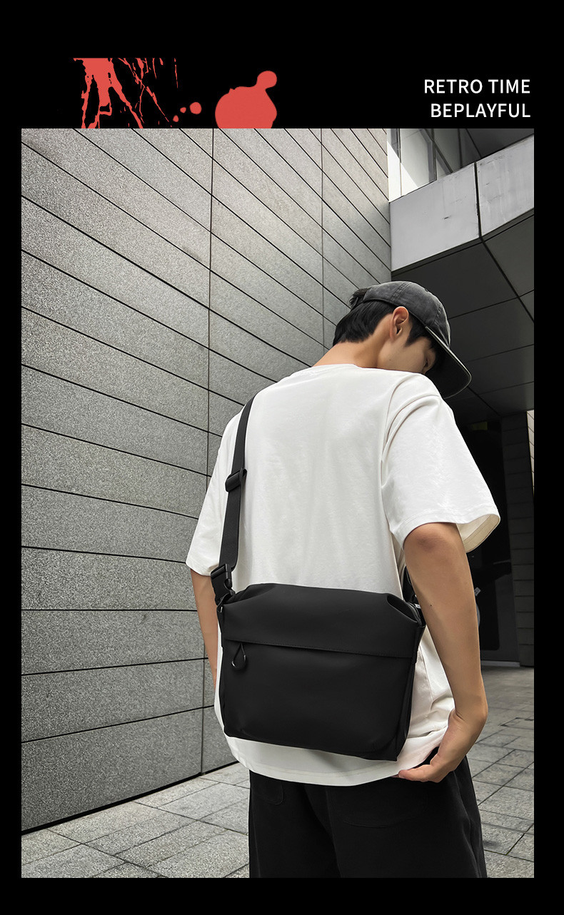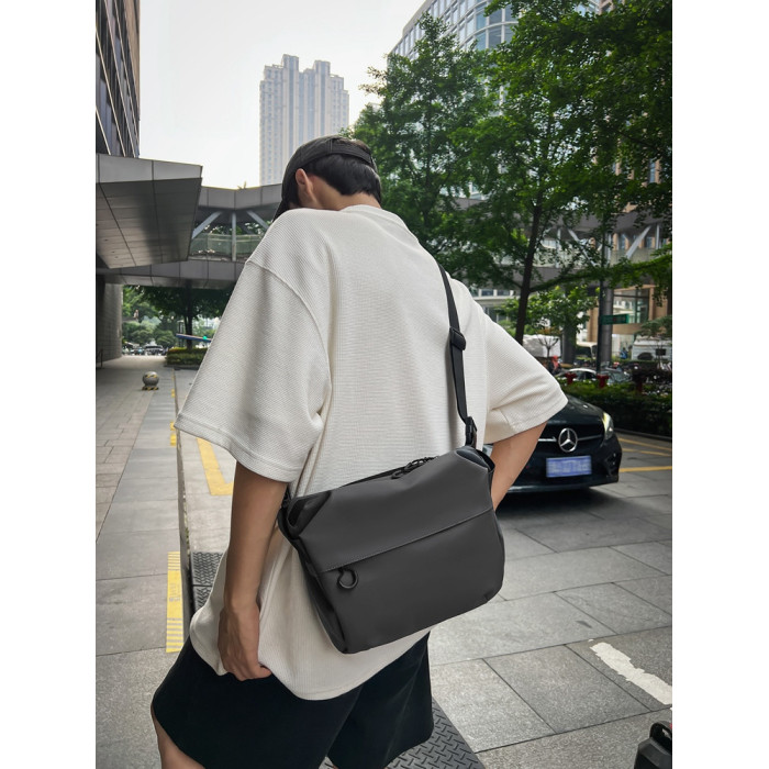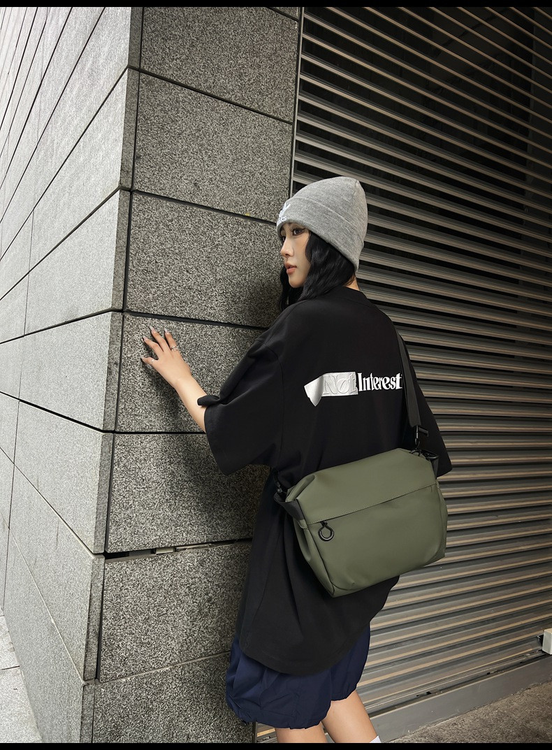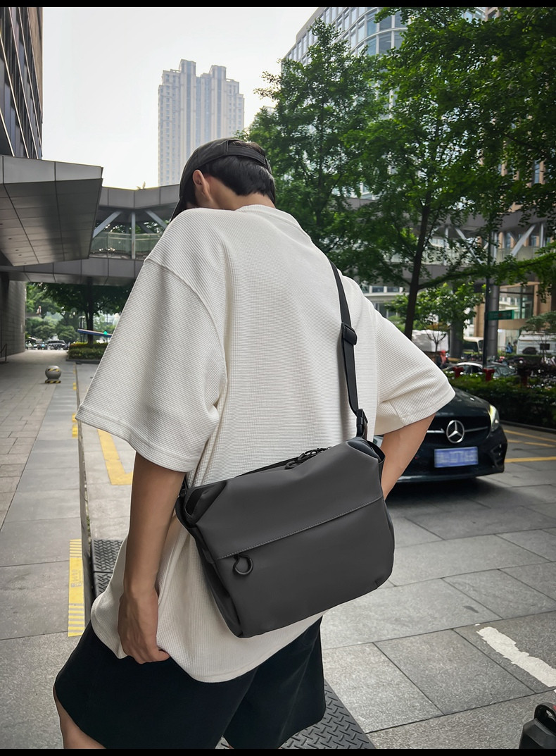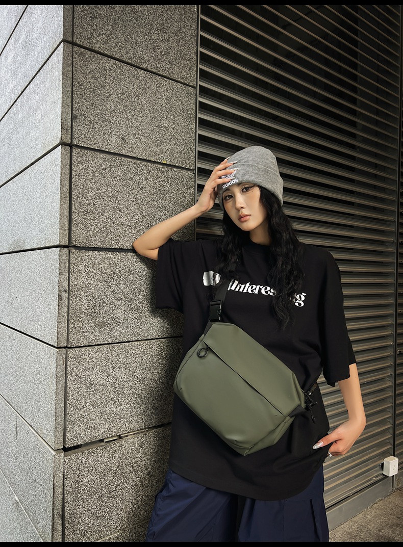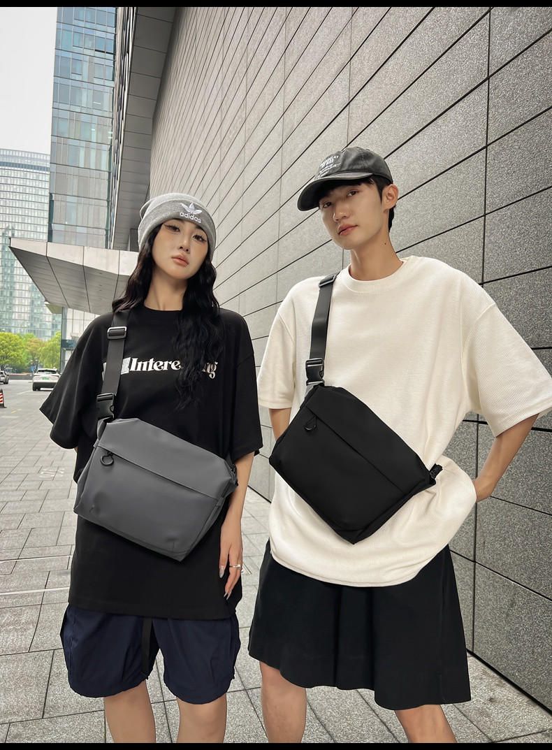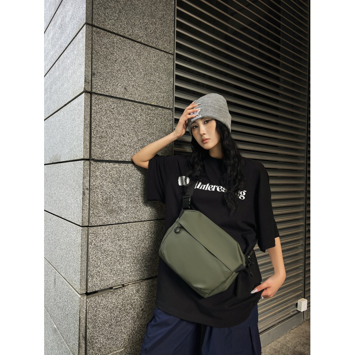 日系港風純色無印斜後後背包男簡約郵差包運動輕便防水胸包工裝單肩包