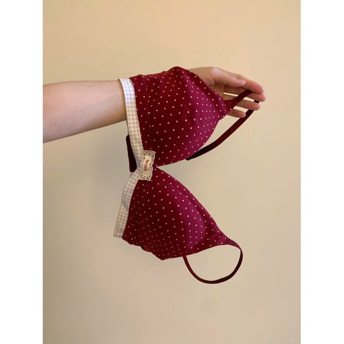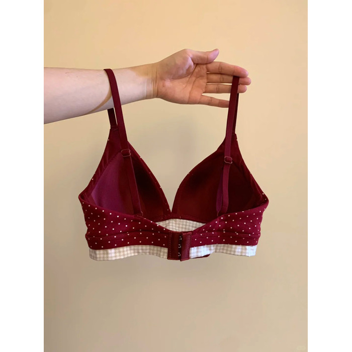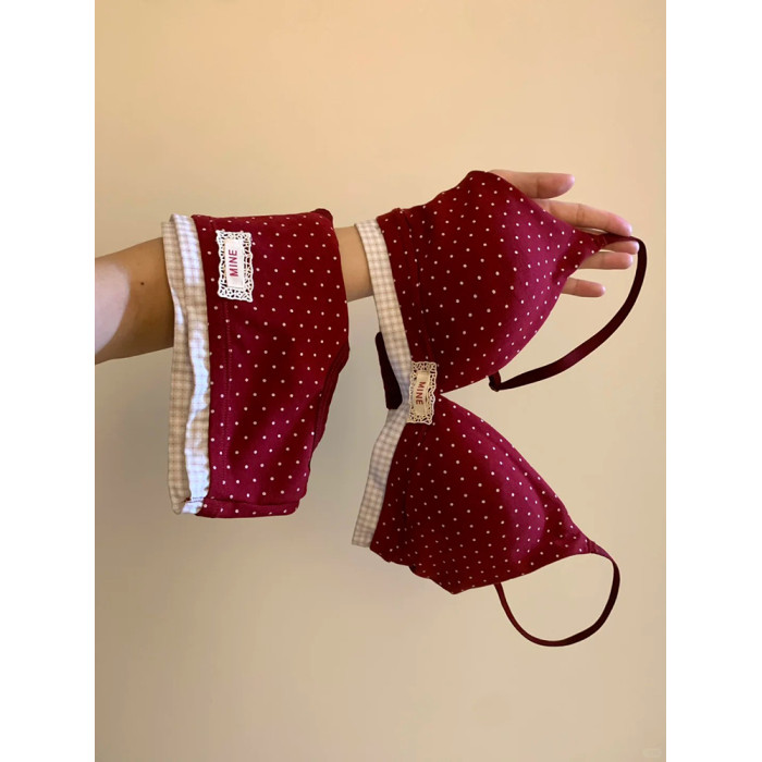 波點可愛本命年紅色內衣內褲套裝女小胸薄款結婚新娘文胸馬年禮物