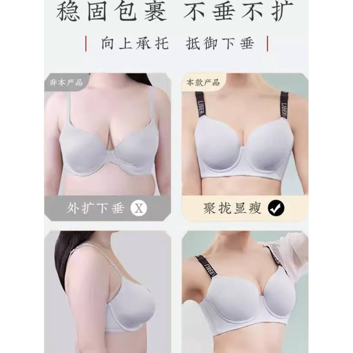 調整寬肩帶無痕上托硬鋼圈內衣女大碼顯小防下垂收副乳全罩杯文胸