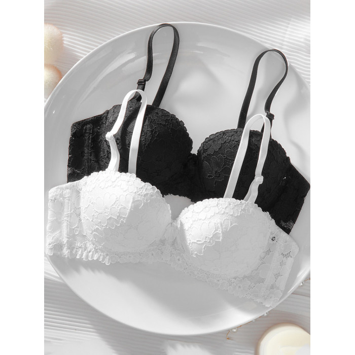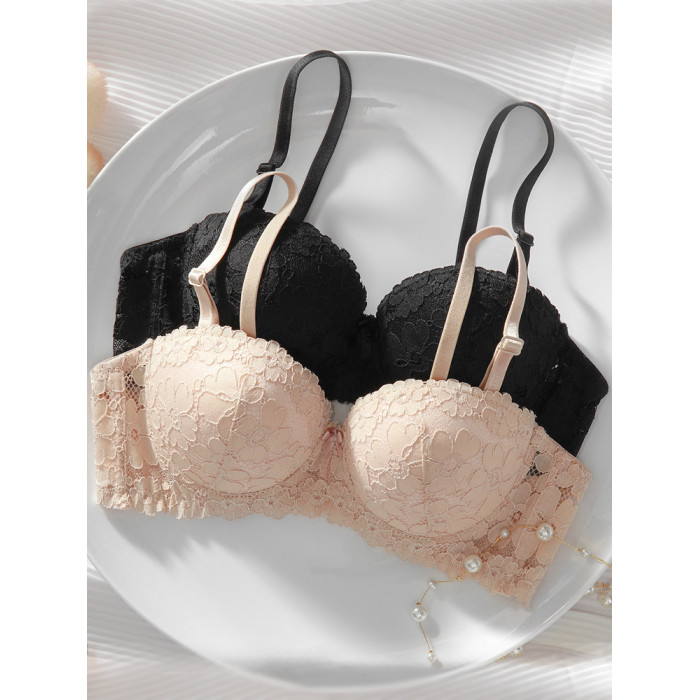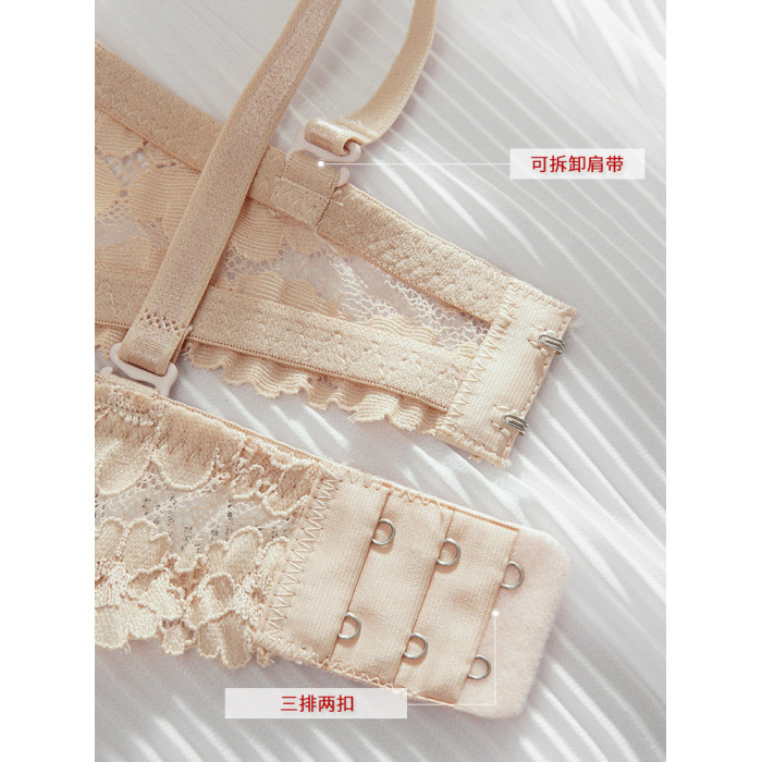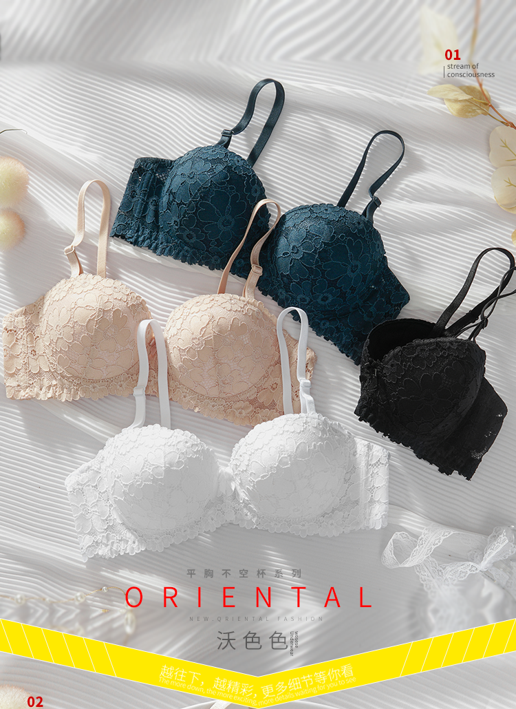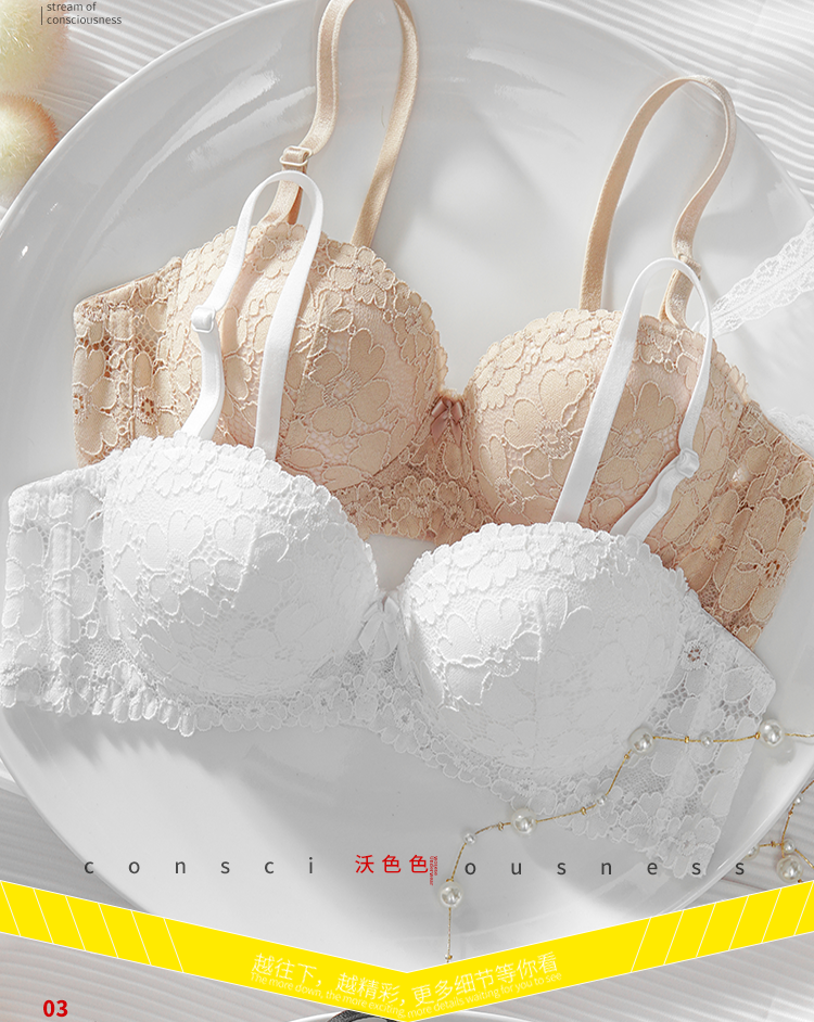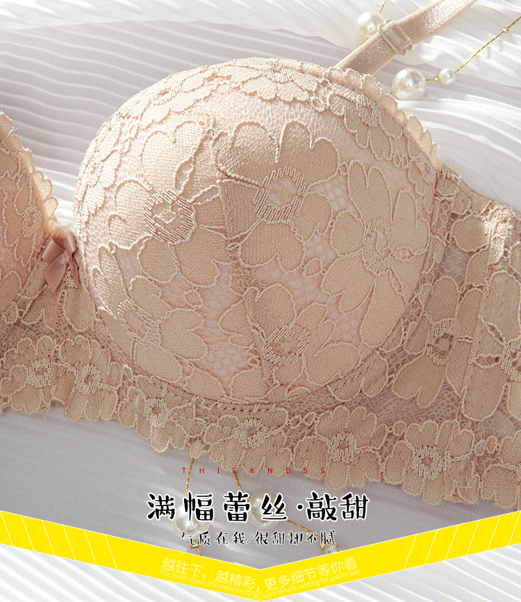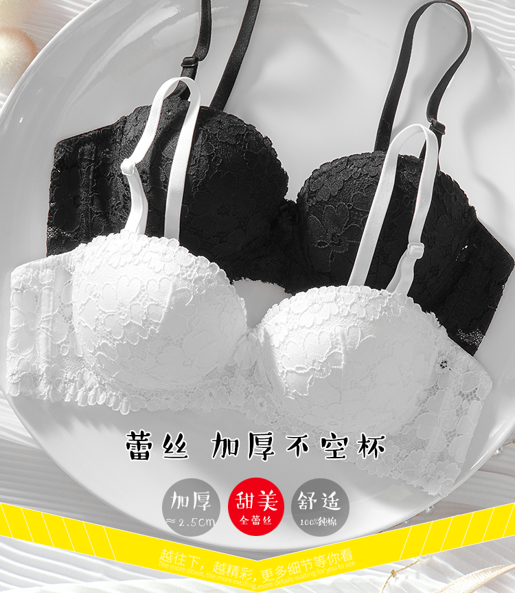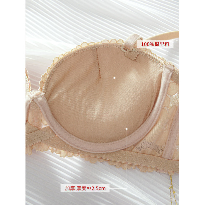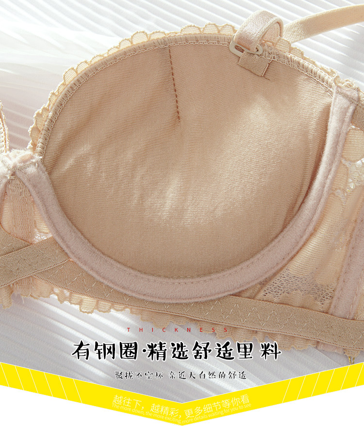 小胸內衣女半杯聚攏不空杯防上滑1/2杯有鋼圈蕾絲純棉文胸兩排釦