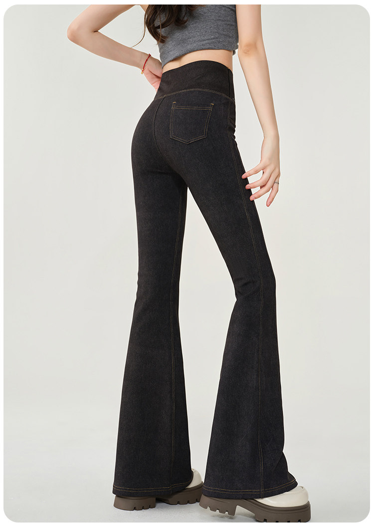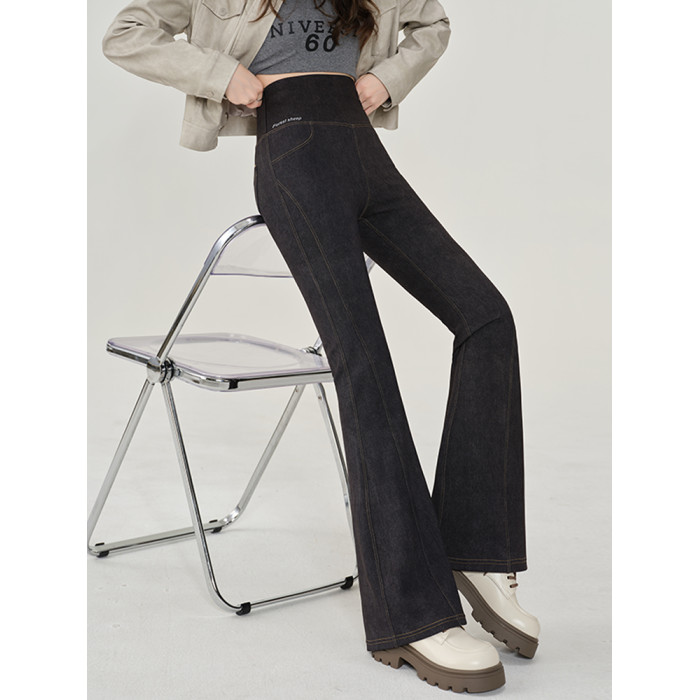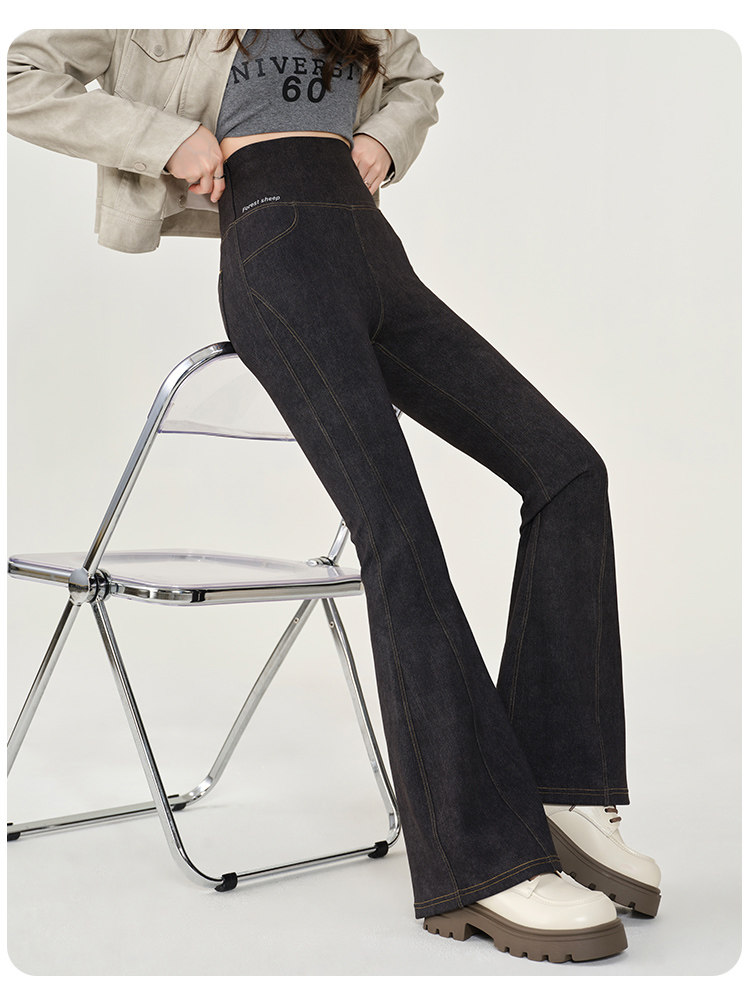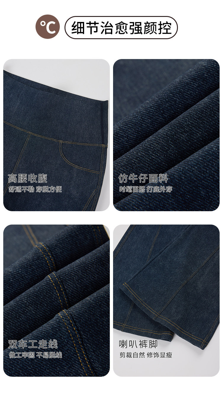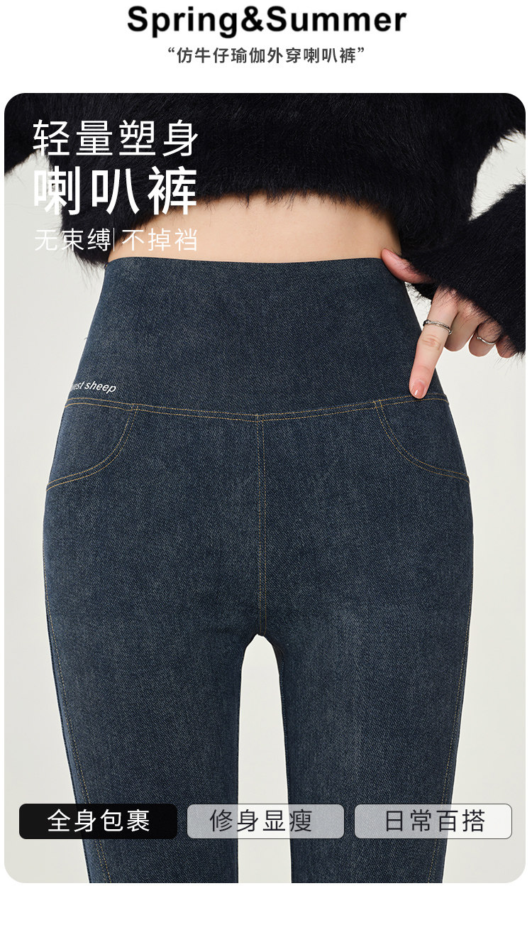 仿牛仔微喇鯊魚褲女外穿2024秋新款高腰顯瘦喇叭馬蹄瑜珈打底褲