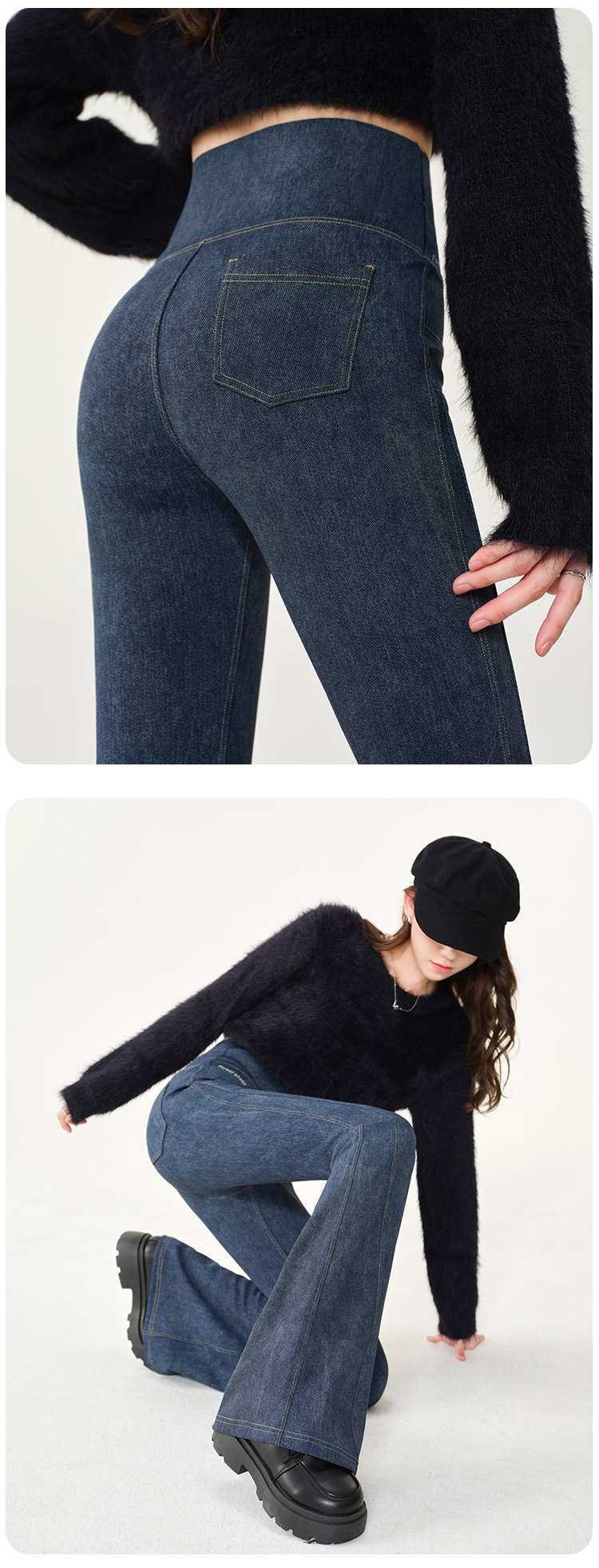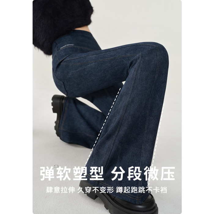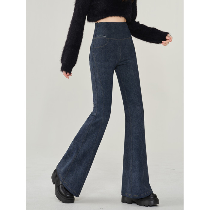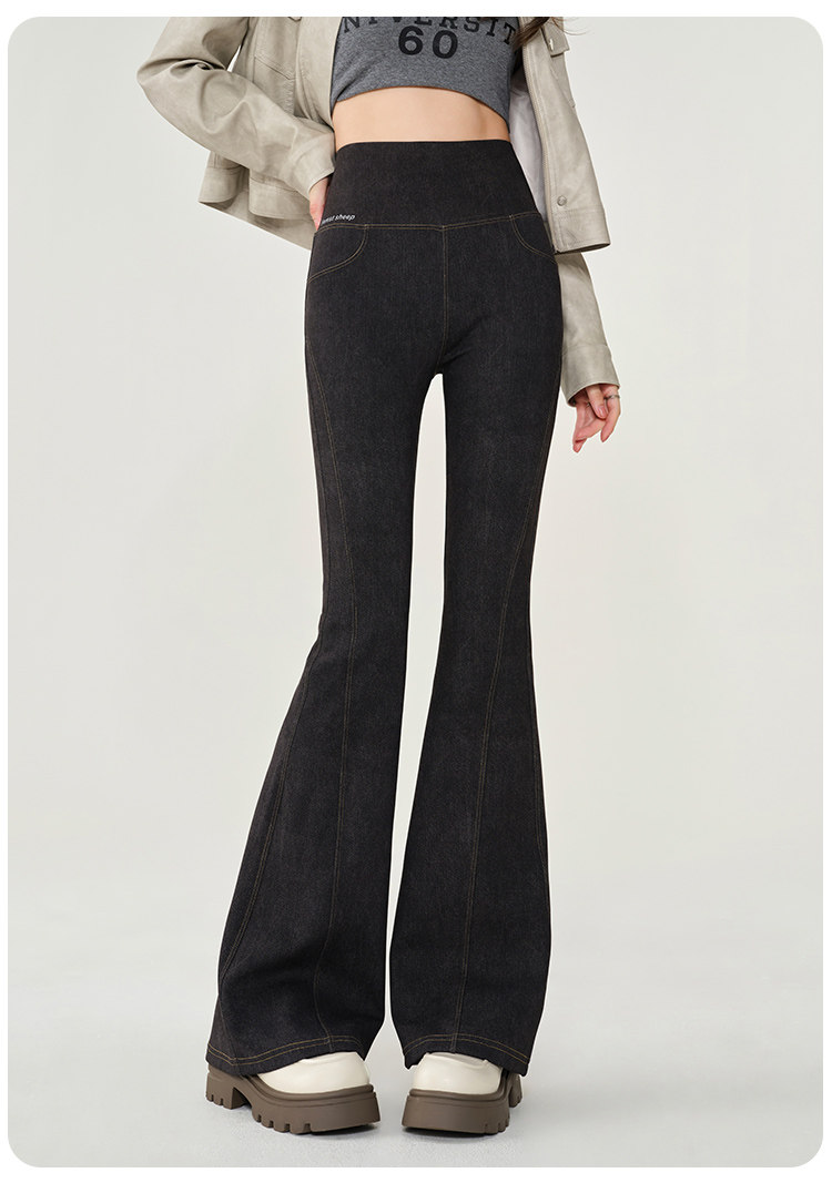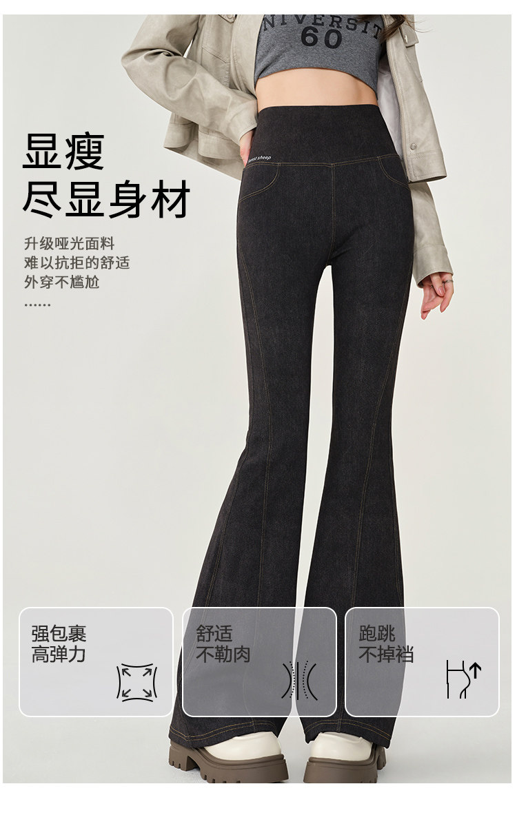 仿牛仔微喇鯊魚褲女外穿2024秋新款高腰顯瘦喇叭馬蹄瑜珈打底褲
