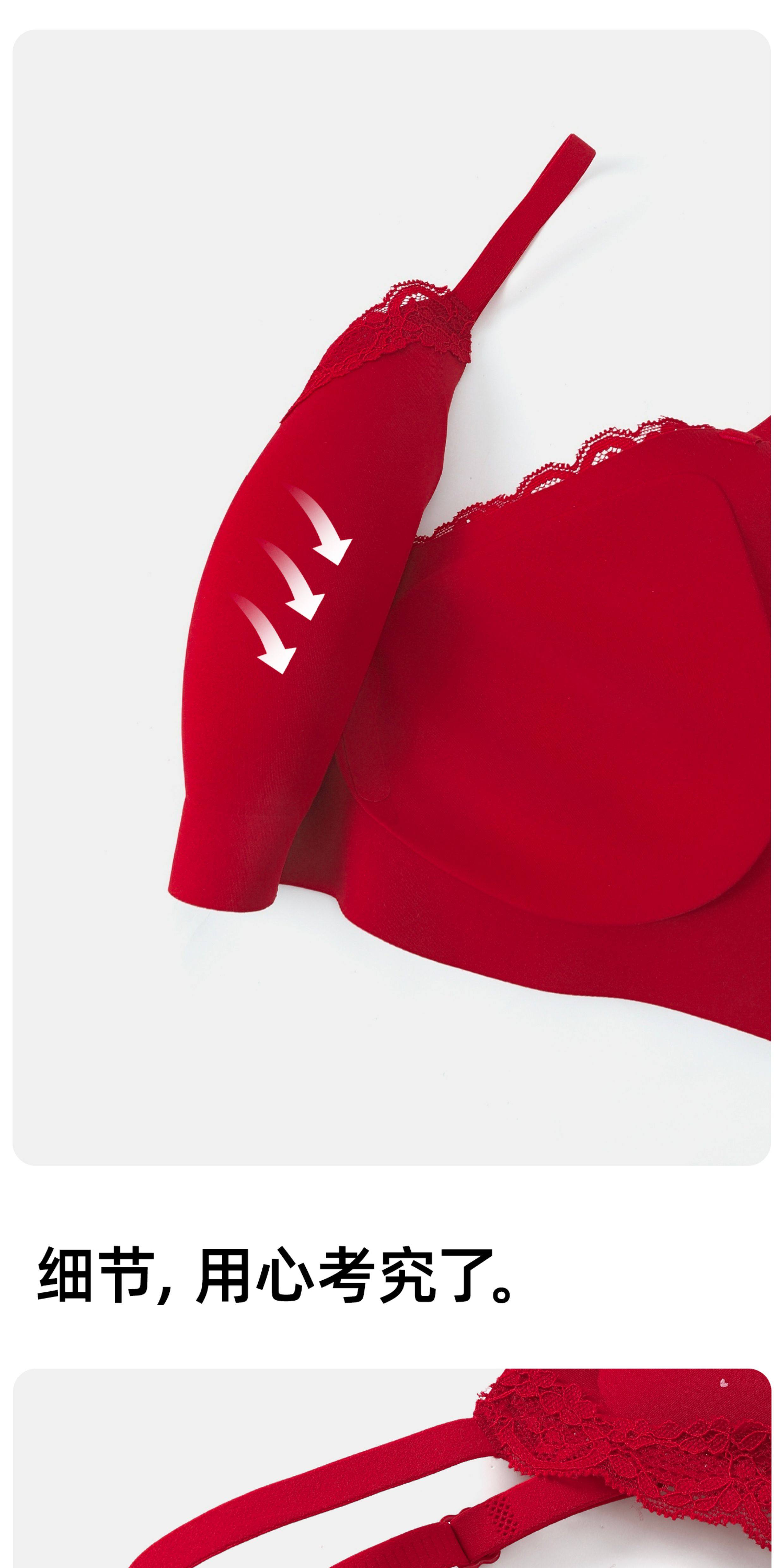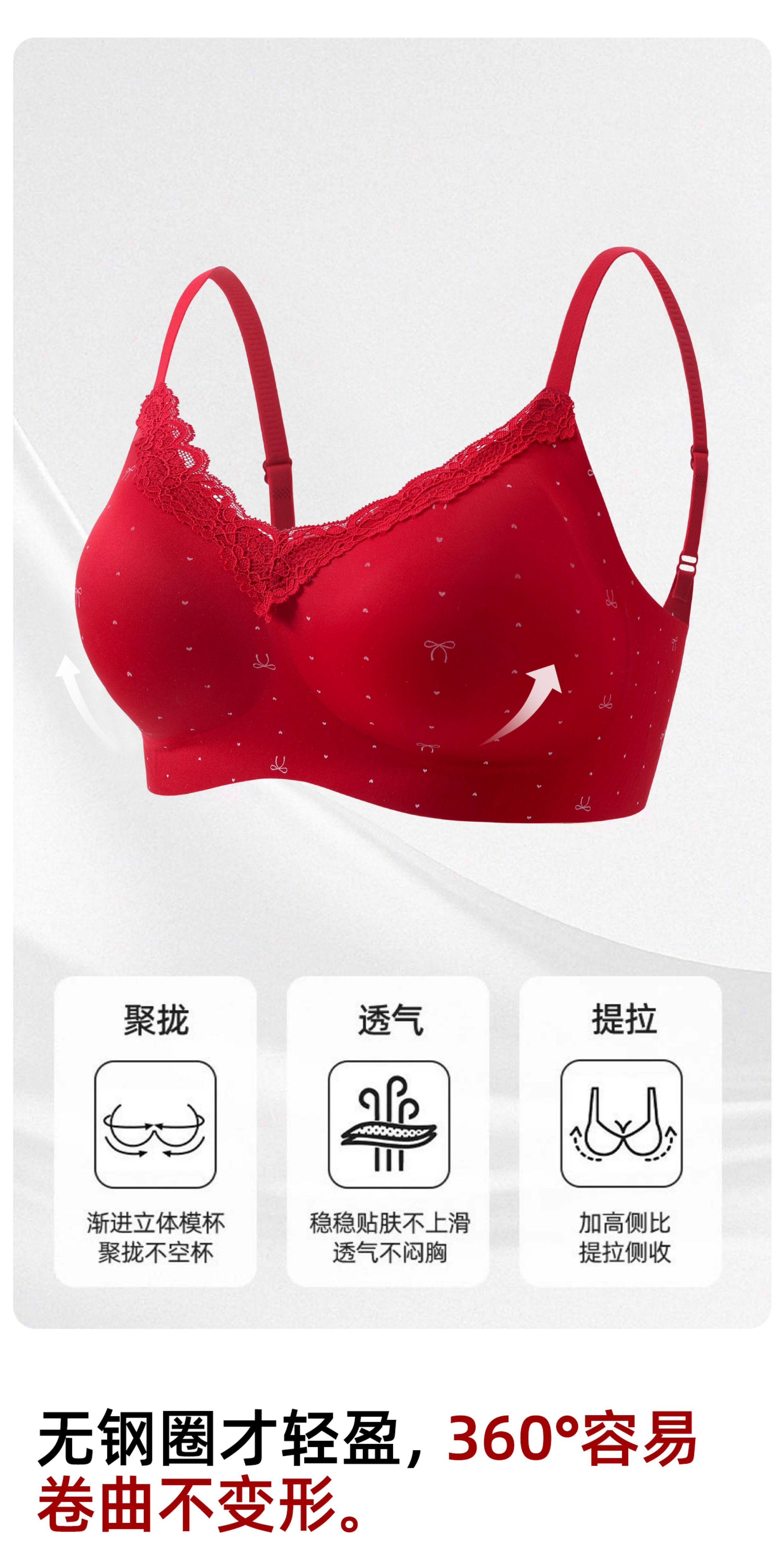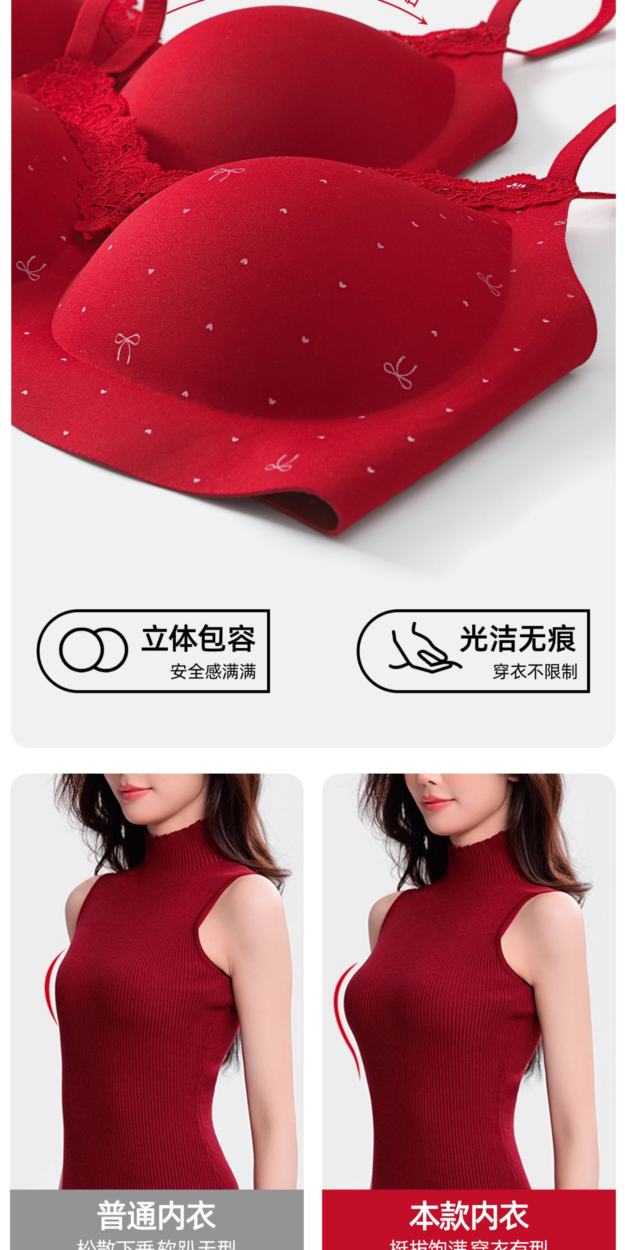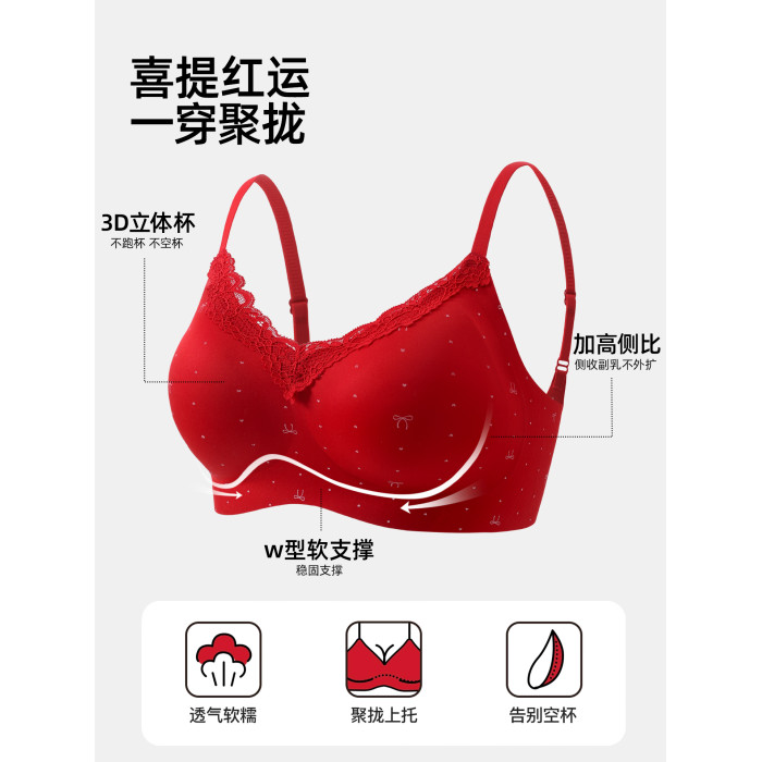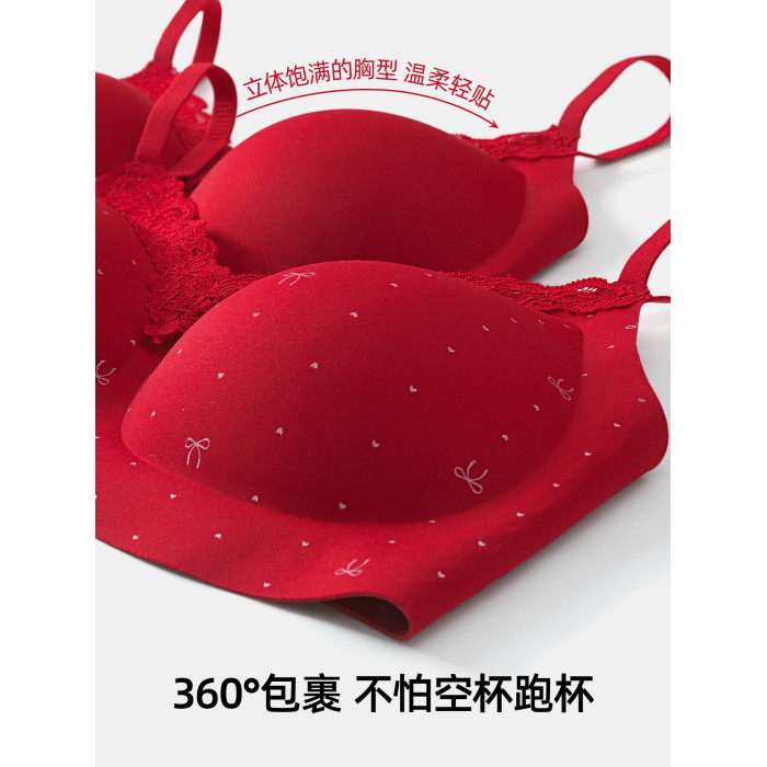 紅色內衣套裝內褲女小胸聚攏本命年無痕2026新款馬年蕾絲結婚新娘