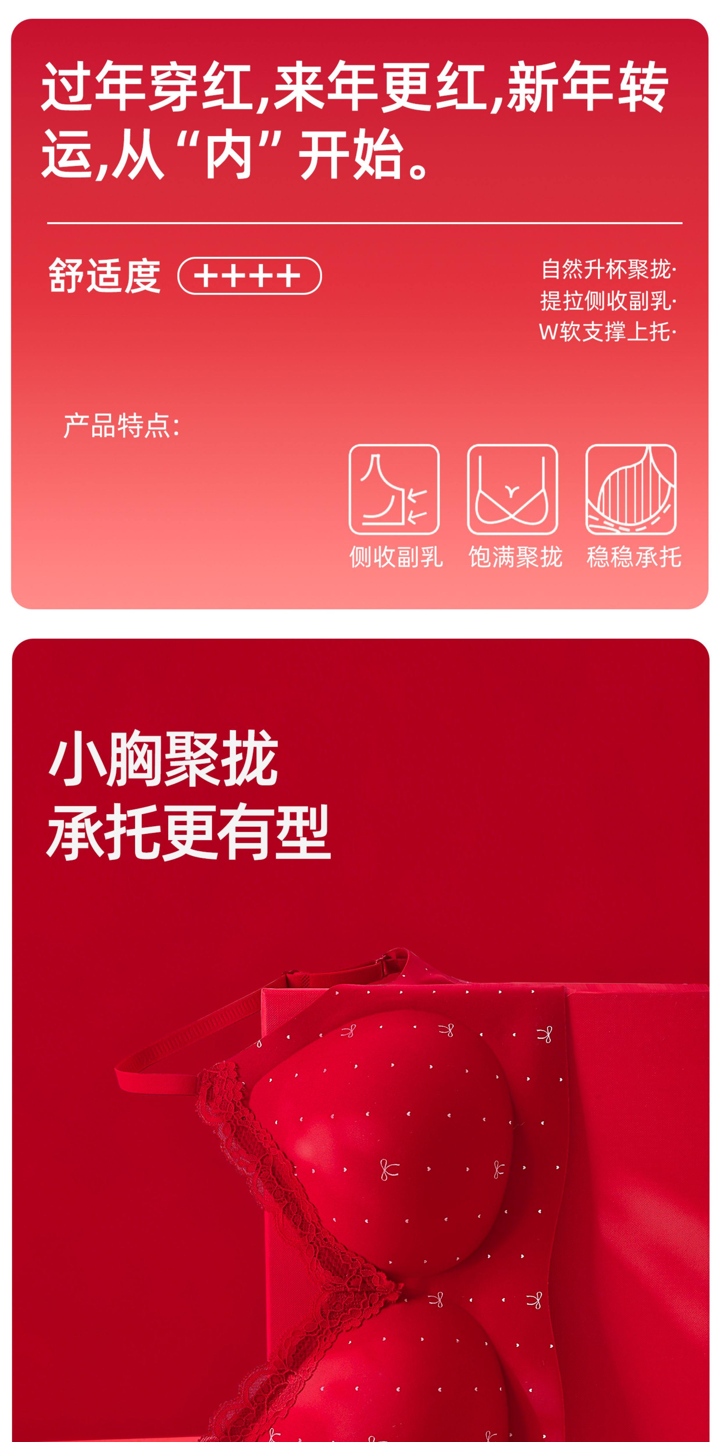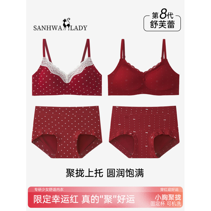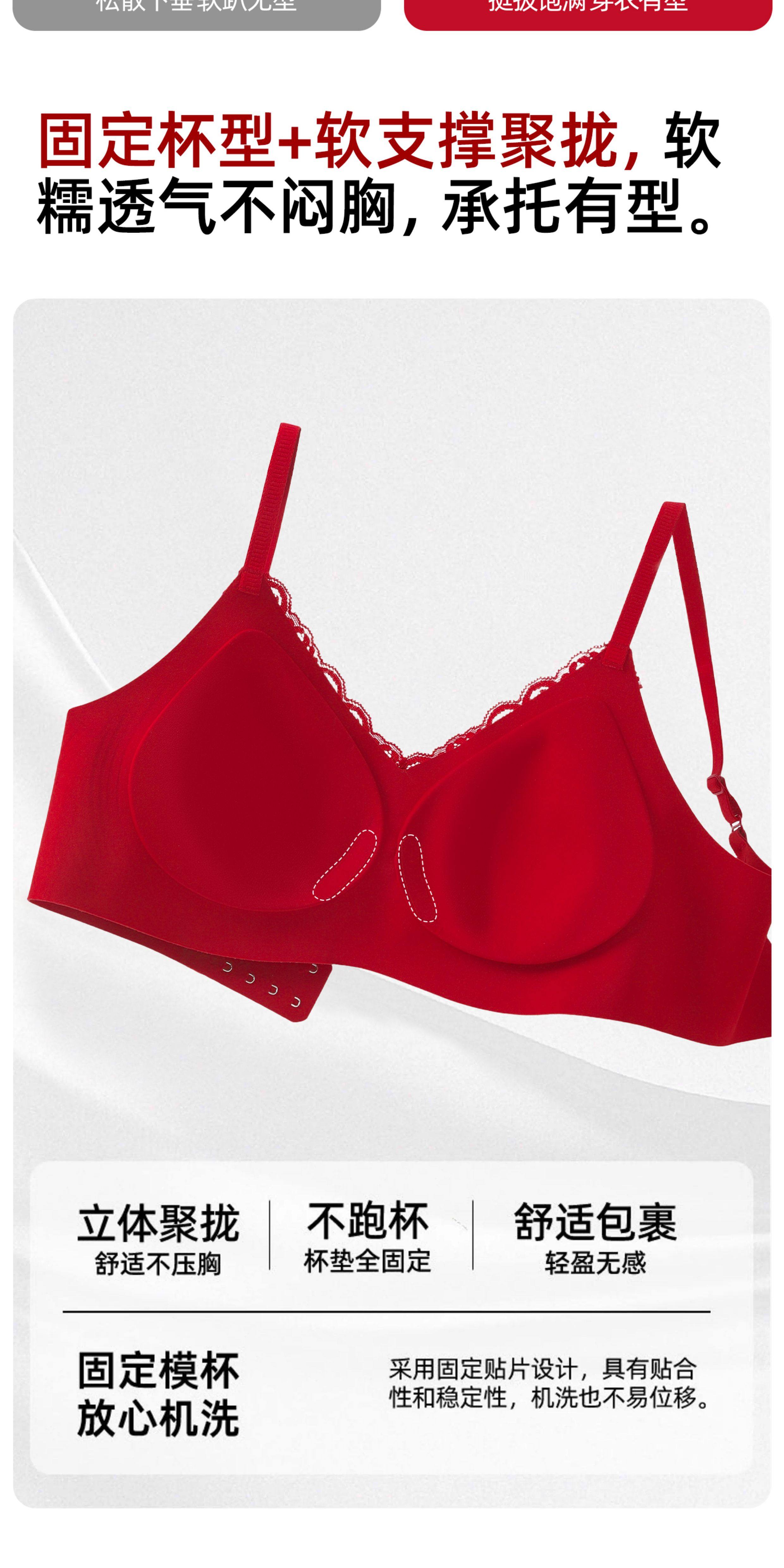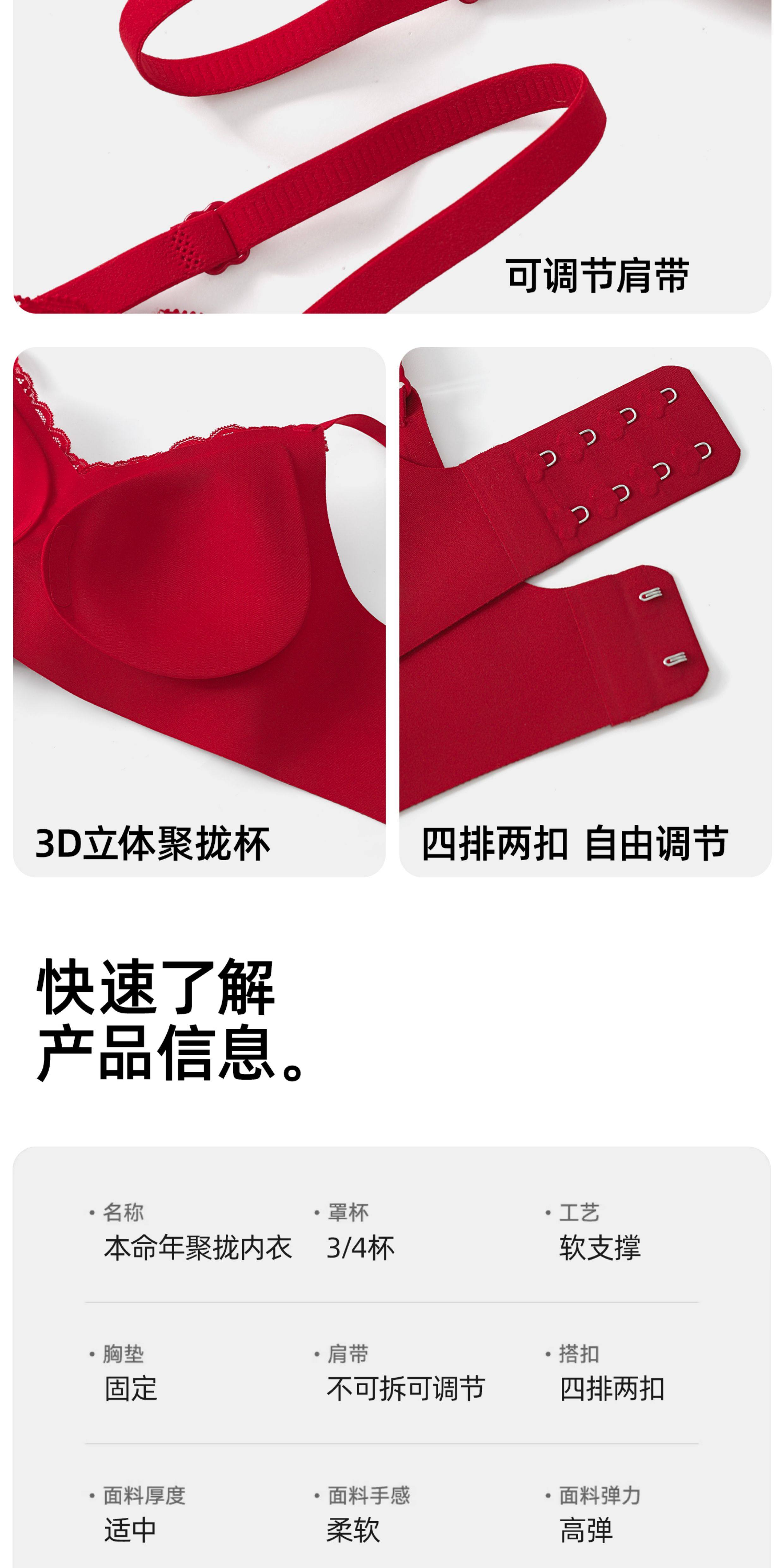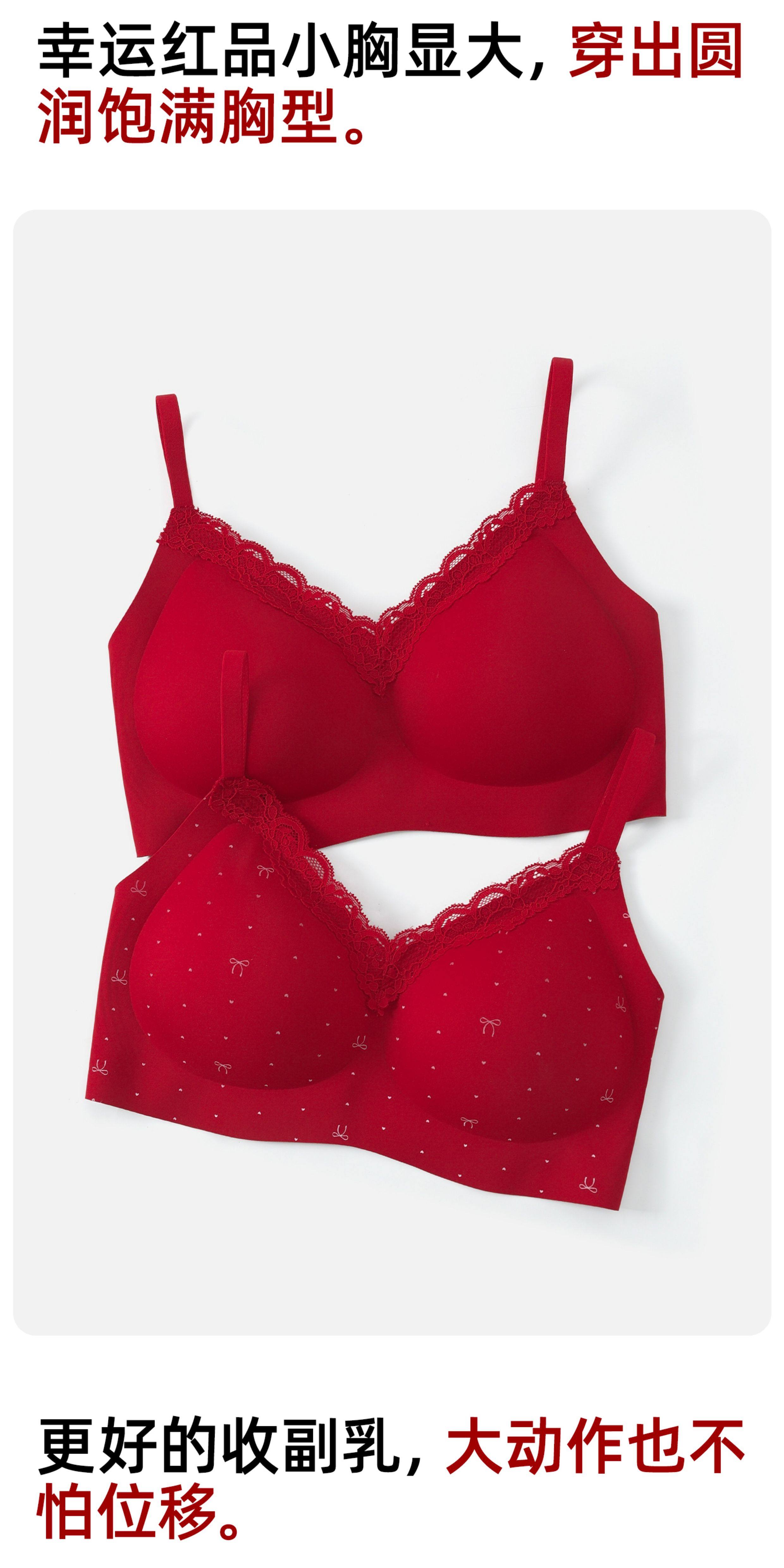 紅色內衣套裝內褲女小胸聚攏本命年無痕2026新款馬年蕾絲結婚新娘