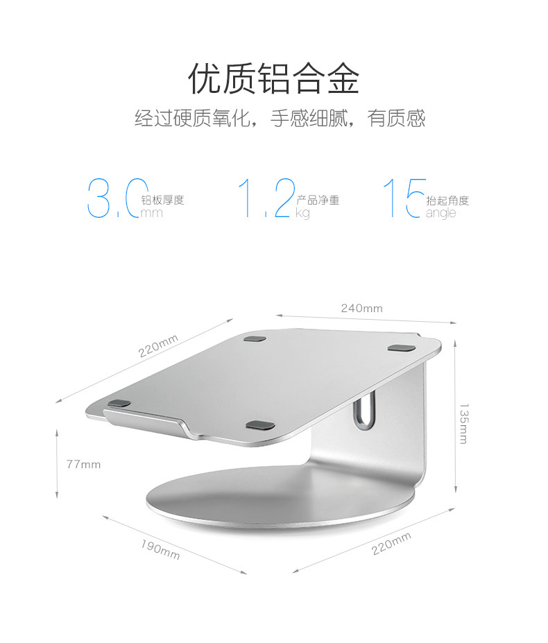 埃普筆電支架鋁合金macbook桌面旋轉增高托架電腦手提散熱底座