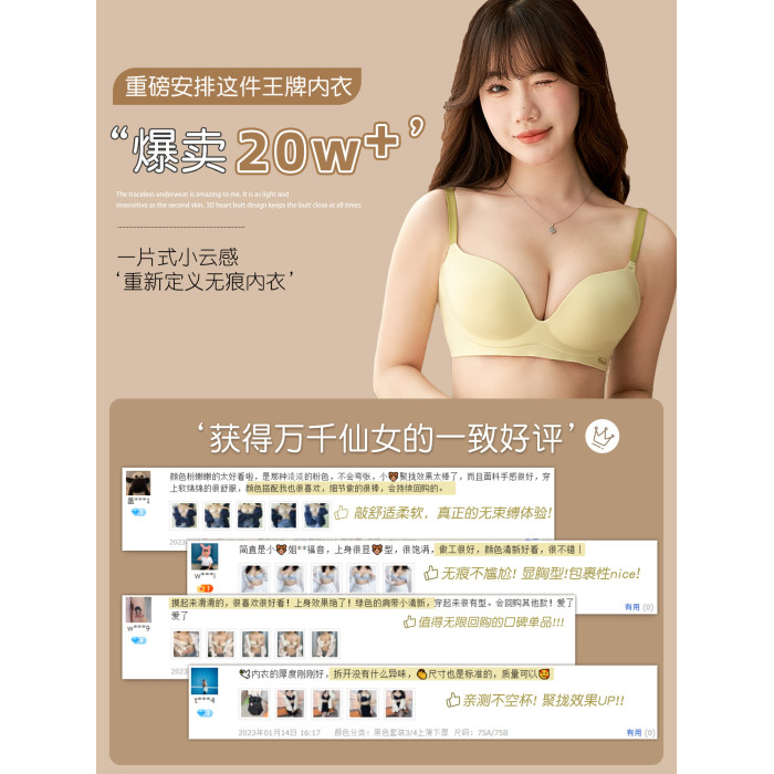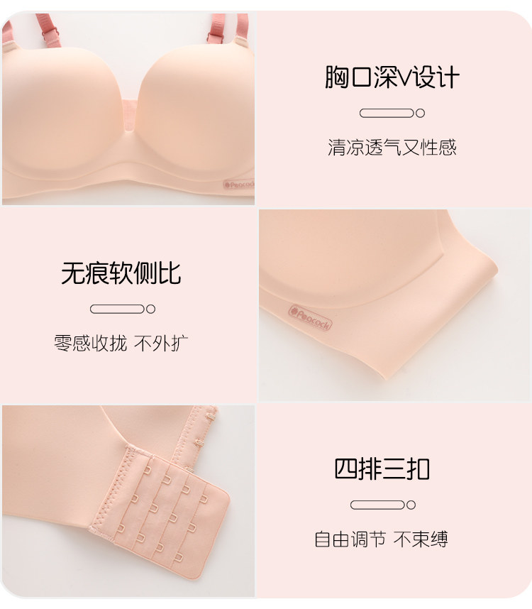 六隻兔子小胸聚攏內衣女無痕顯大胸罩收副乳無鋼圈側收防下垂文胸