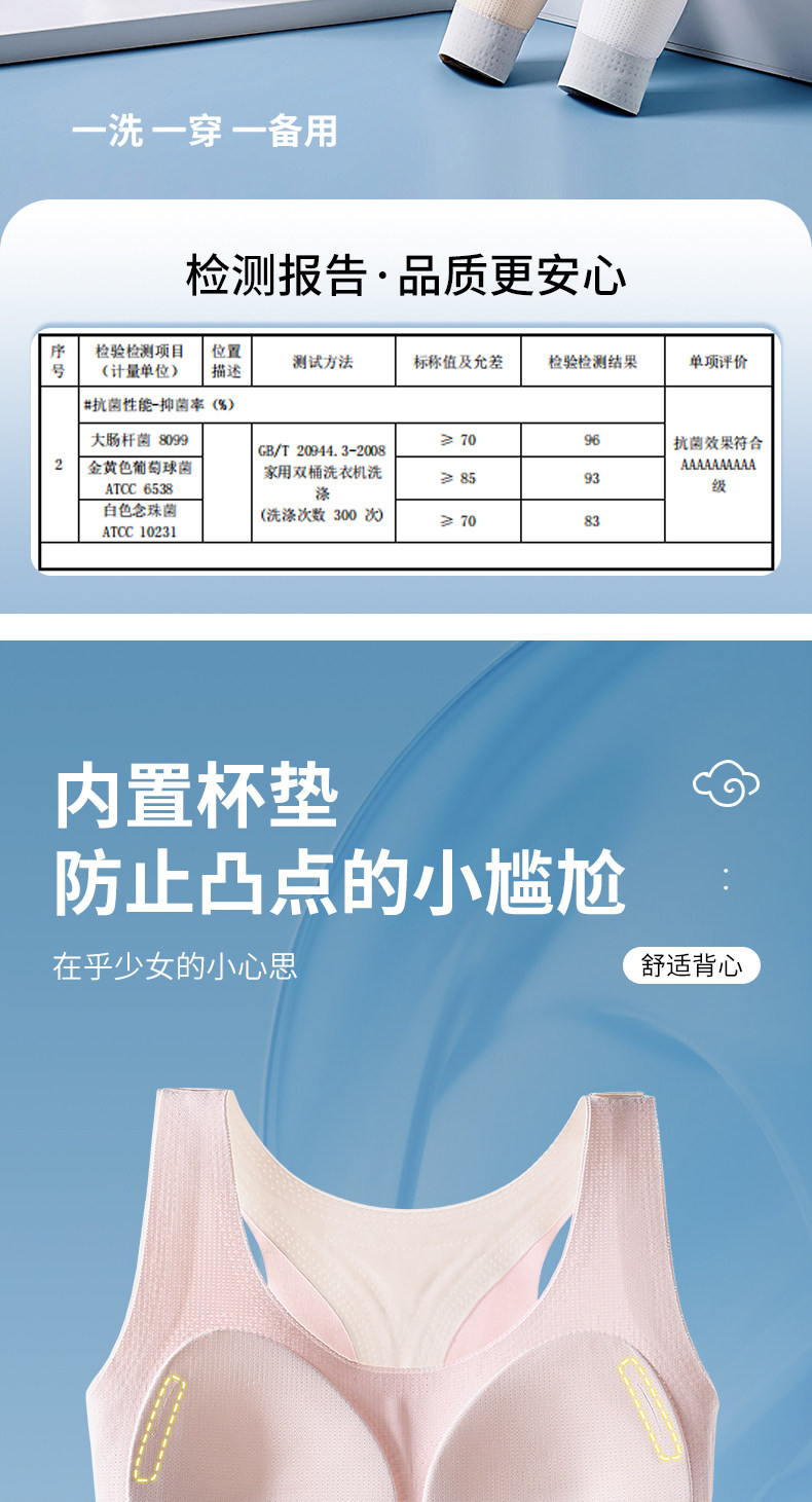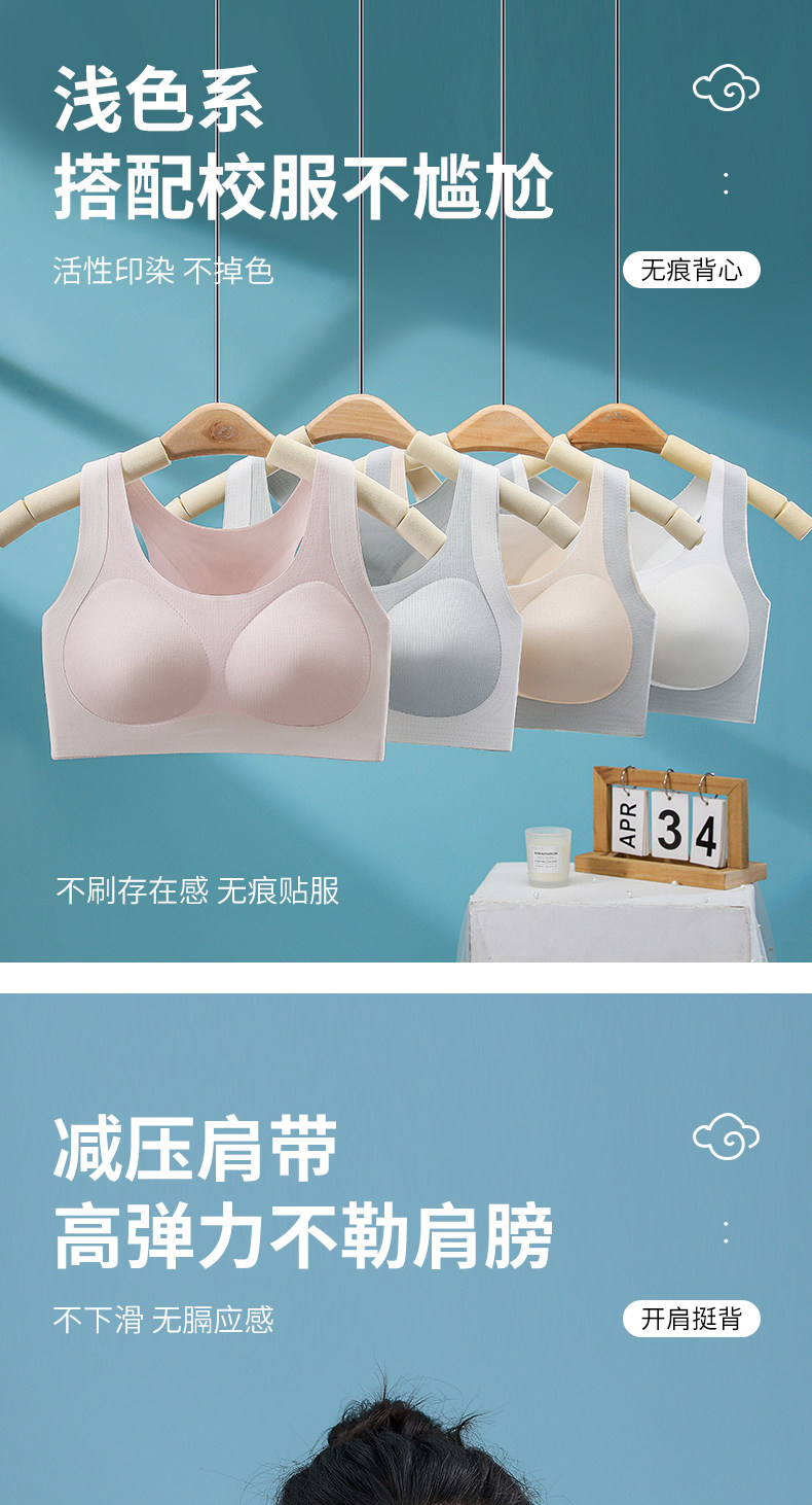 蝶安芬少女內衣學生青少年高中生文胸初中固定杯運動跑步防震背心