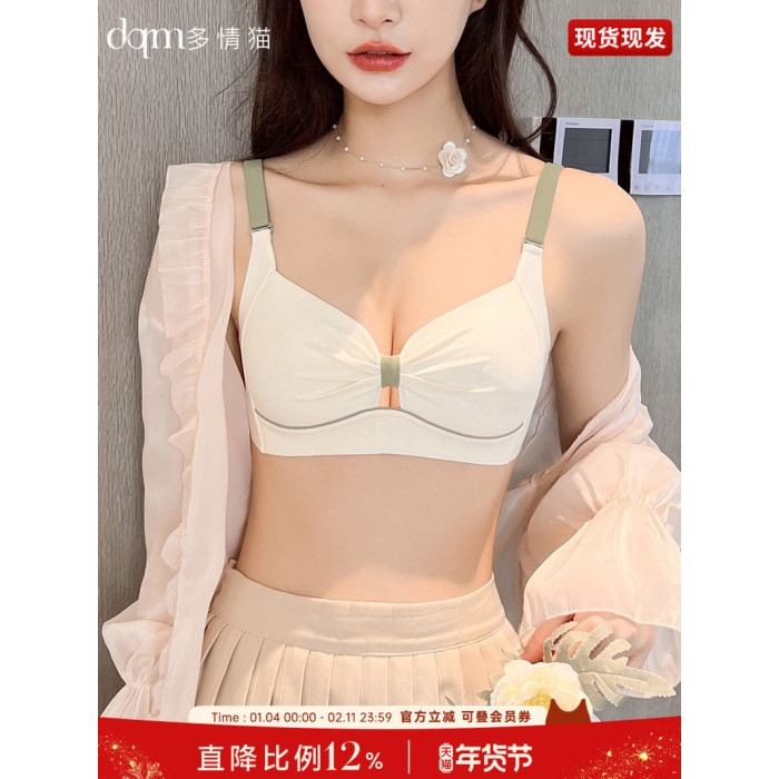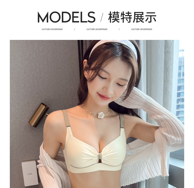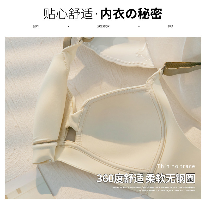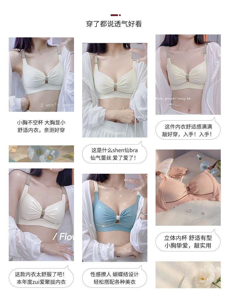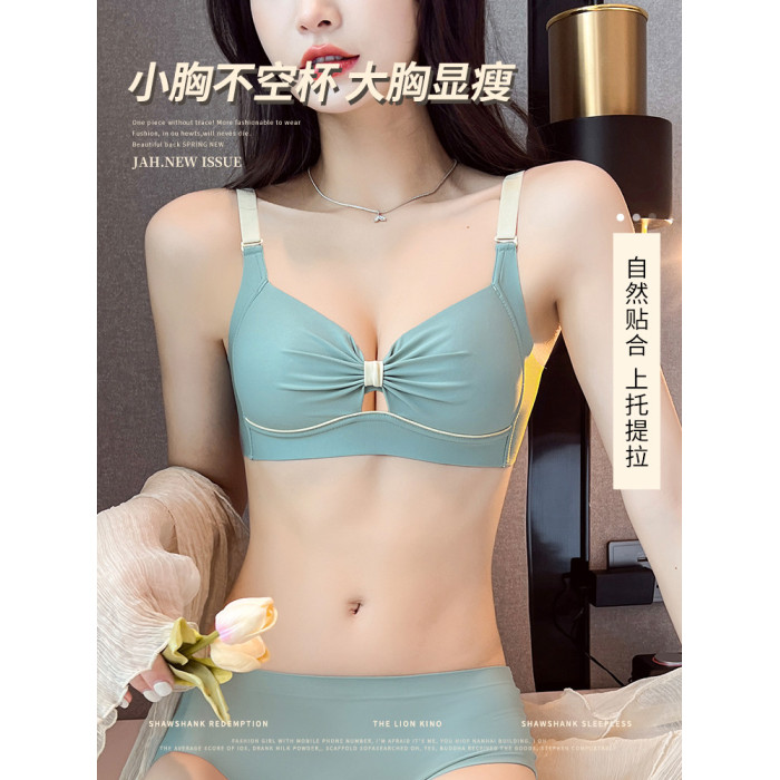 內衣女士薄款無鋼圈胸大顯小胸聚攏無痕防下垂收副乳文胸內褲套裝
