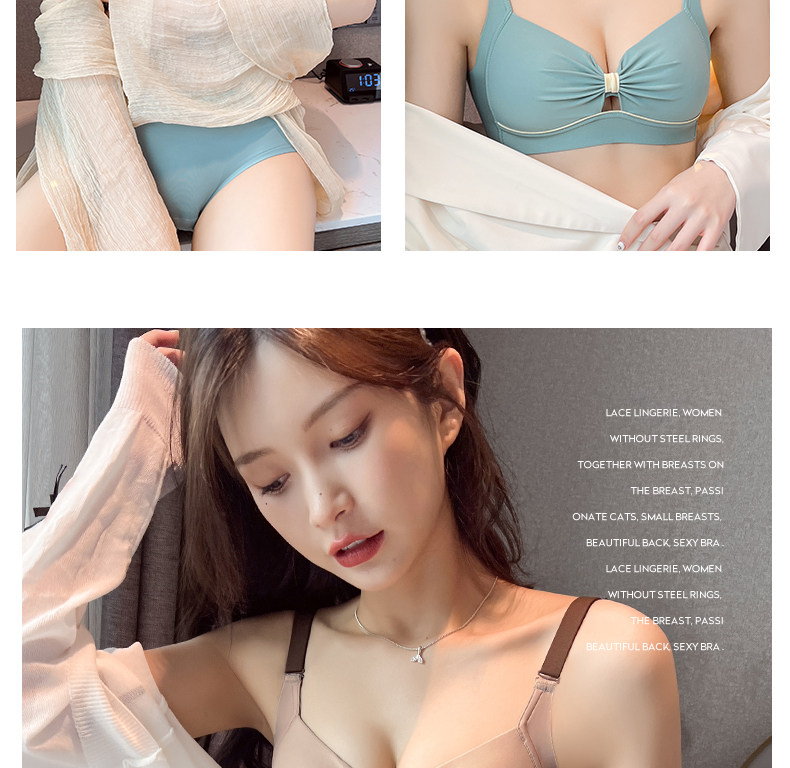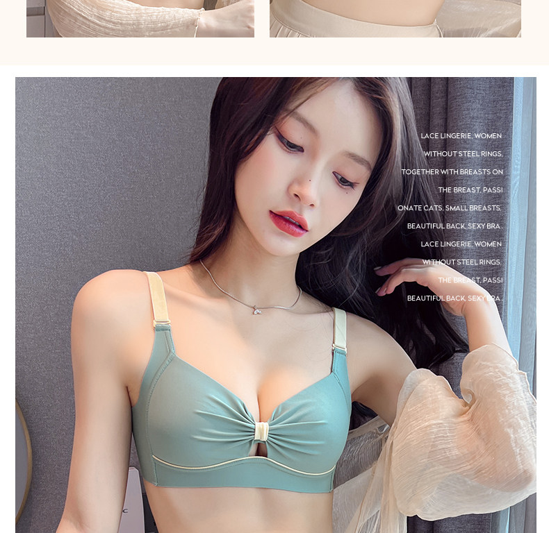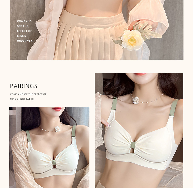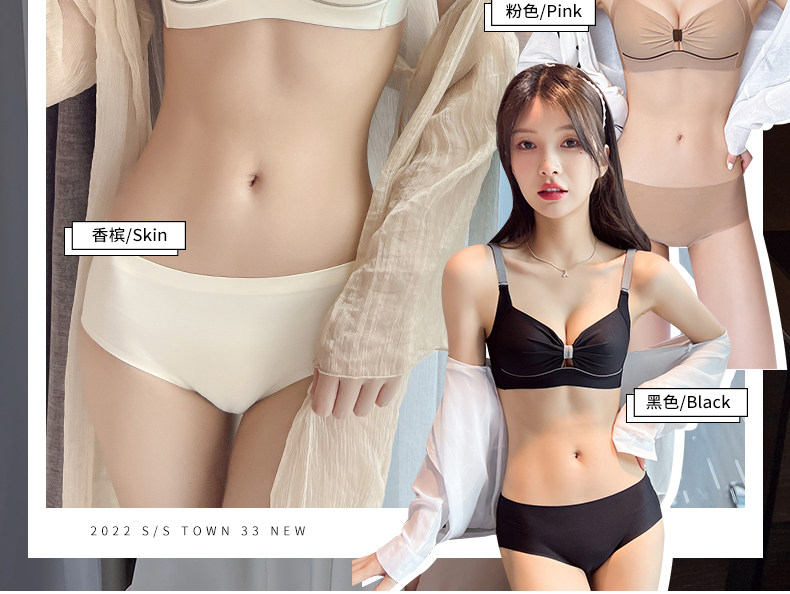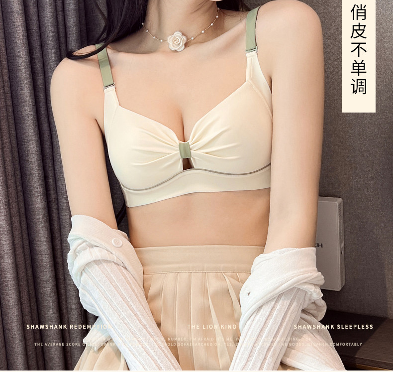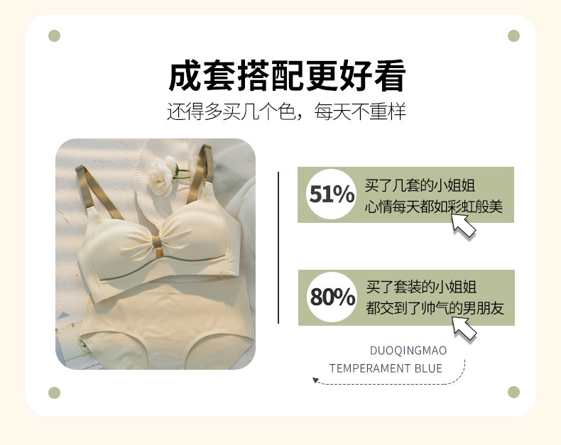 內衣女士薄款無鋼圈胸大顯小胸聚攏無痕防下垂收副乳文胸內褲套裝