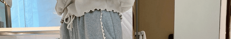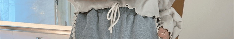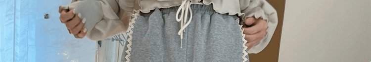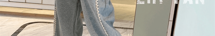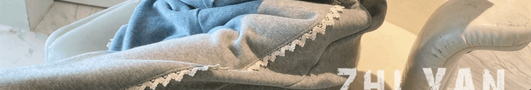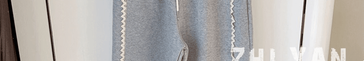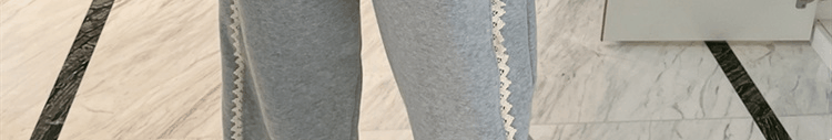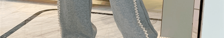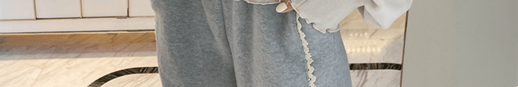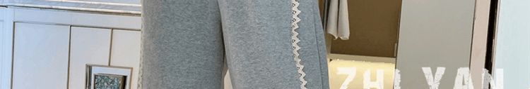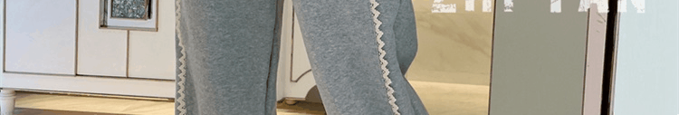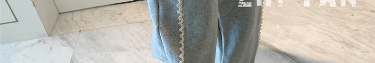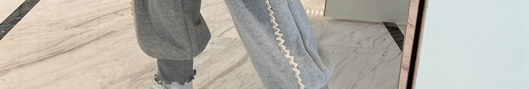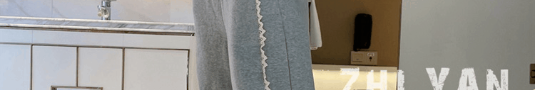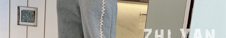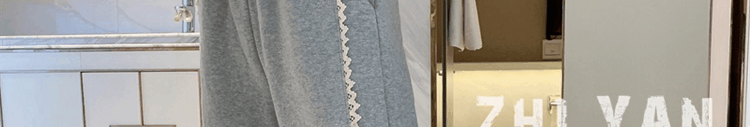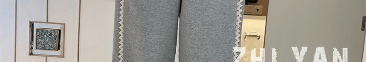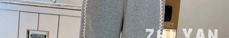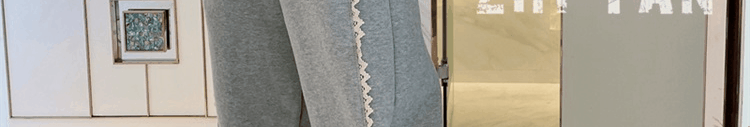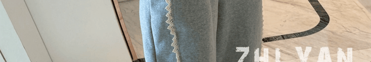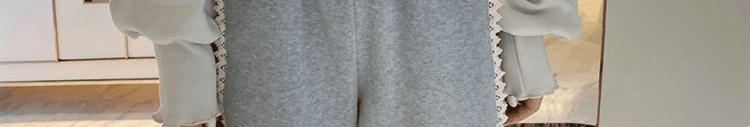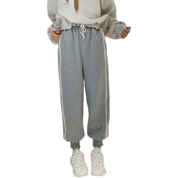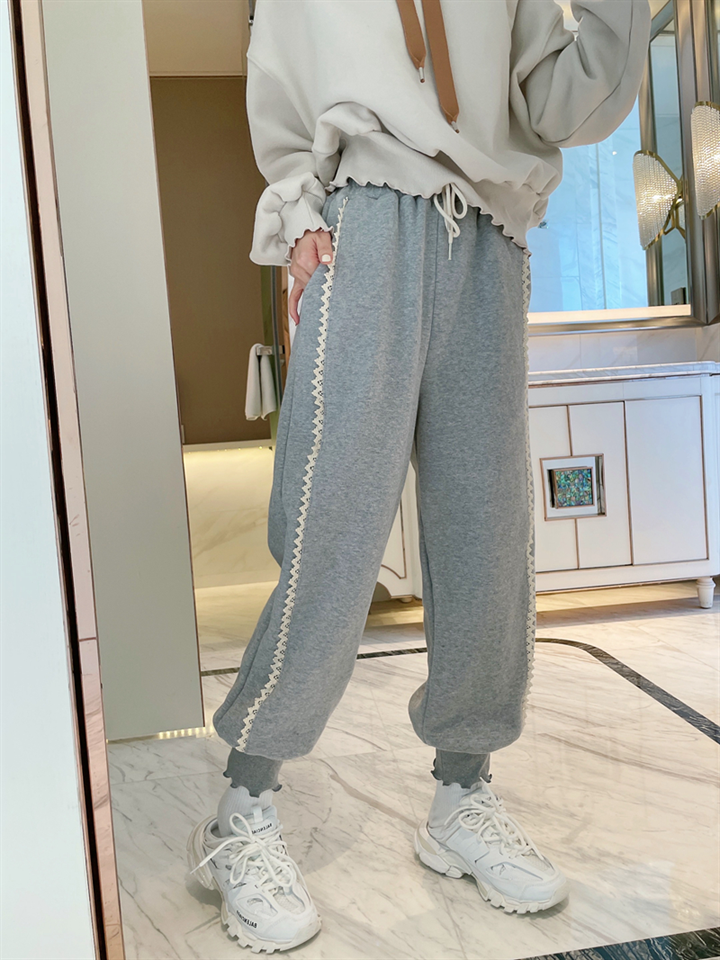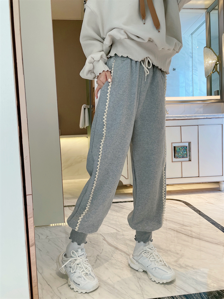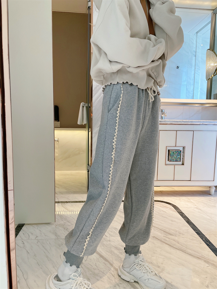 韓國東大門新款蕾絲邊灰色寬鬆加絨休閒小清新運動褲休閒褲女冬季