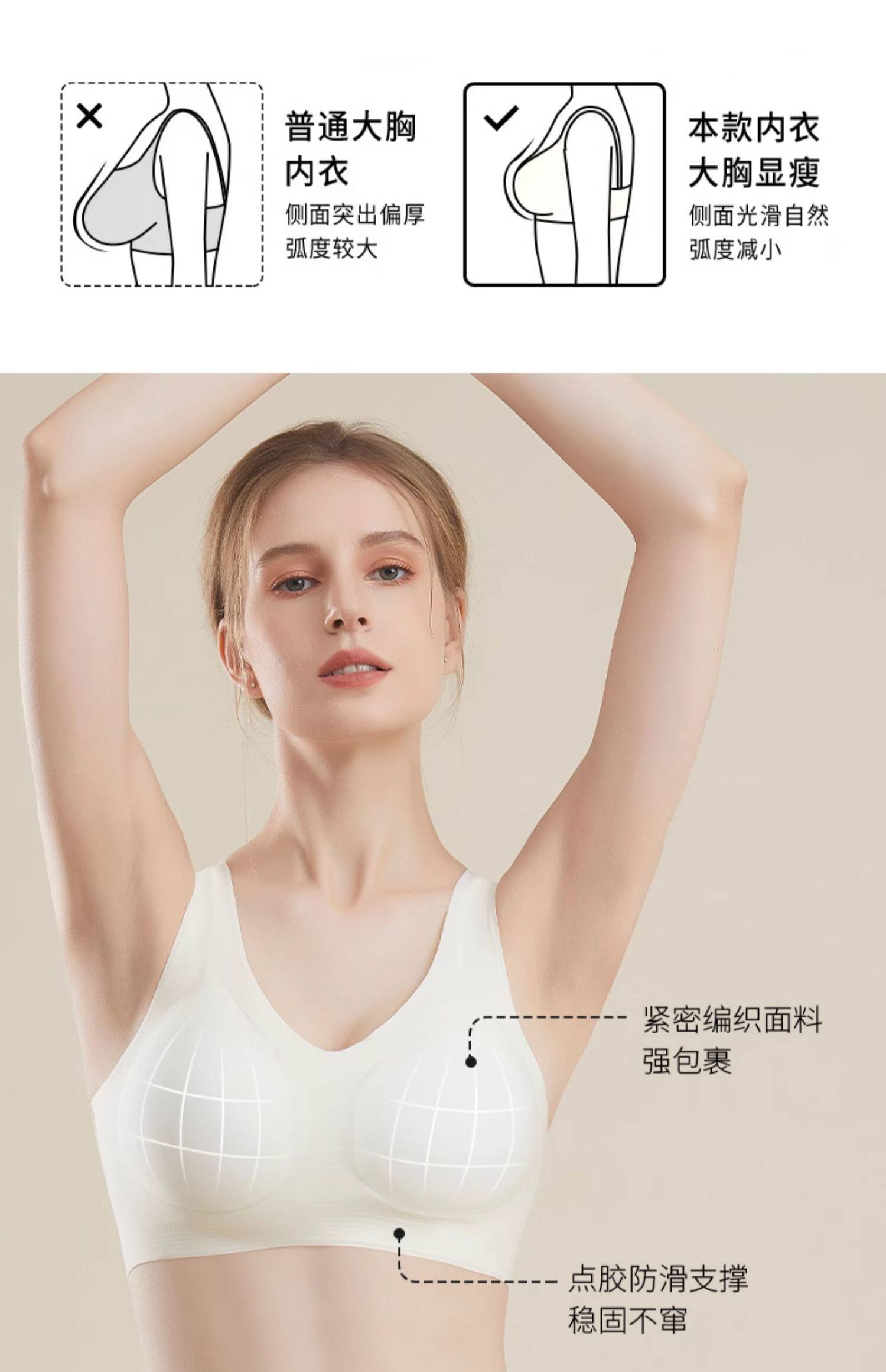婧麒女士內衣大胸顯小聚攏無痕背心薄款無鋼圈孕婦運動文胸罩新款