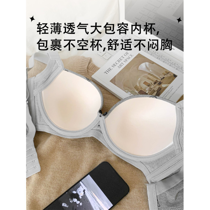 大碼胖MM大胸女生螺紋無痕內衣女2026新款鋼圈聚攏防下垂薄款文胸