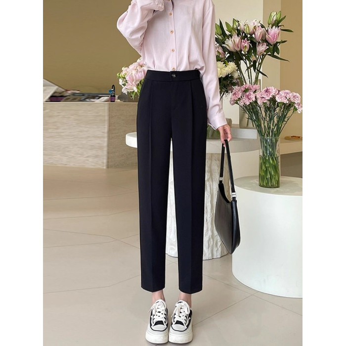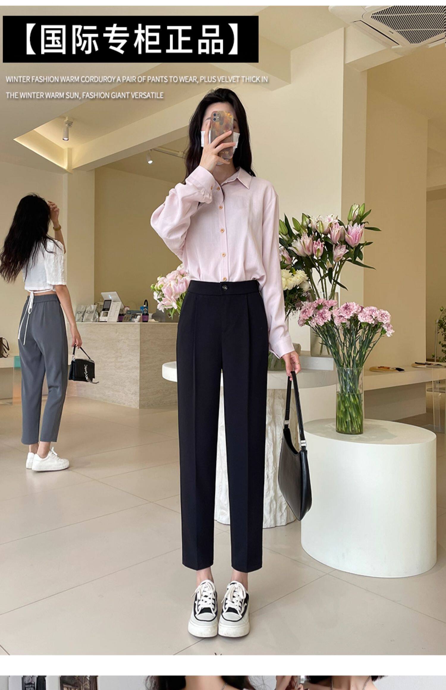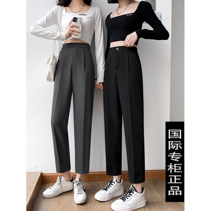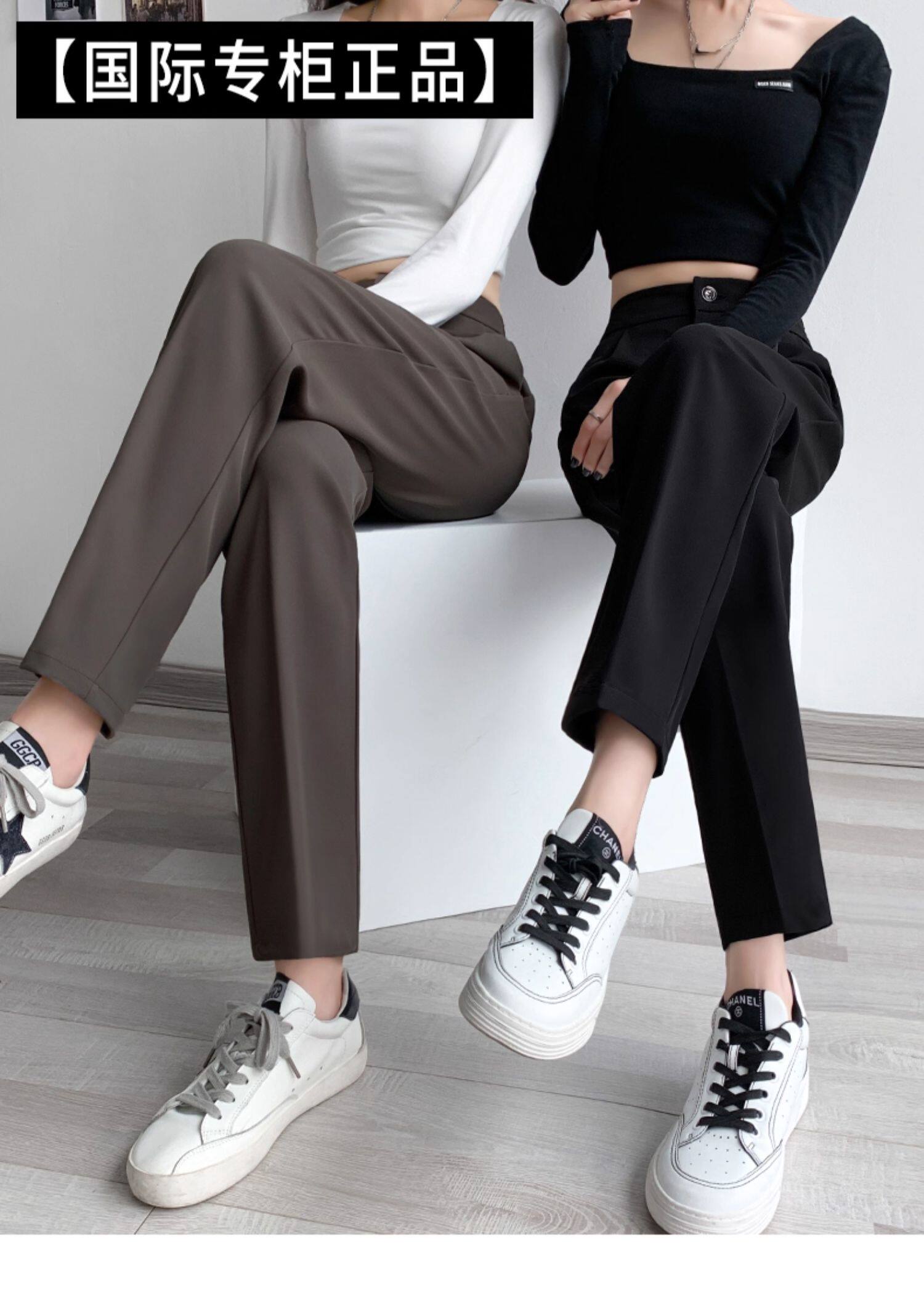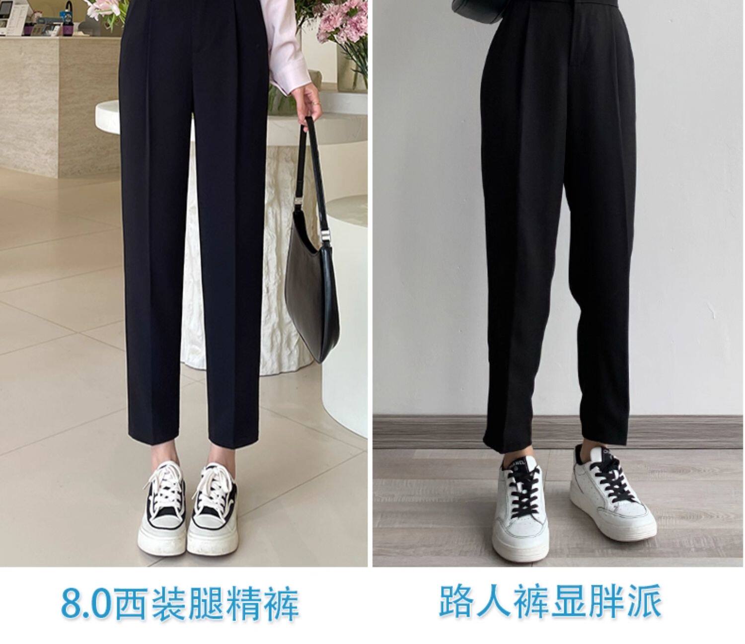 白色西裝褲女夏季新款直筒垂感寬鬆小個子九分休閒蘿蔔菸琯西褲子