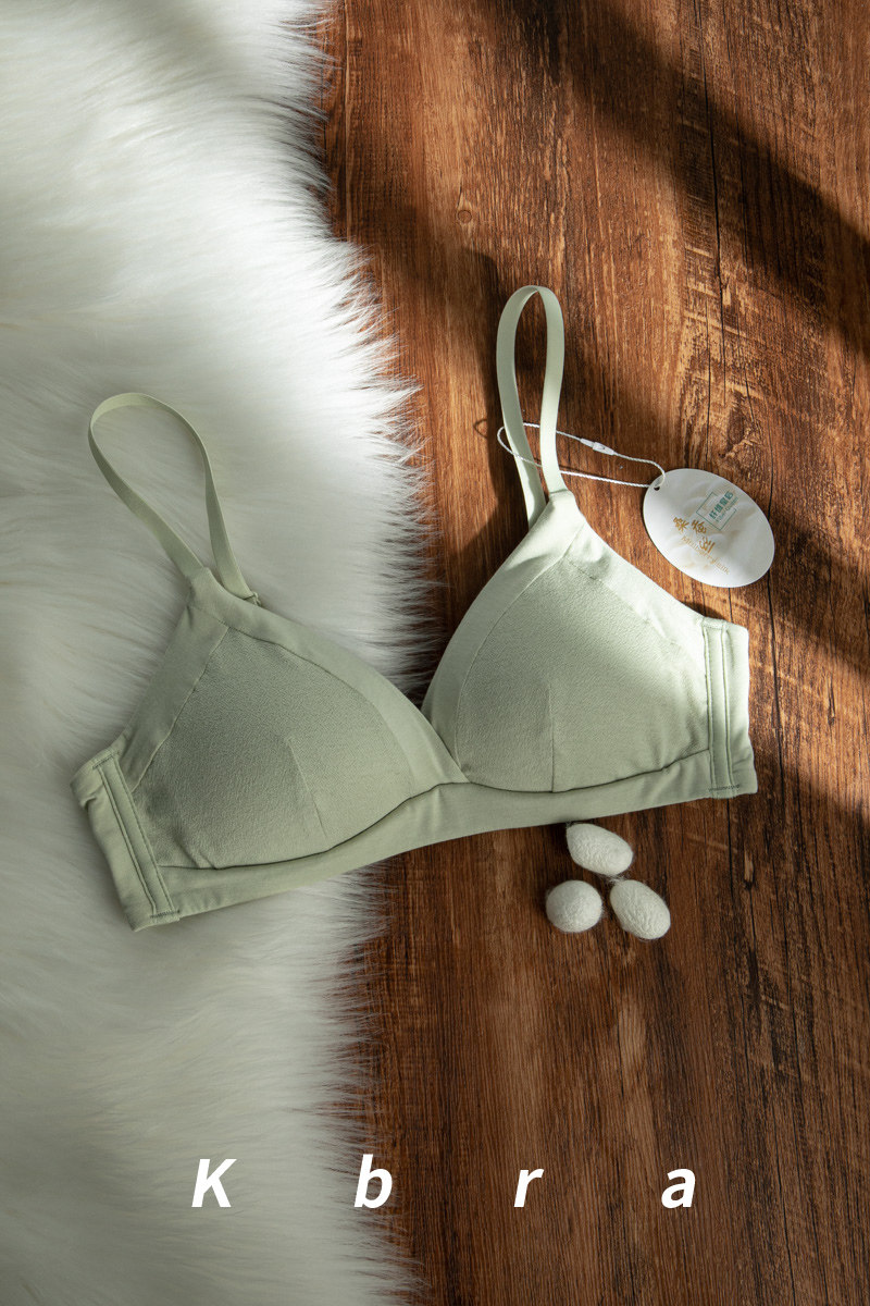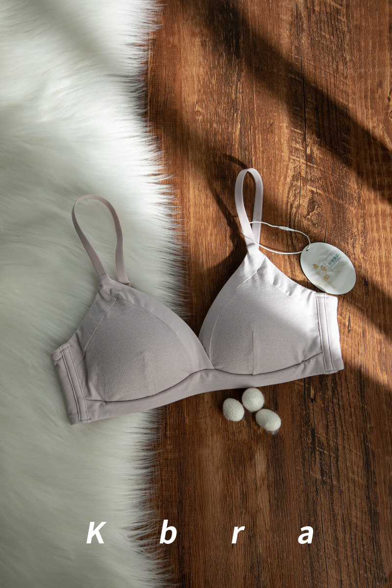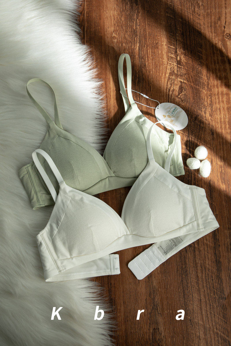 真絲桑蠶絲內裡純棉三角杯內衣女大胸顯小胸聚攏無鋼圈薄美背文胸