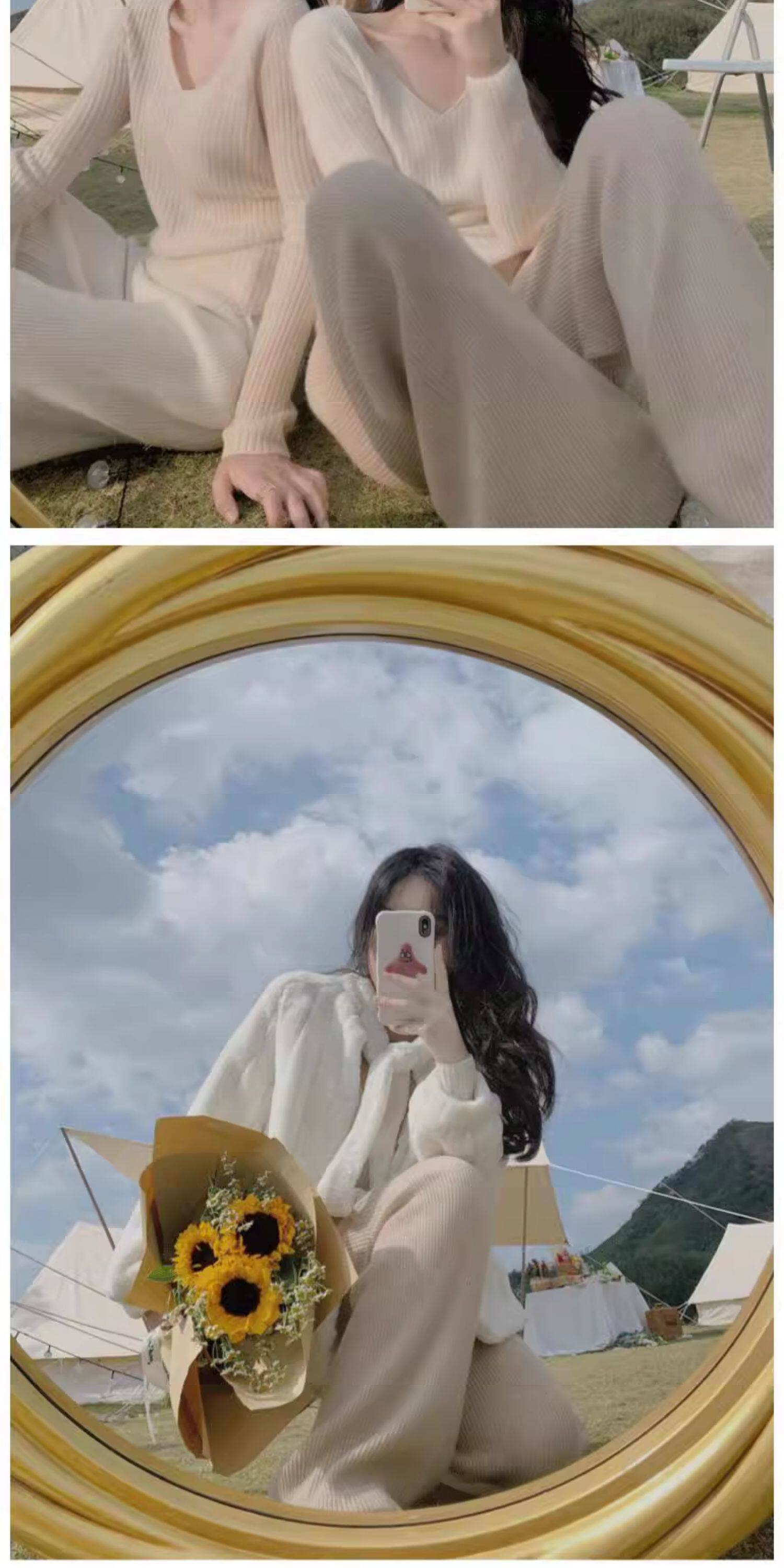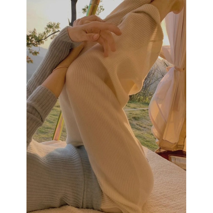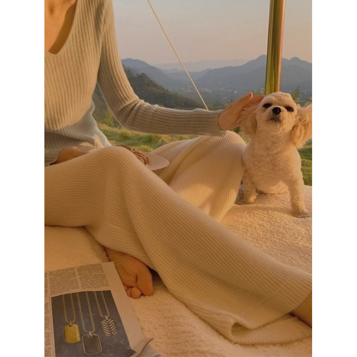 白色針織濶腿褲子女秋冬季新款軟糯奶呼呼顯瘦遮垮垂感長褲奶奶褲