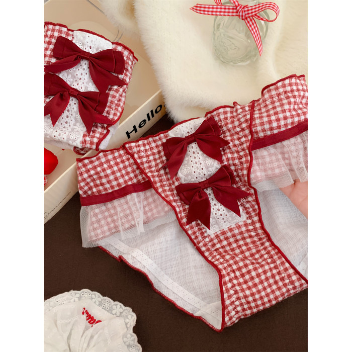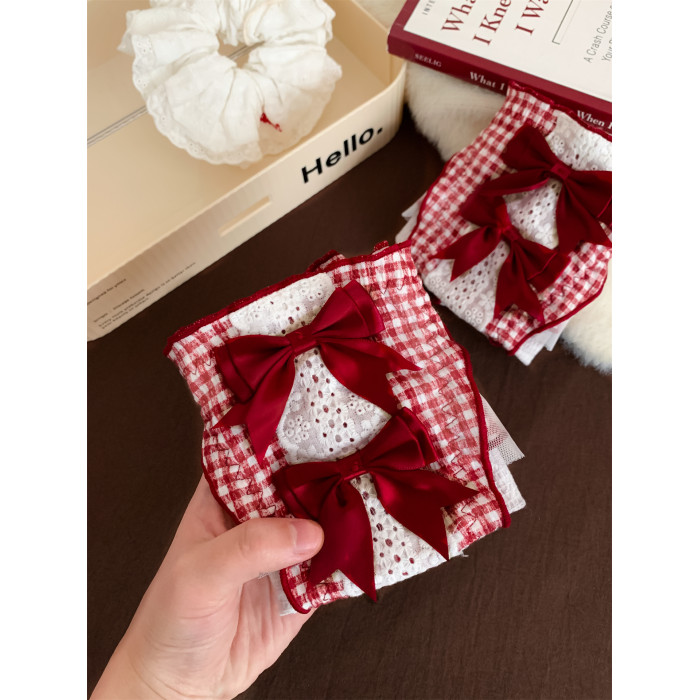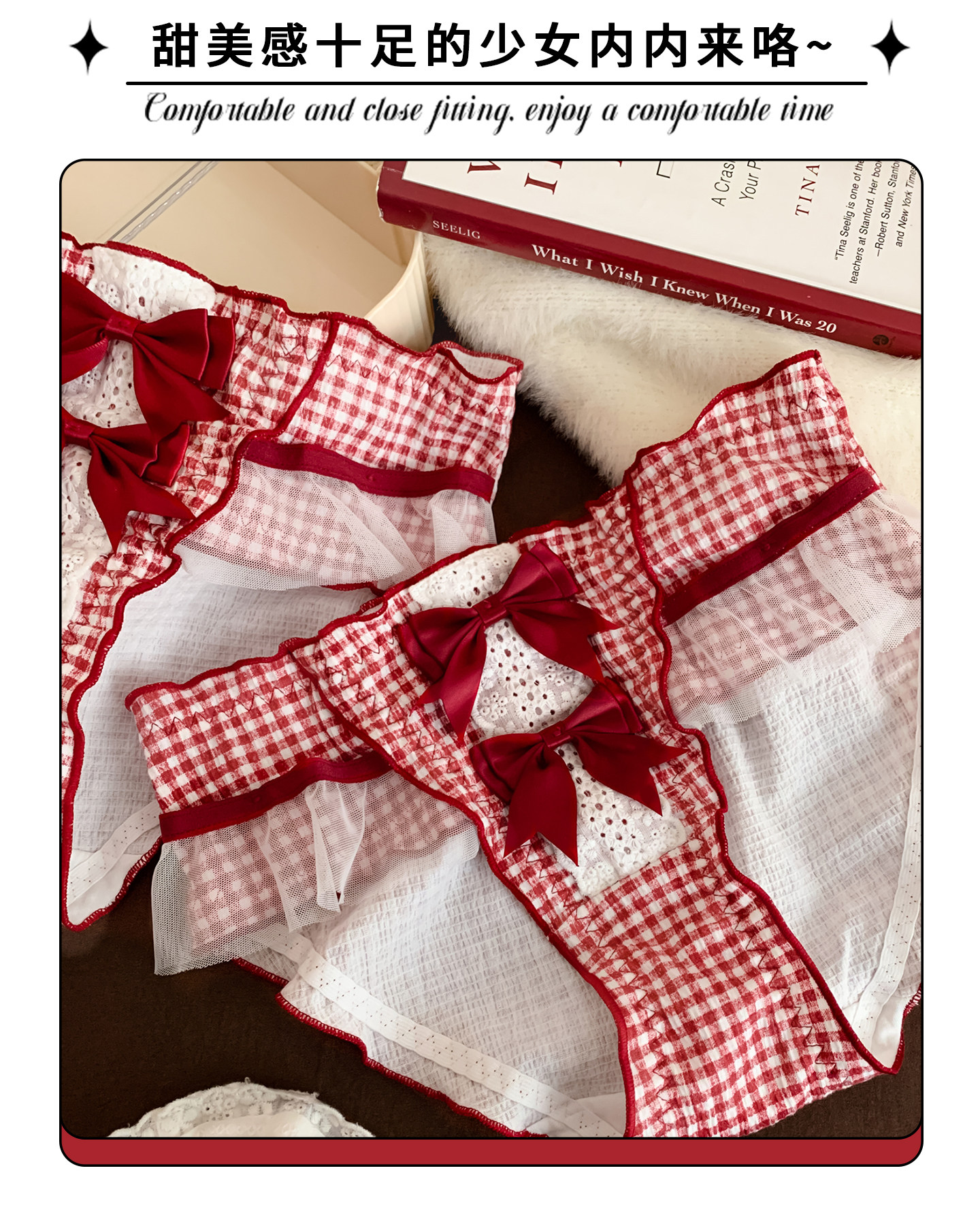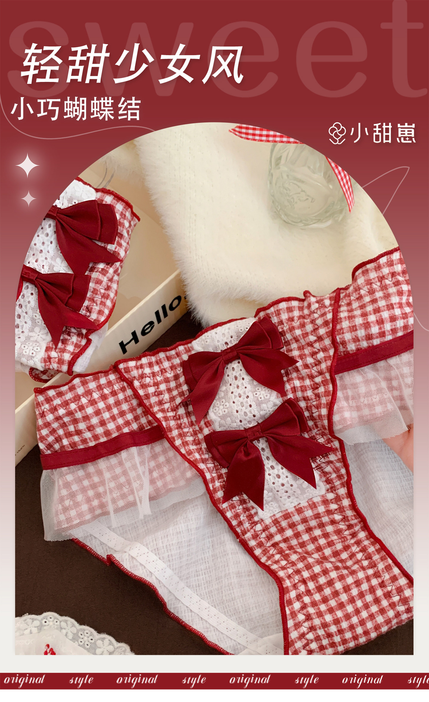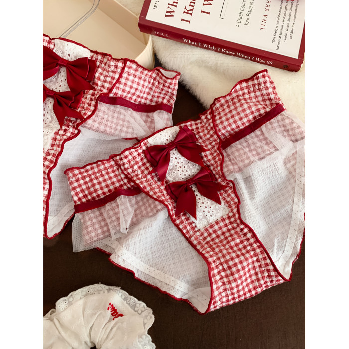 酒心紅結~可愛紅色本命年內褲女舒適中腰不夾屁屁透氣女士三角褲