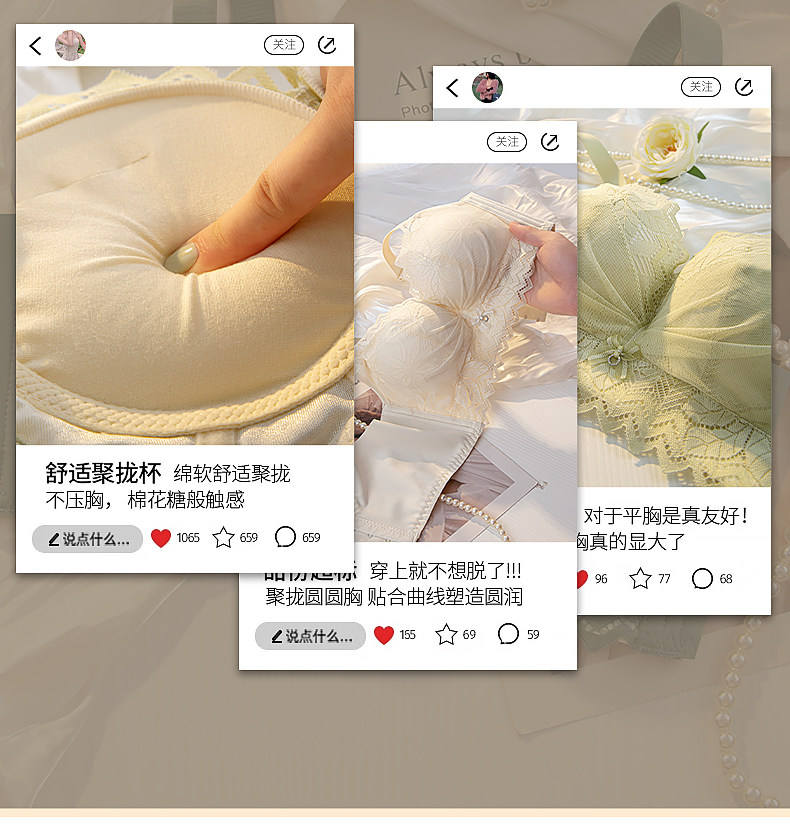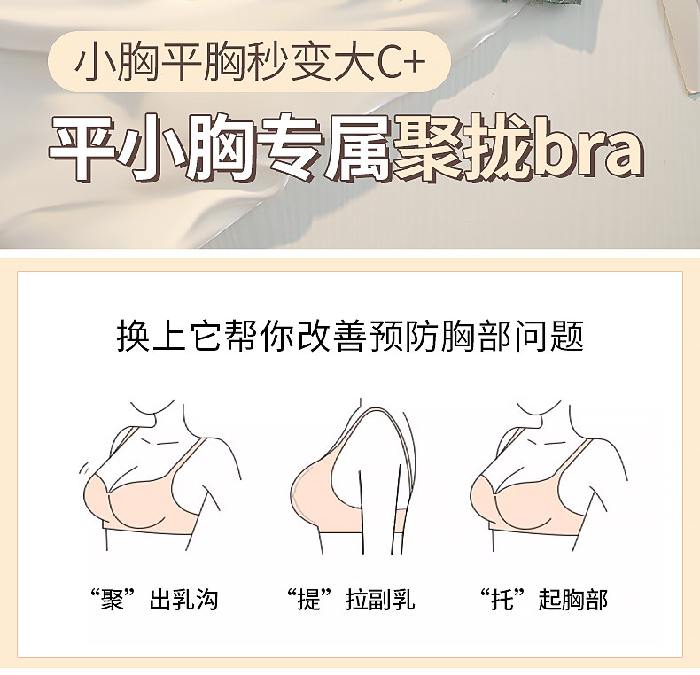 小胸顯大聚攏無鋼圈調整收副乳內衣女士平胸加厚款超厚文胸胸罩