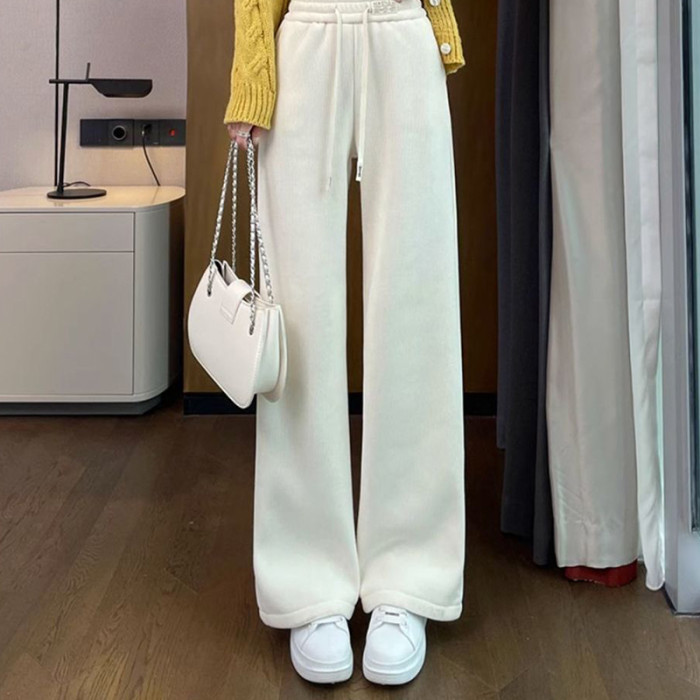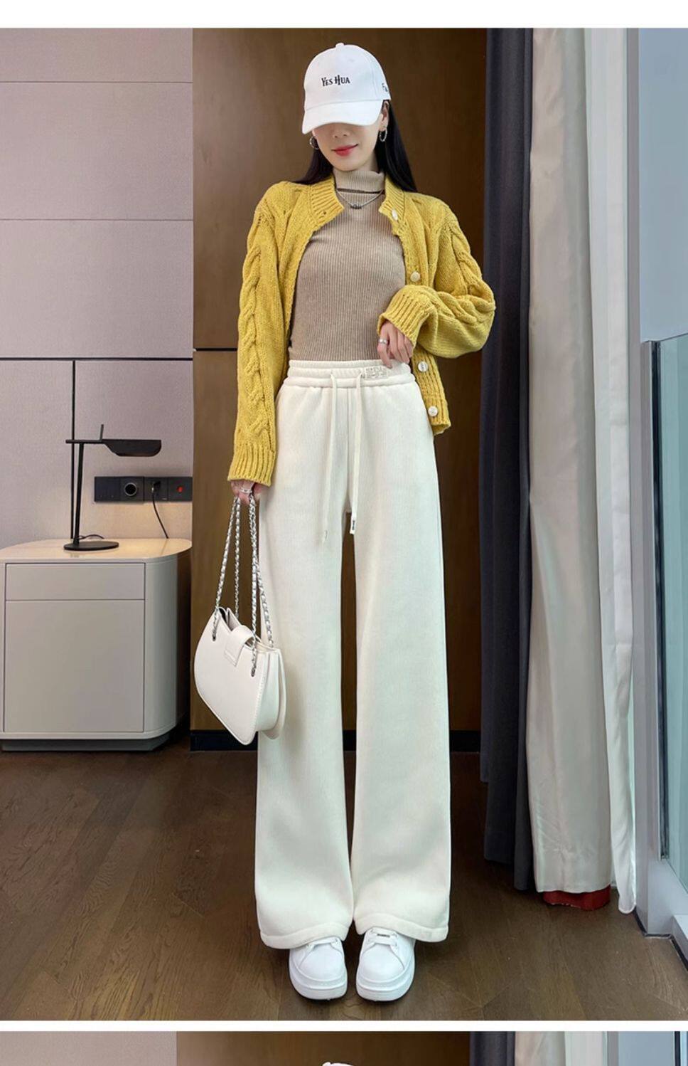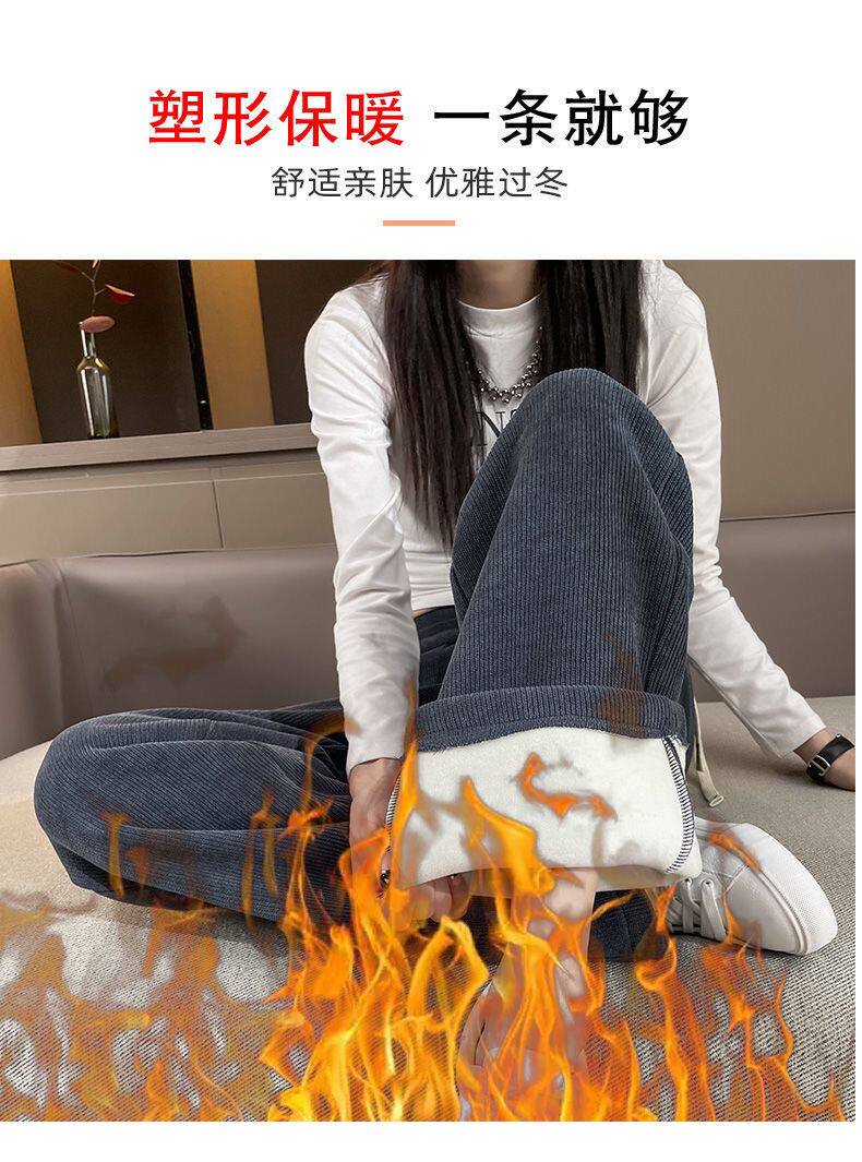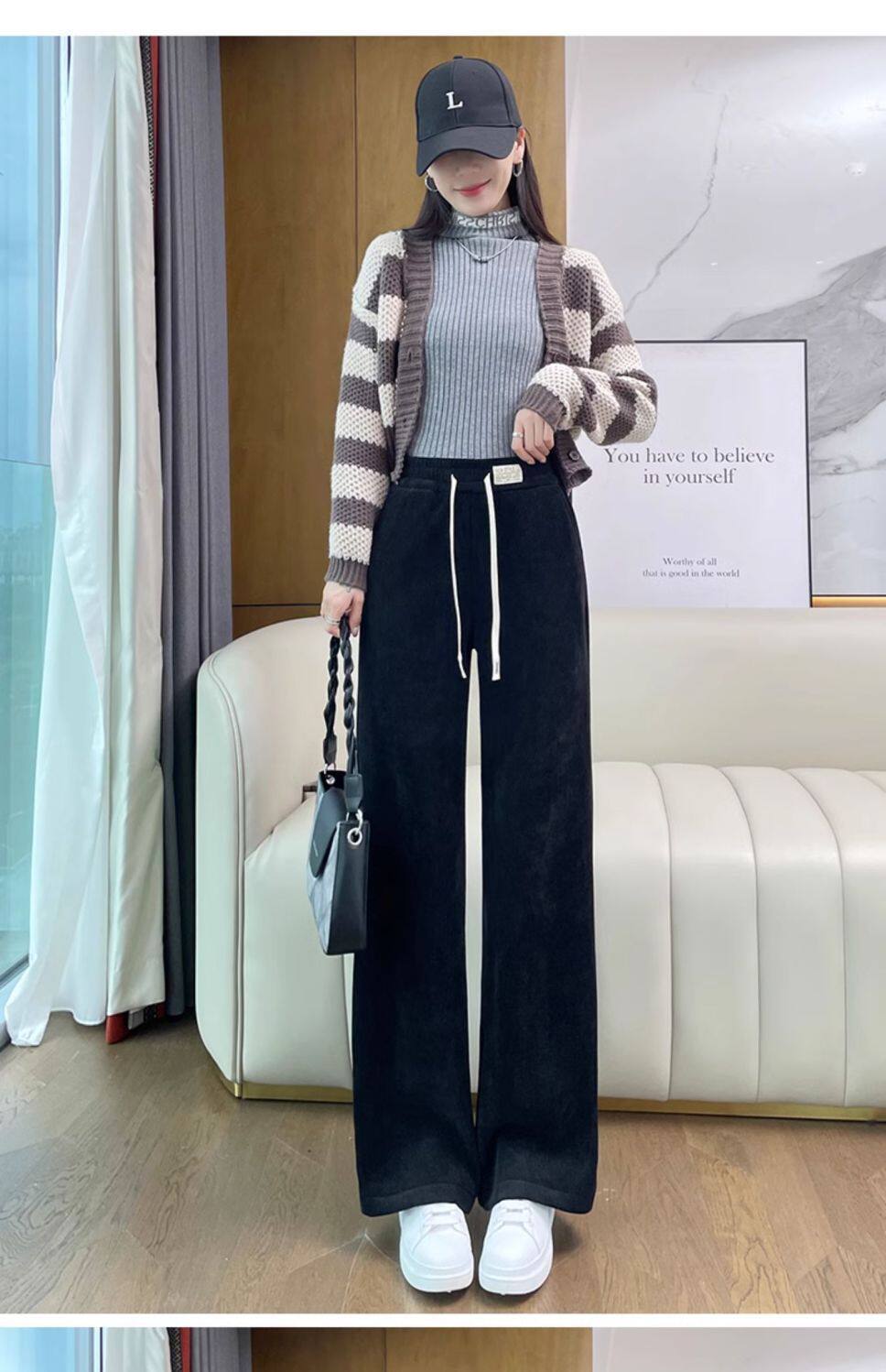 特大碼300斤胖mm秋冬歐棉絨加絨濶腿褲女高腰休閒薄款直筒拖地褲2
