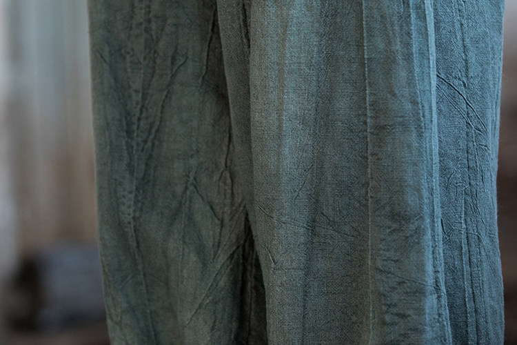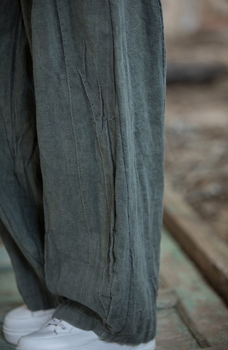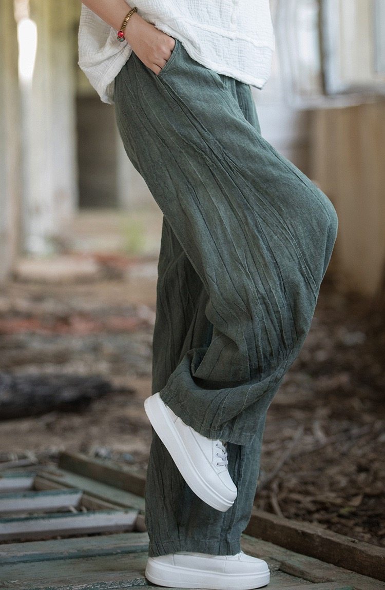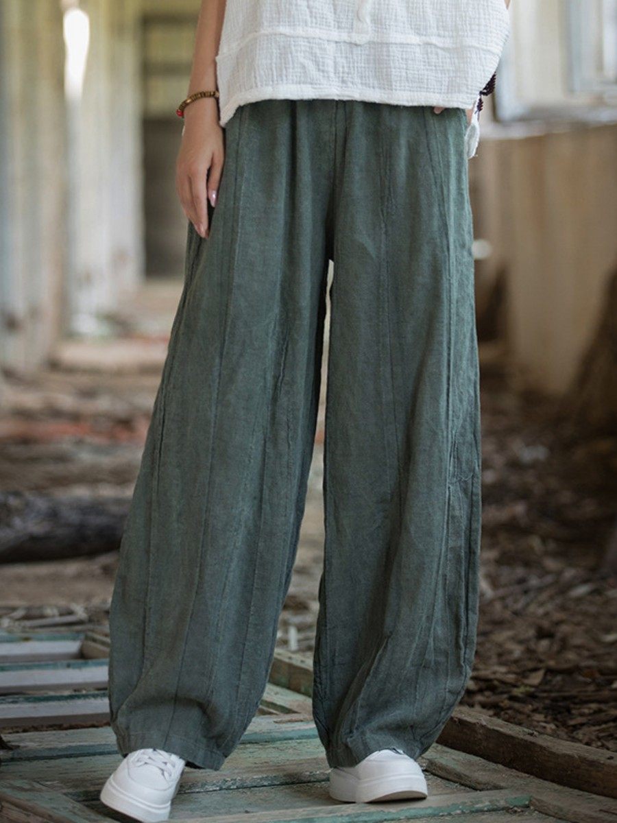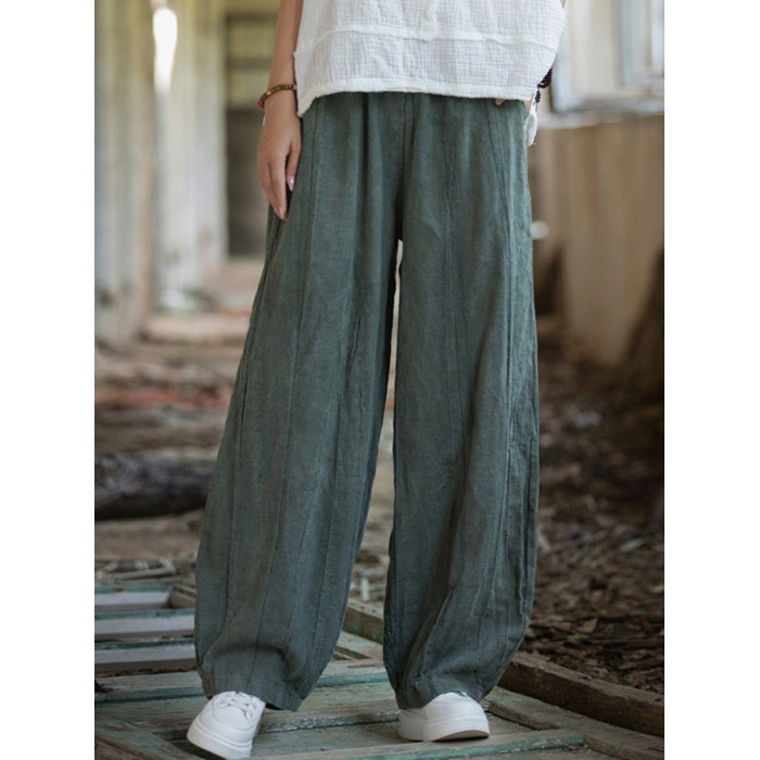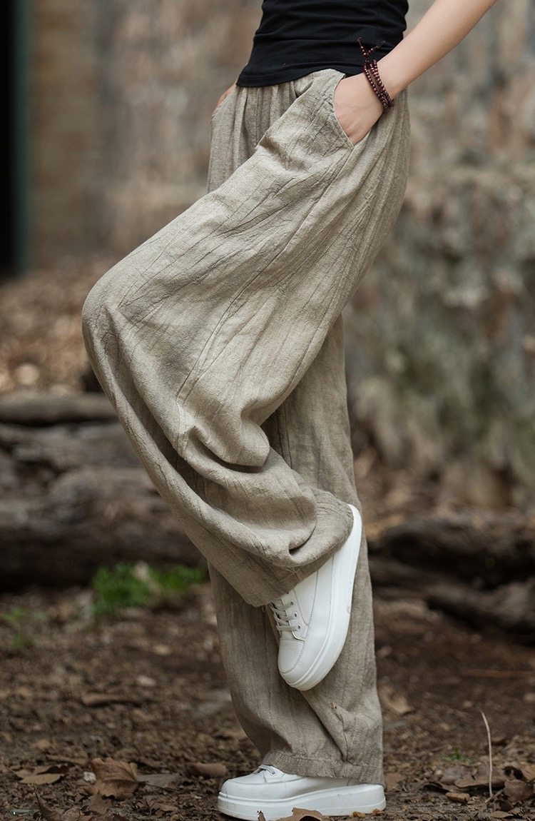 苧麻紥染復古長褲子春秋新款棉麻女裝文藝百搭燈籠褲洋氣直筒褲女