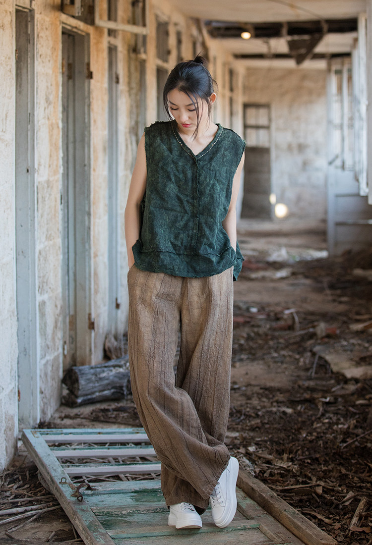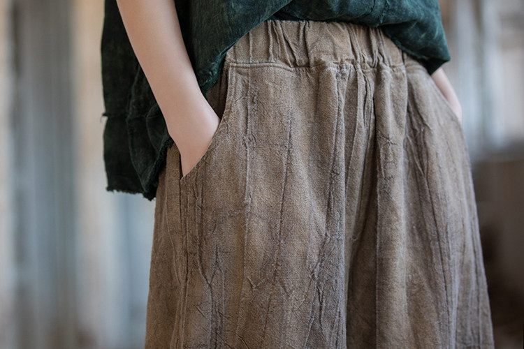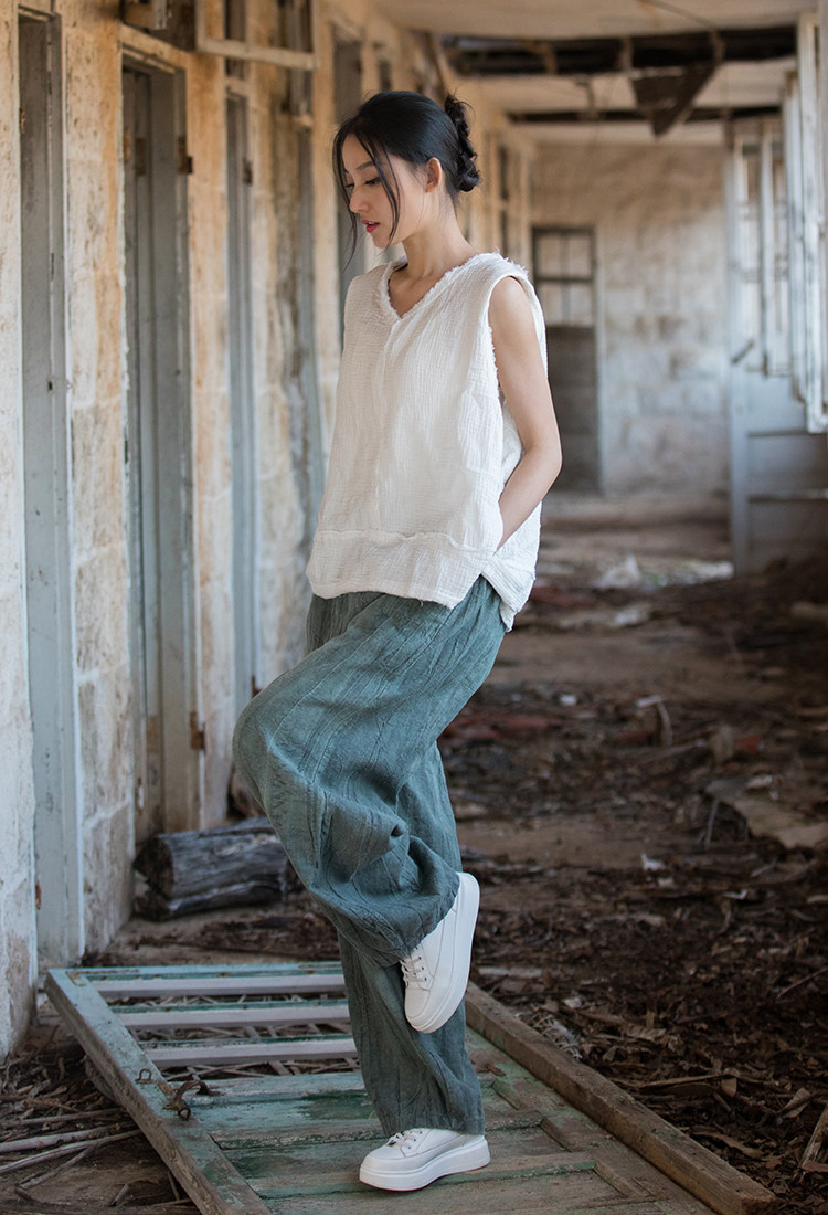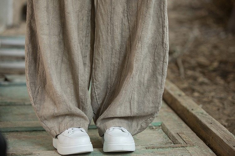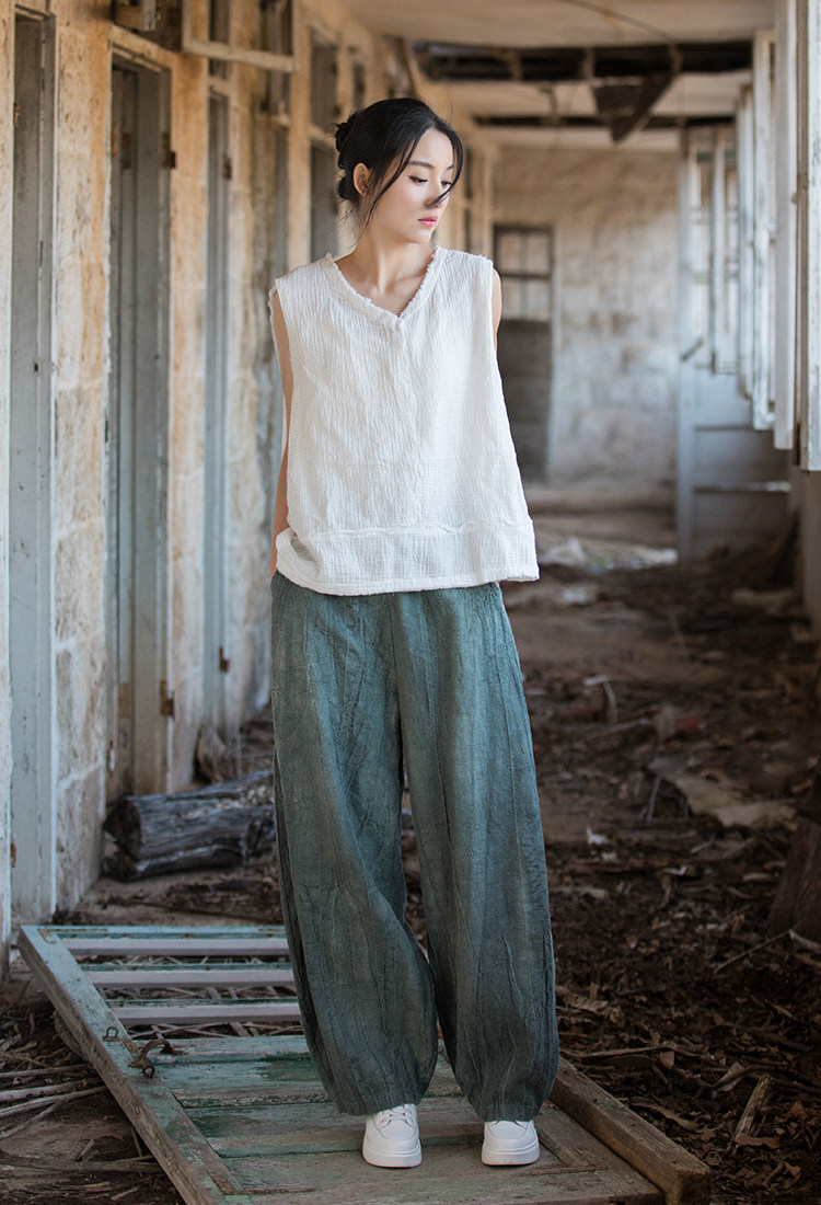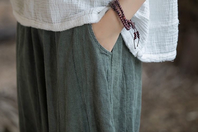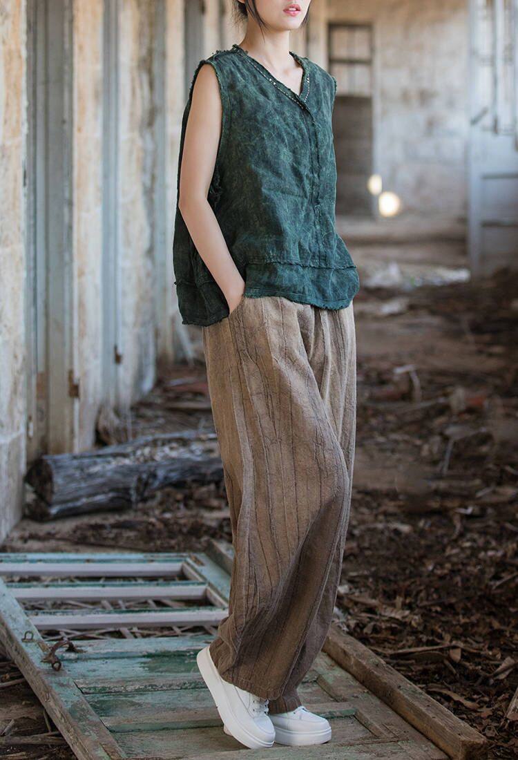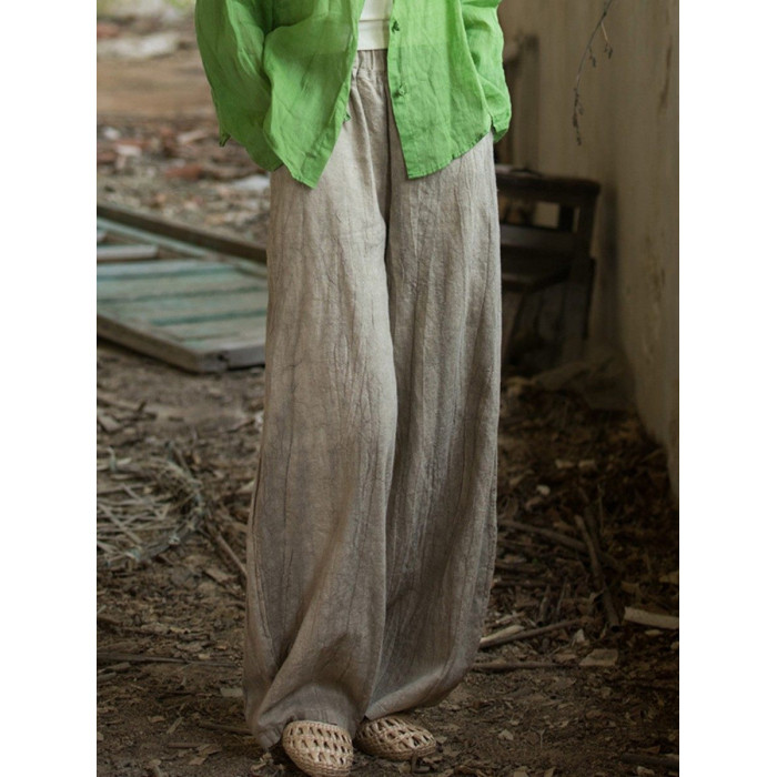 苧麻紥染復古長褲子春秋新款棉麻女裝文藝百搭燈籠褲洋氣直筒褲女