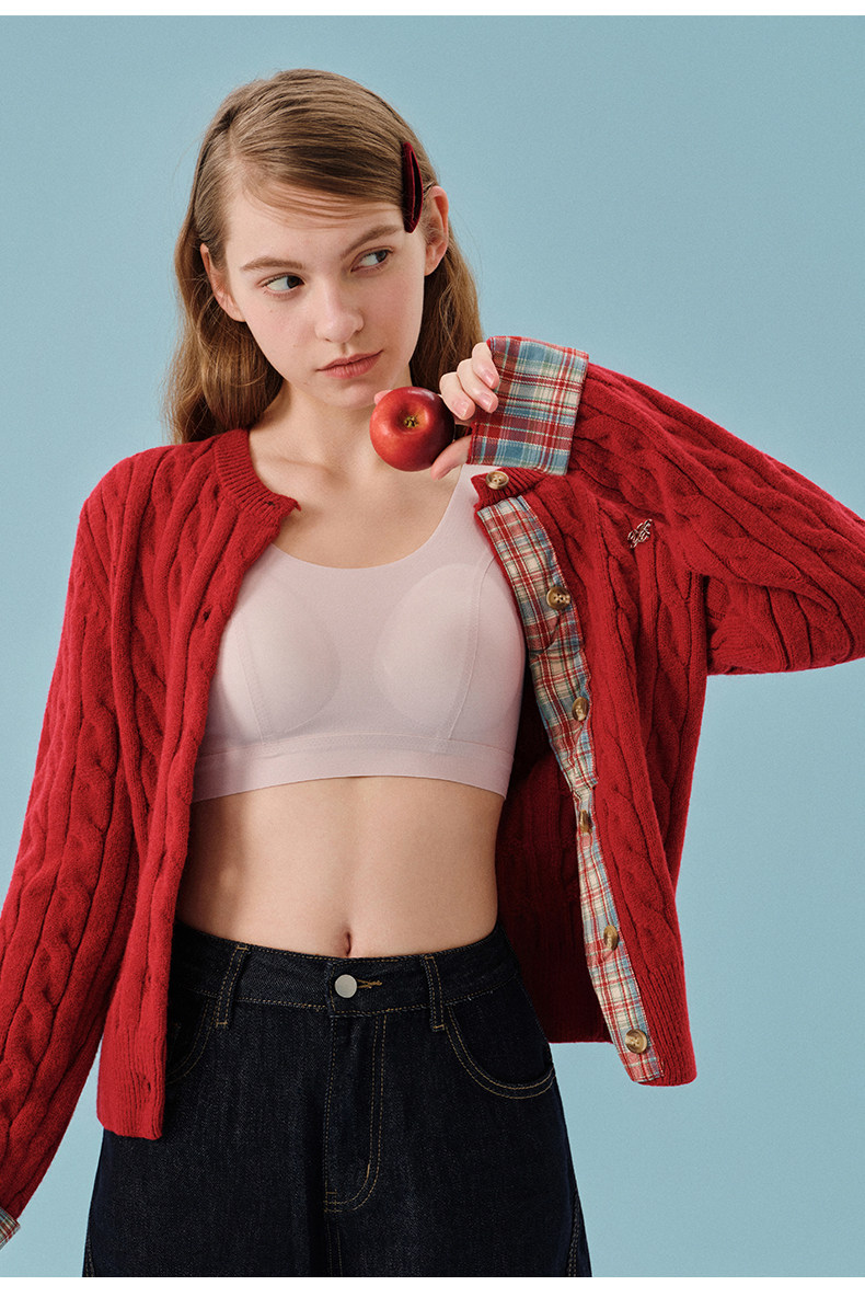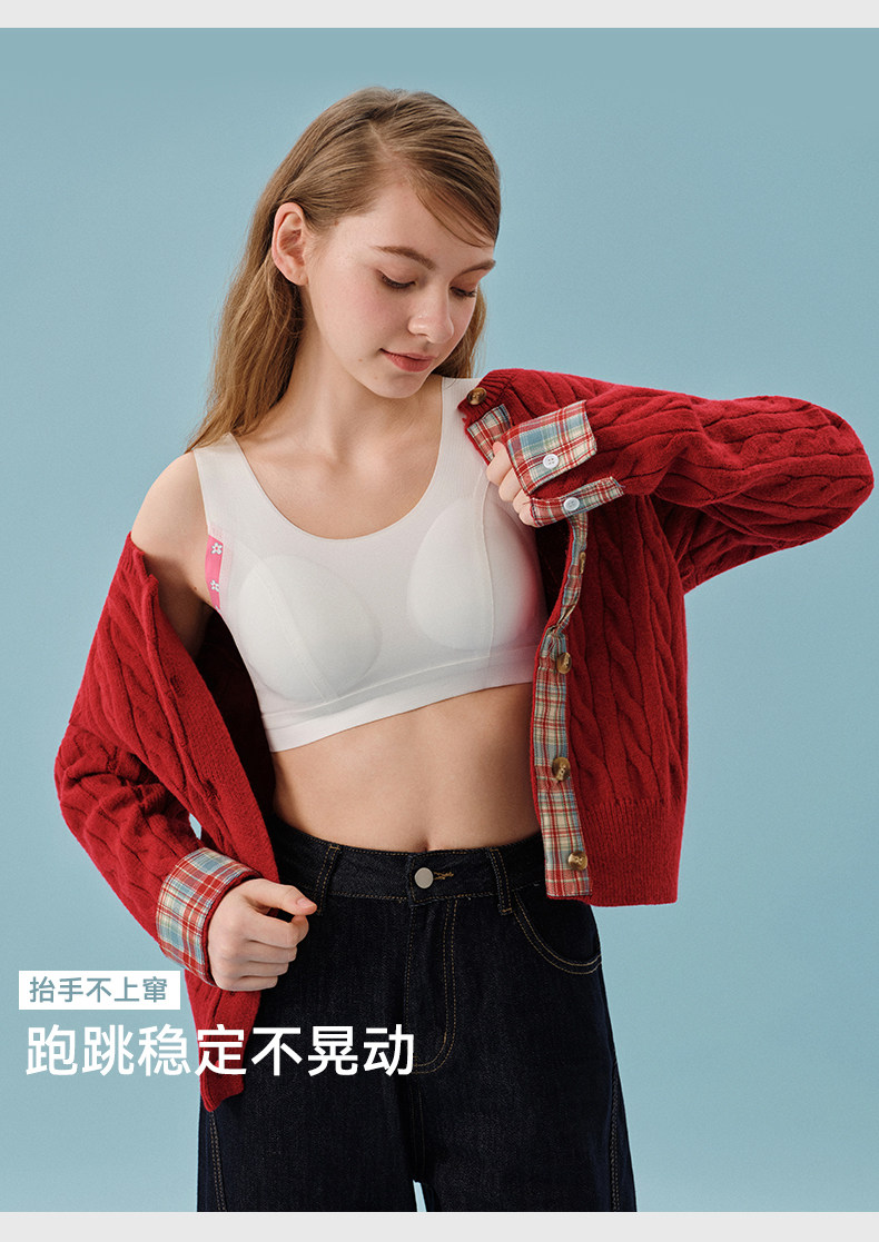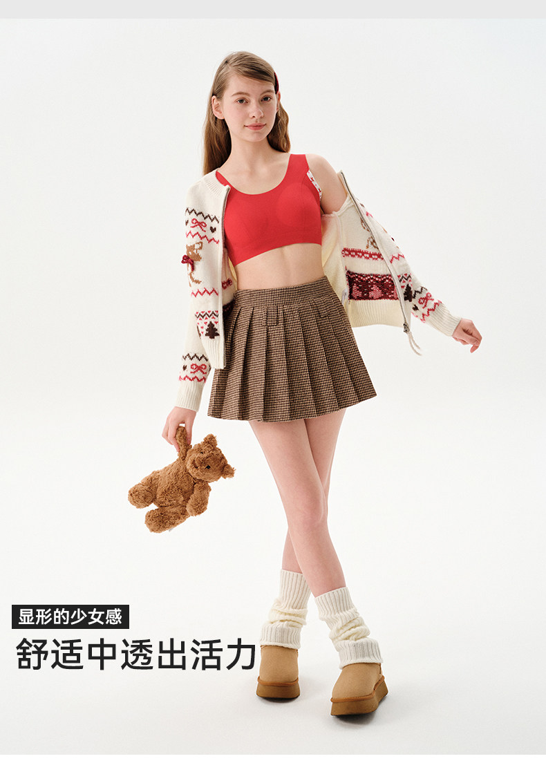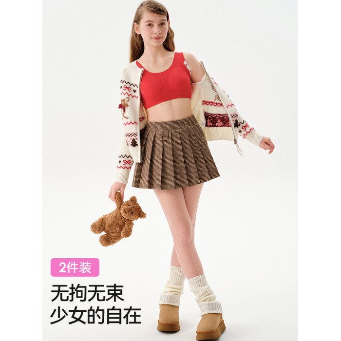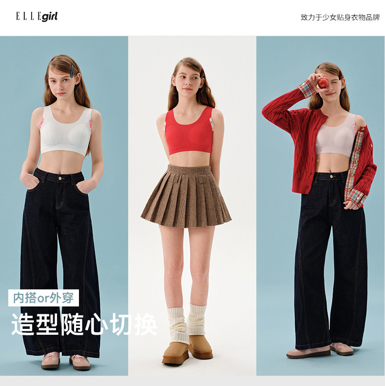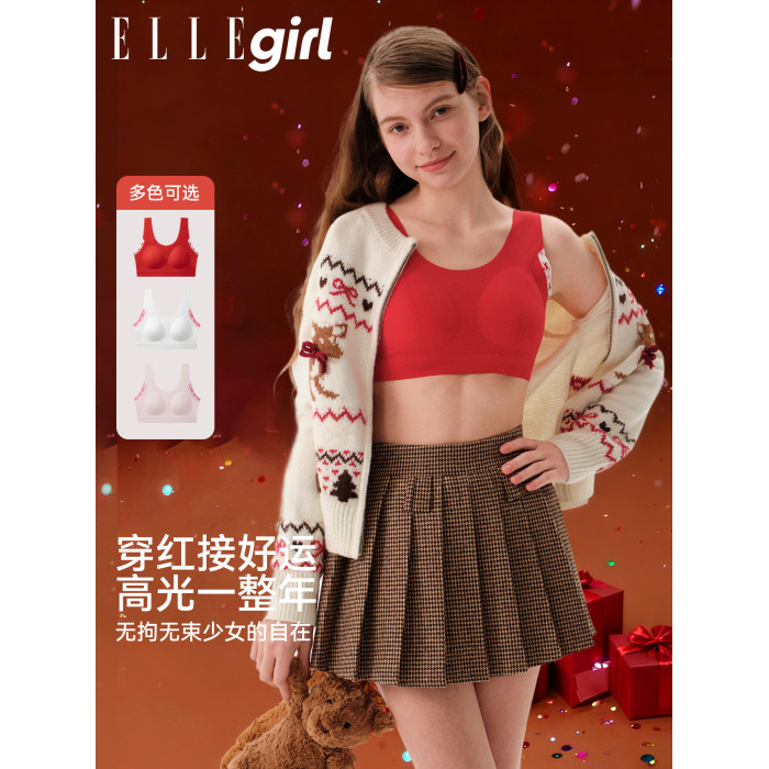 ELLE girl少女內衣紅色本命年文胸初中高中生發育期學生無痕背心