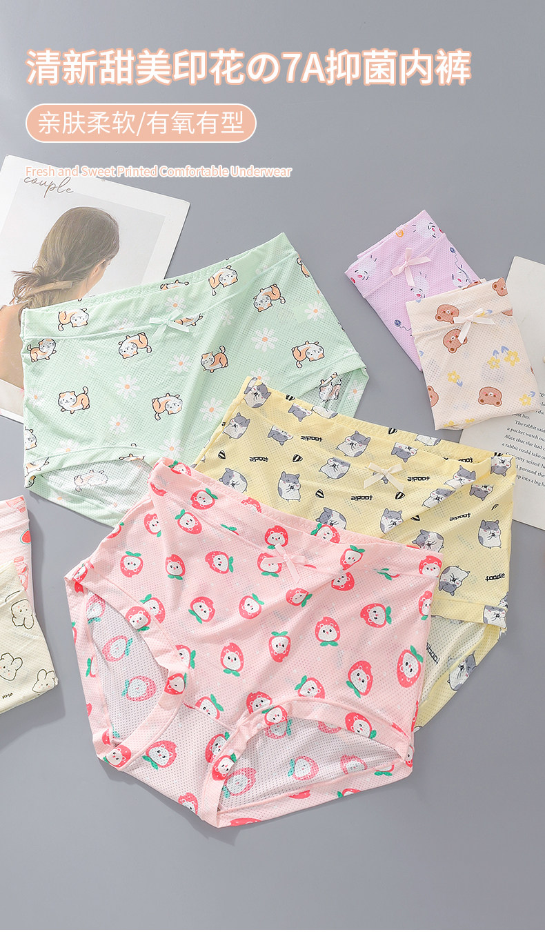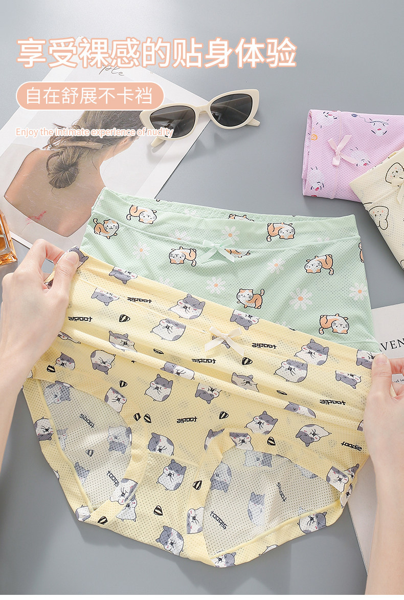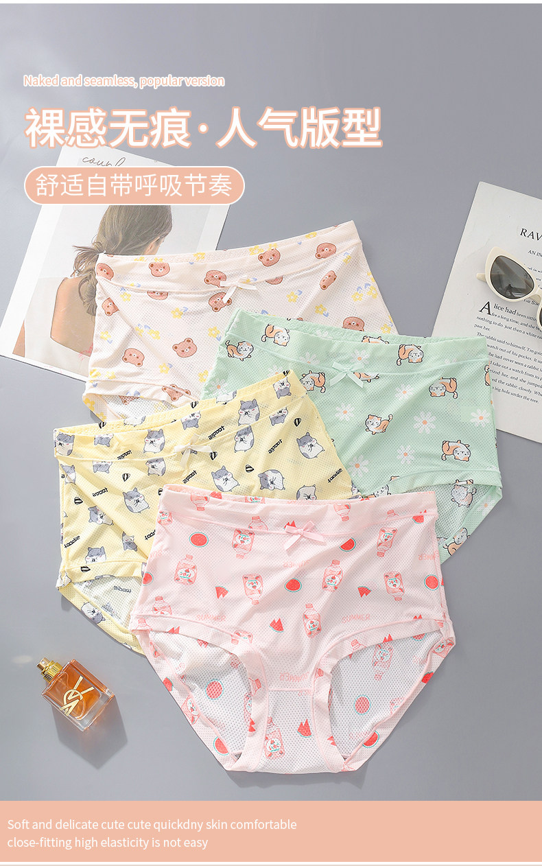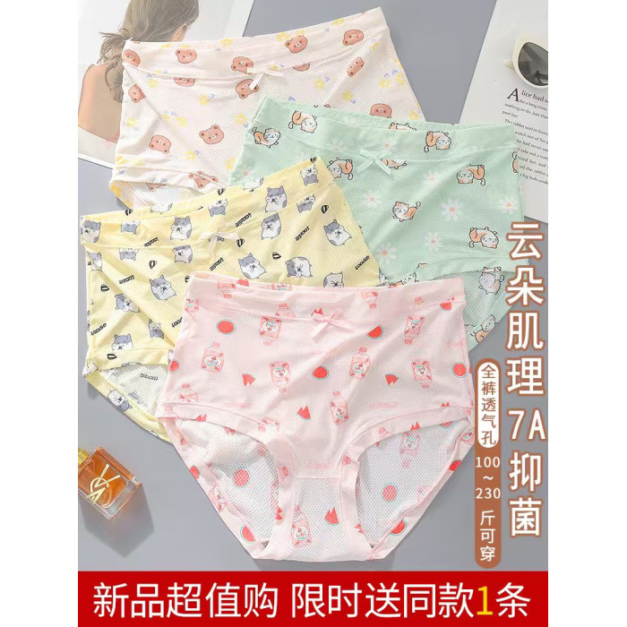 高腰冰絲內褲女加大加肥200斤7A抗菌襠女士速乾印花清新三角褲薄